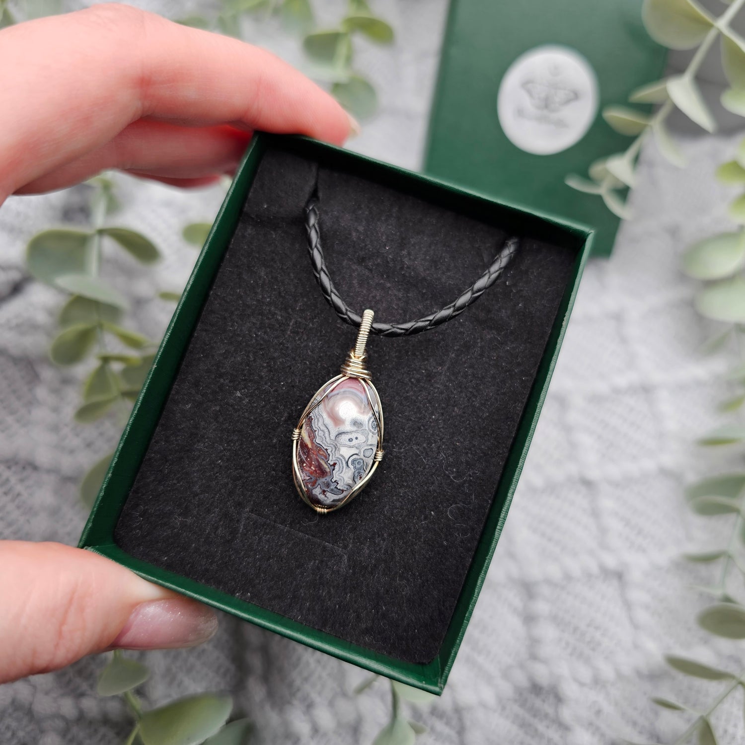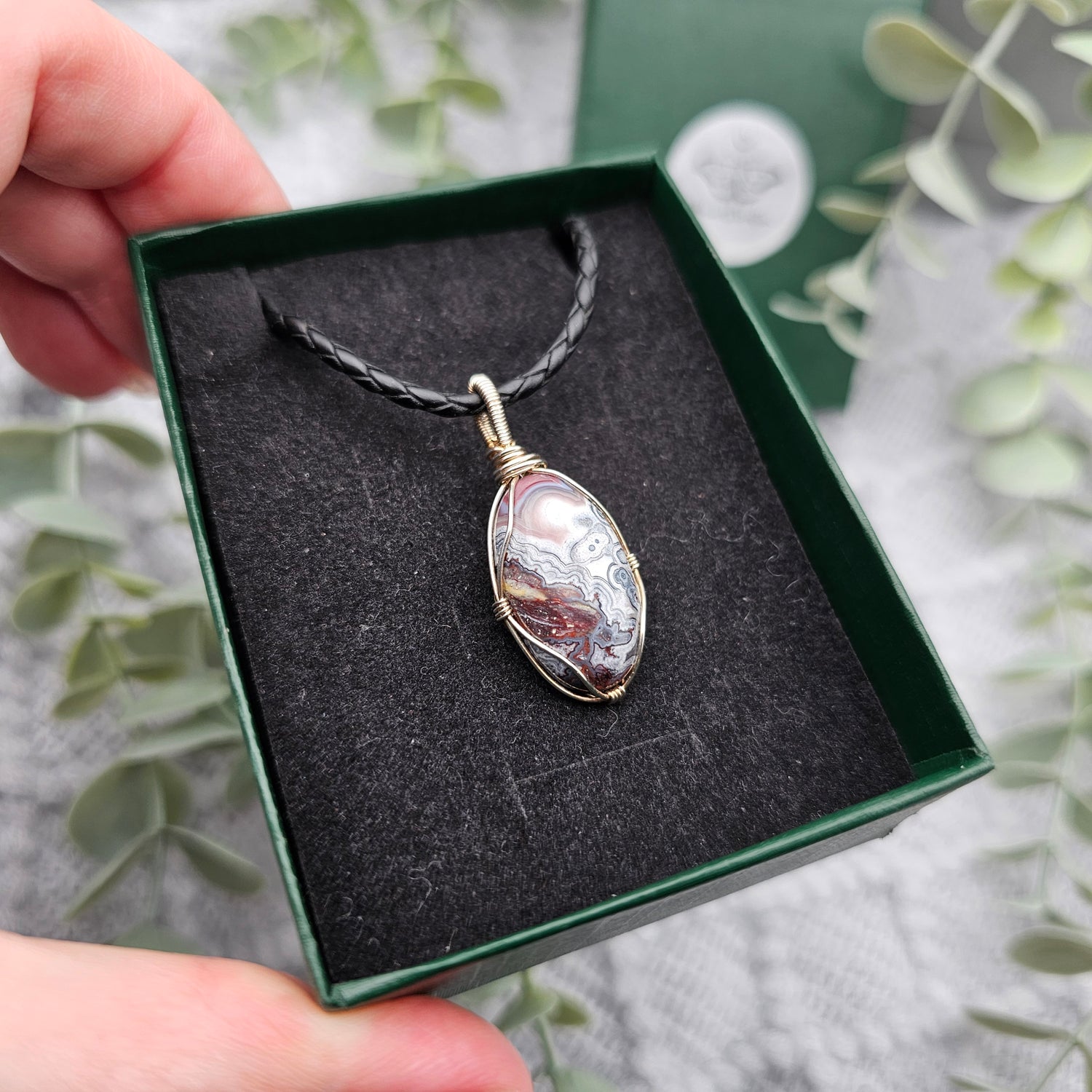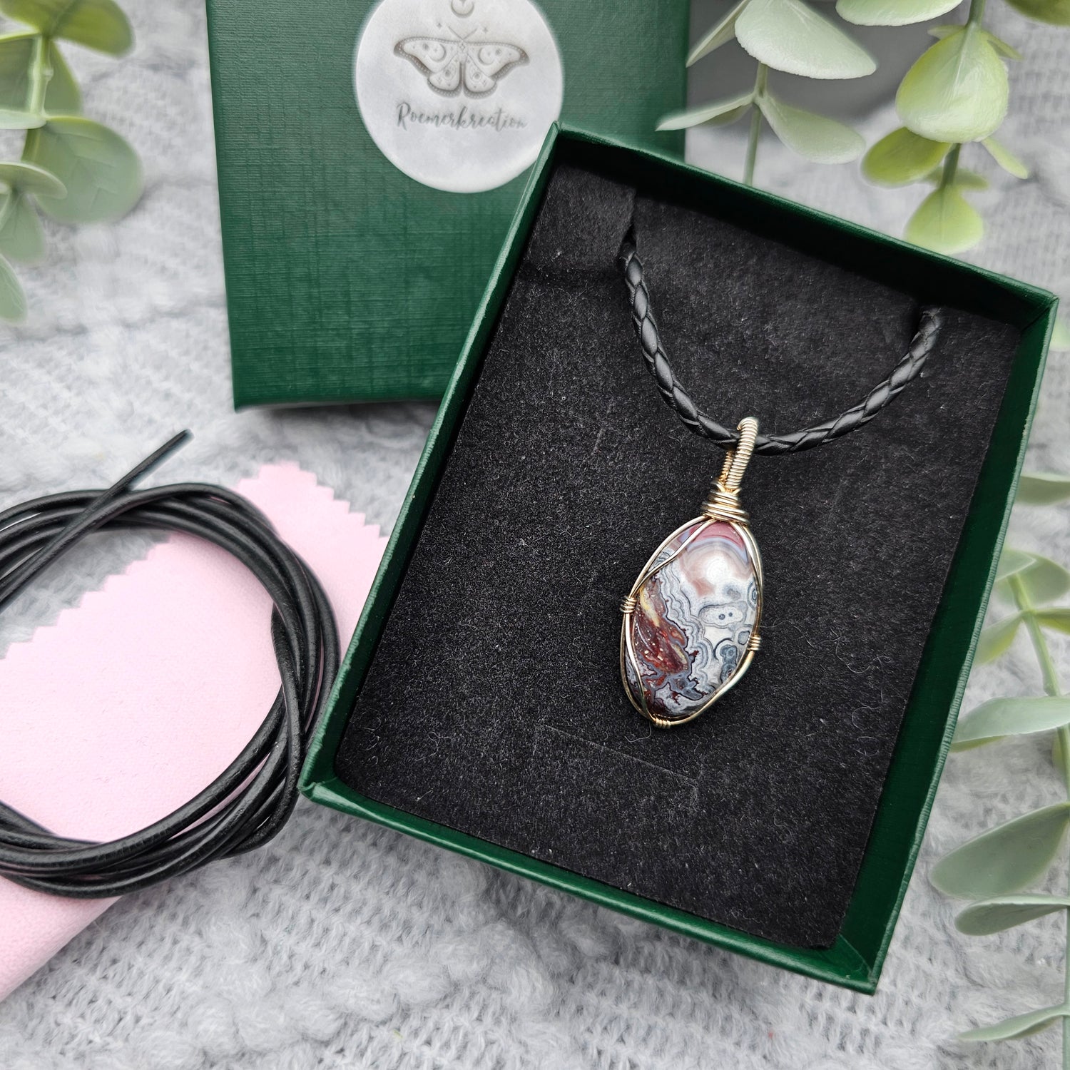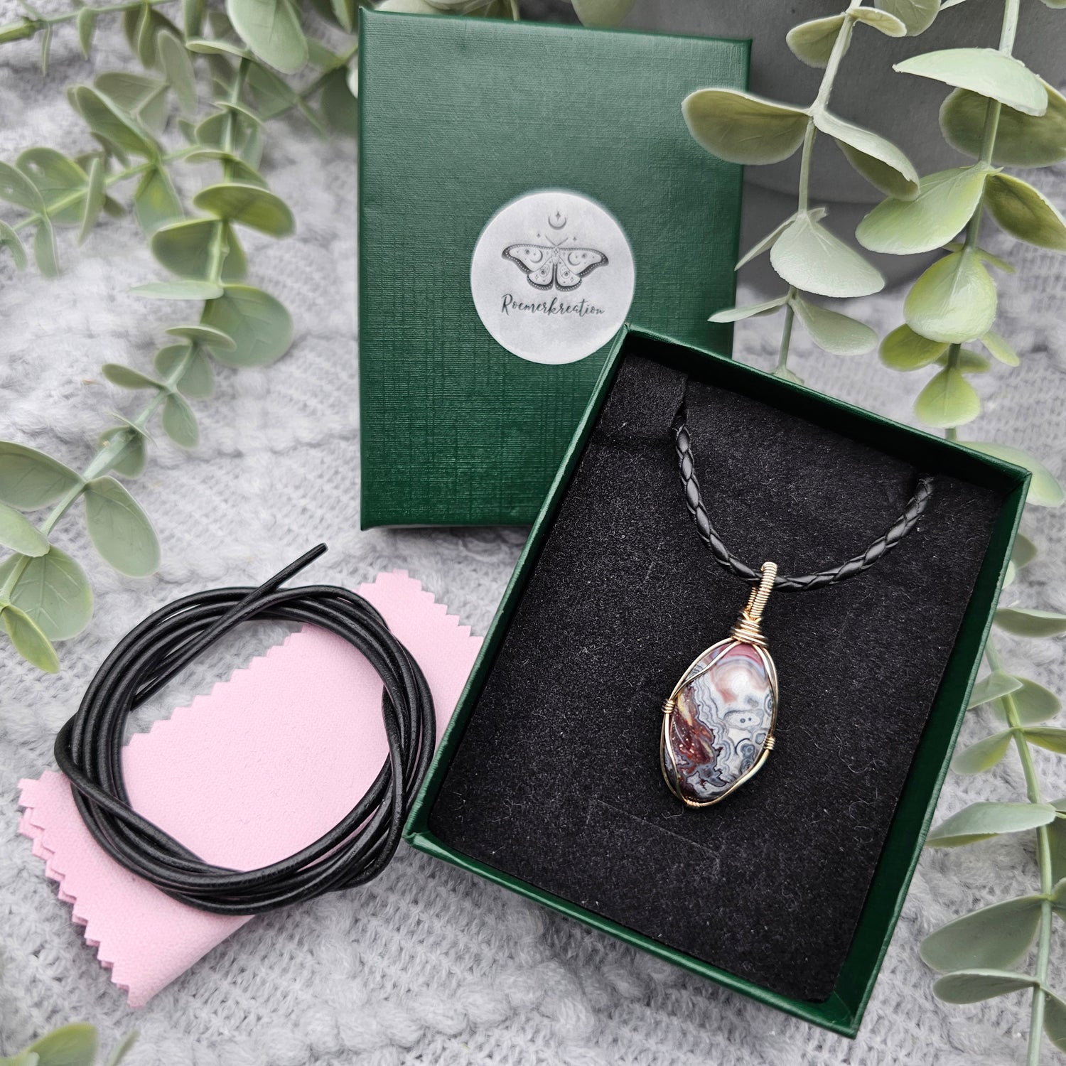 Im Lieferumfang ist ein 1m langes Lederband , ein Schmuckpflegetuch und eine Geschenkschachtel enthalten.
