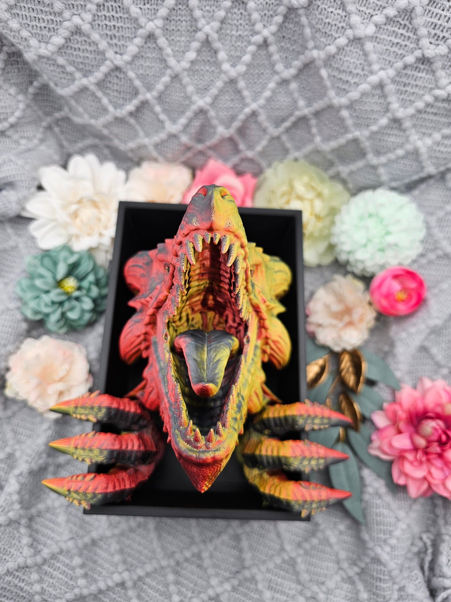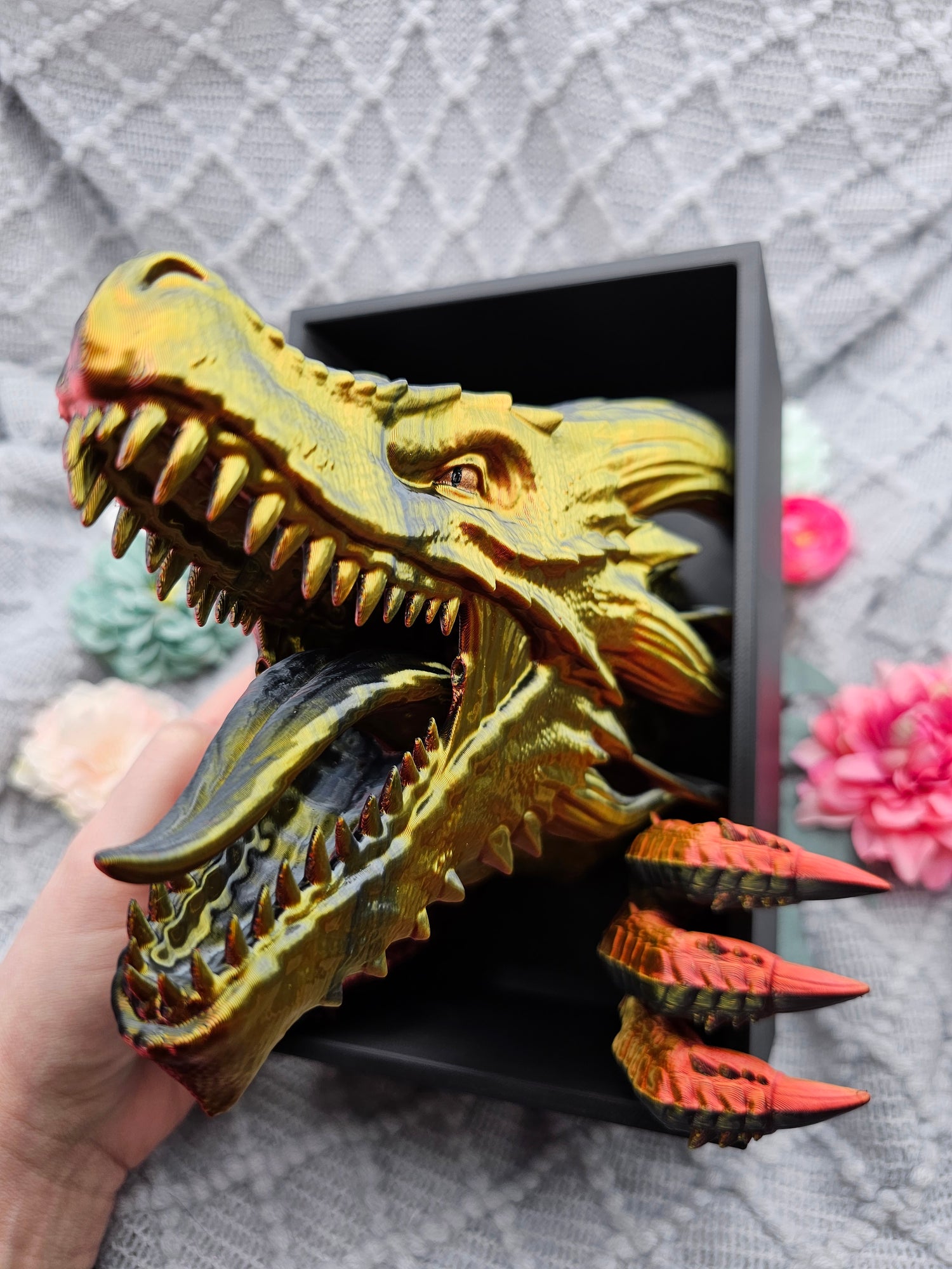 Book Nook Awakening Drache Rot/Schwarz/Gold glänzend | 3D Druck | Buchstütze | Dekoration Bücherregal