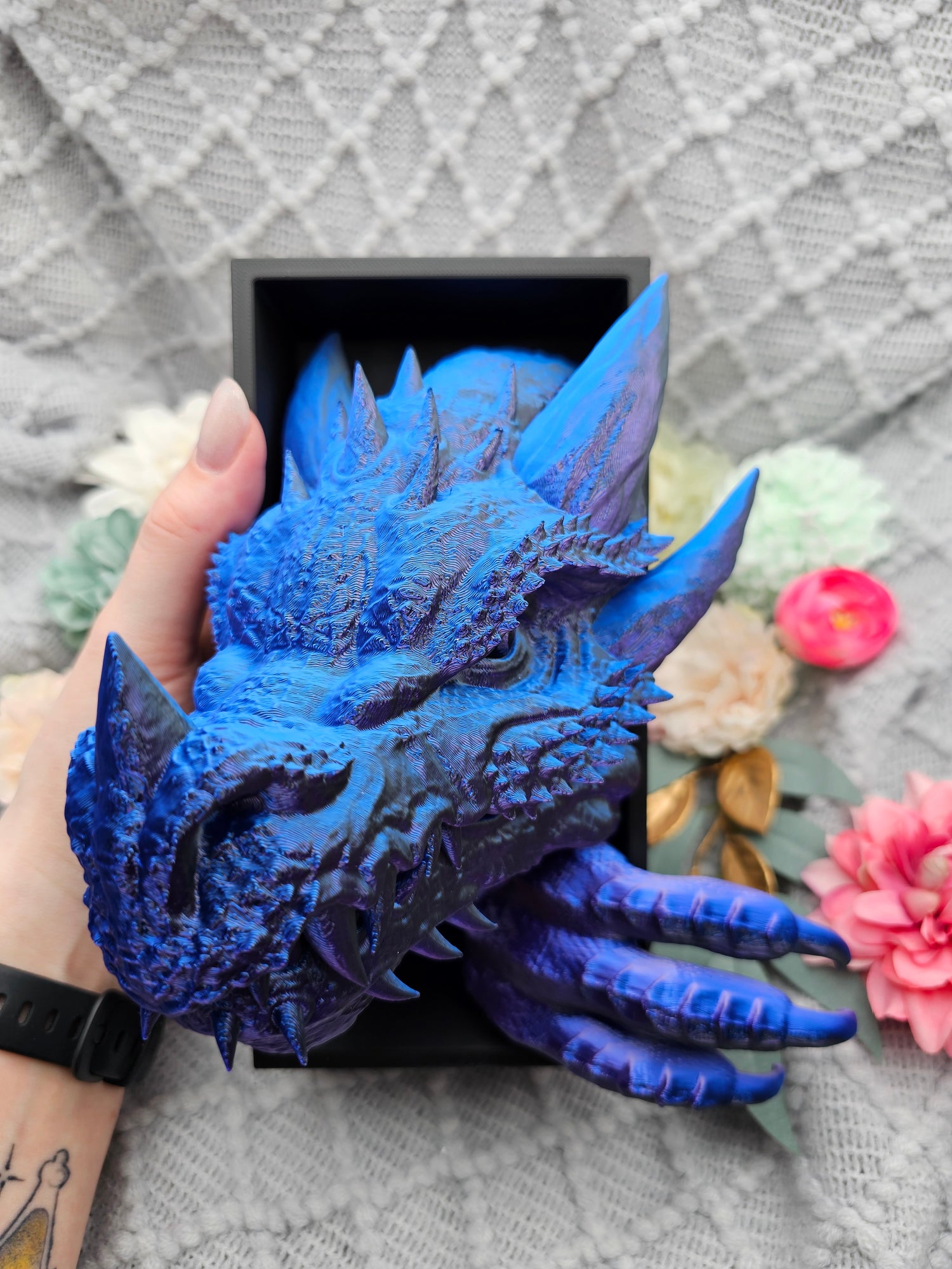 In dem Modell des Drachenkopfes stecken 12 Stunden, beim Drachenschwanz 8,5 Stunden reine Druckzeit zzgl. Nachbearbeitung.