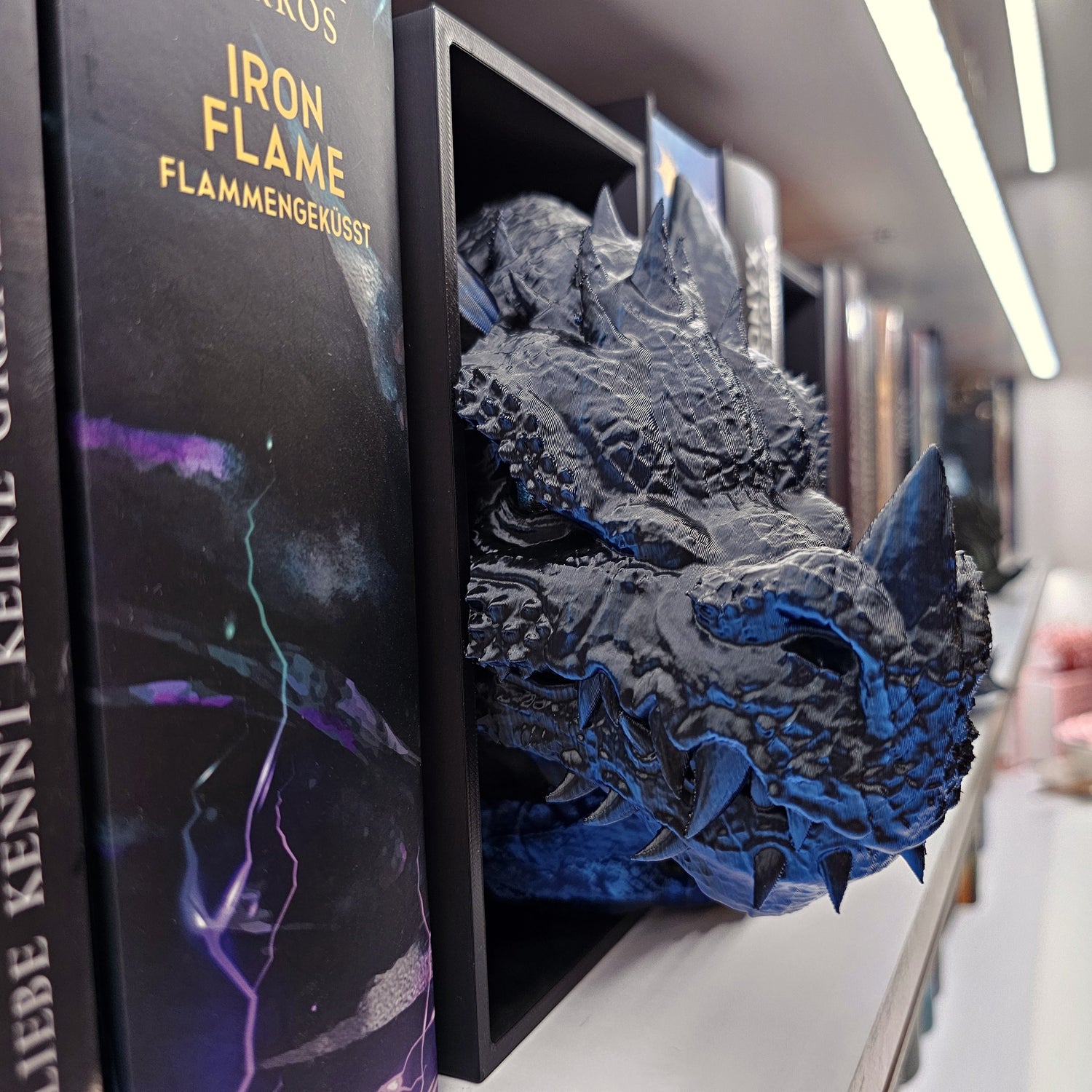 Book Nook Drache Blau/Schwarz glänzend Set/Einzeln | 3D Druck | Buchstütze | Dekoration Bücherregal