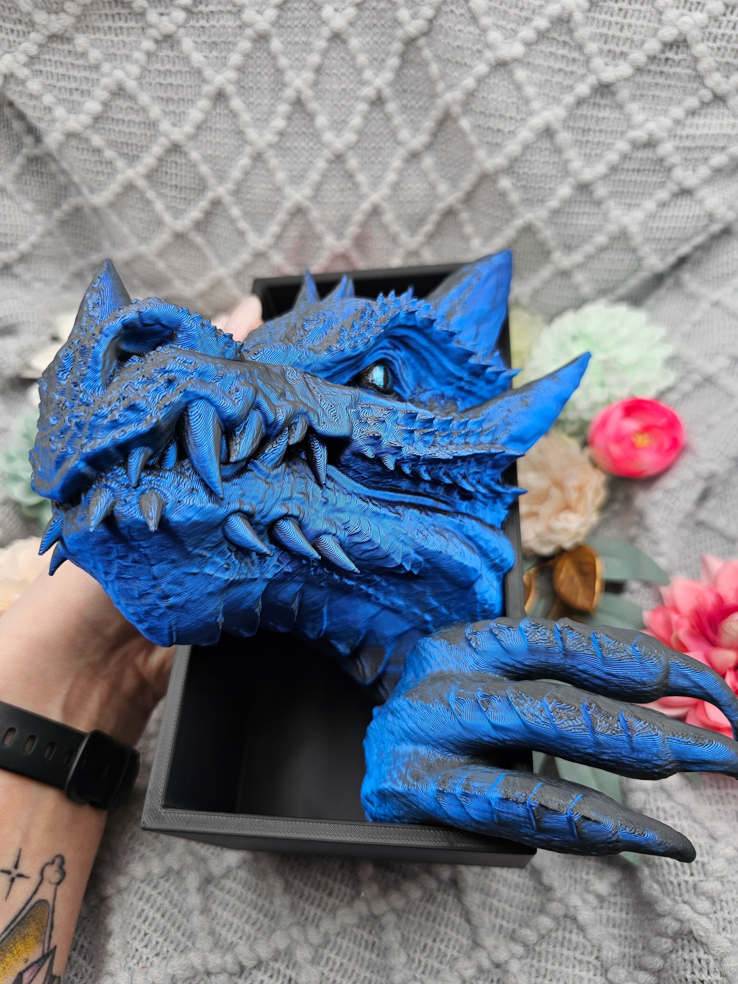 In dem Modell des Drachenkopfes stecken 12 Stunden, beim Drachenschwanz 8,5 Stunden reine Druckzeit zzgl. Nachbearbeitung.