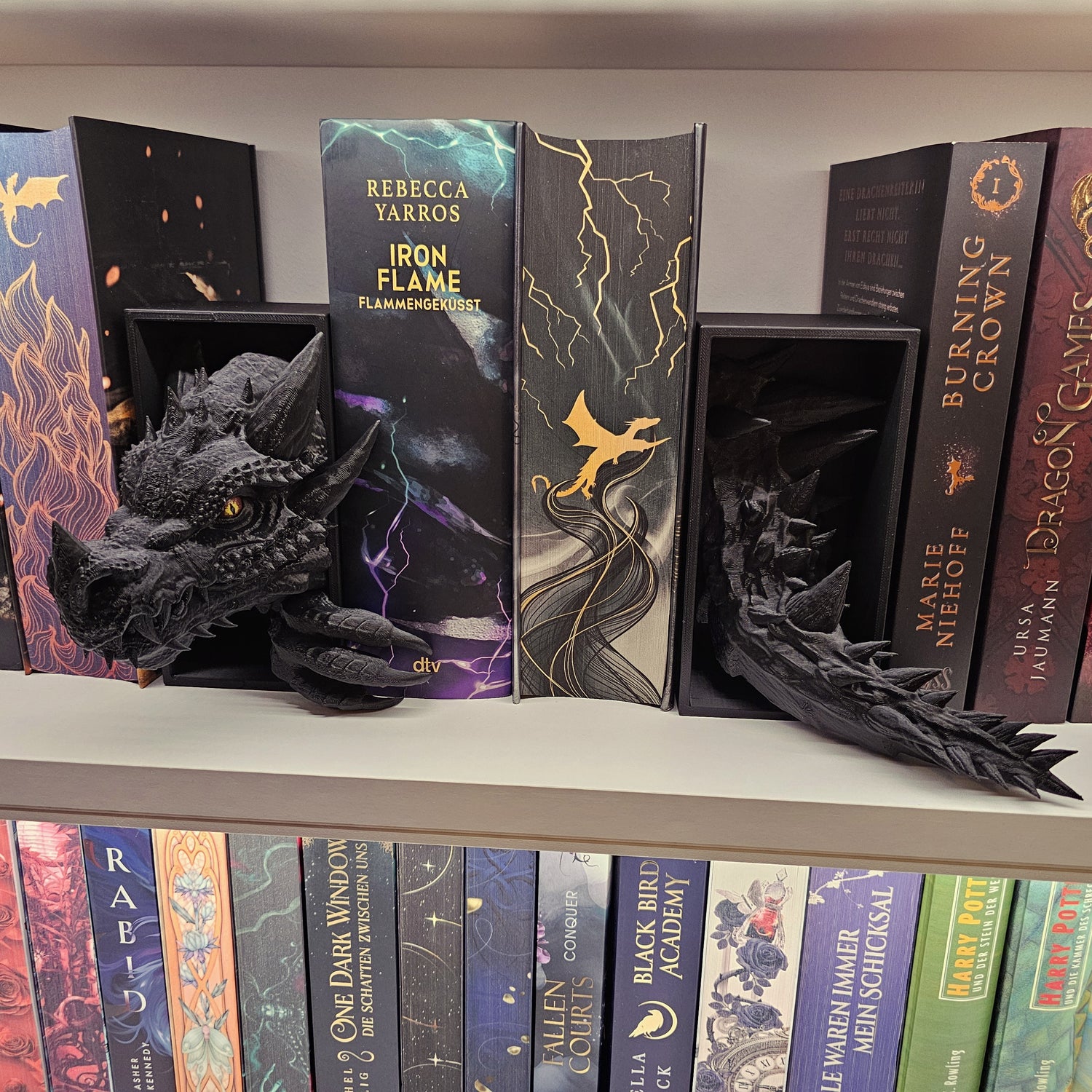 Book Nook Set Drache Schwarz Klein | 3D Druck | Buchstütze | Dekoration Bücherregal