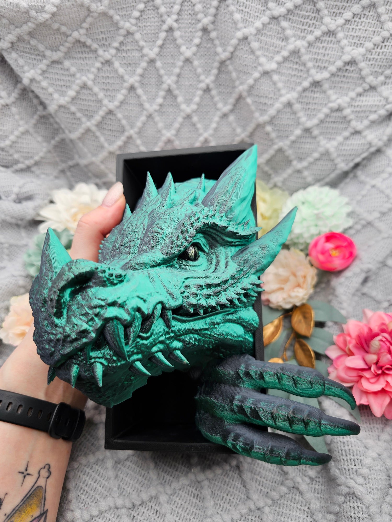 In dem Modell des Drachenkopfes stecken 12 Stunden, beim Drachenschwanz 8,5 Stunden reine Druckzeit zzgl. Nachbearbeitung.
