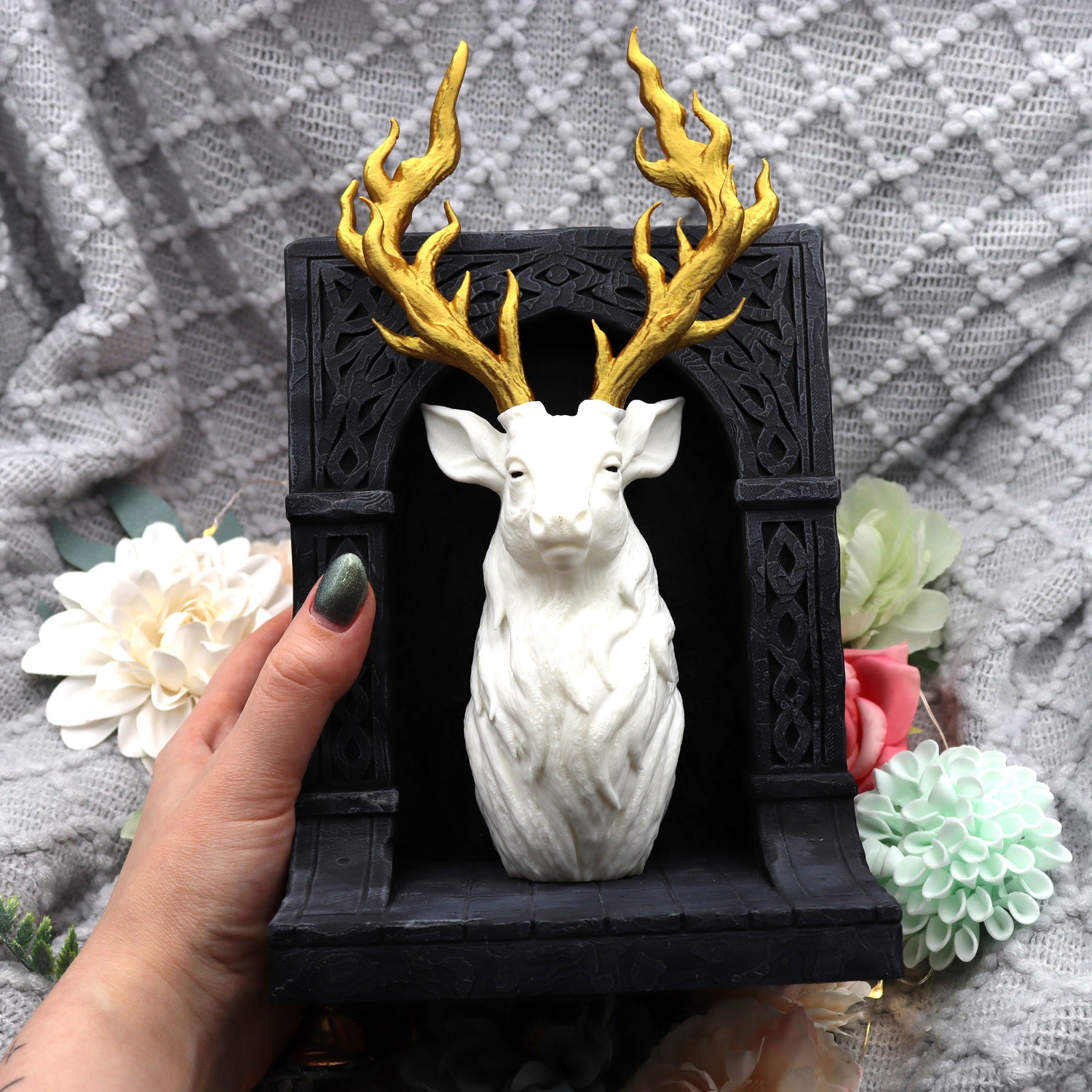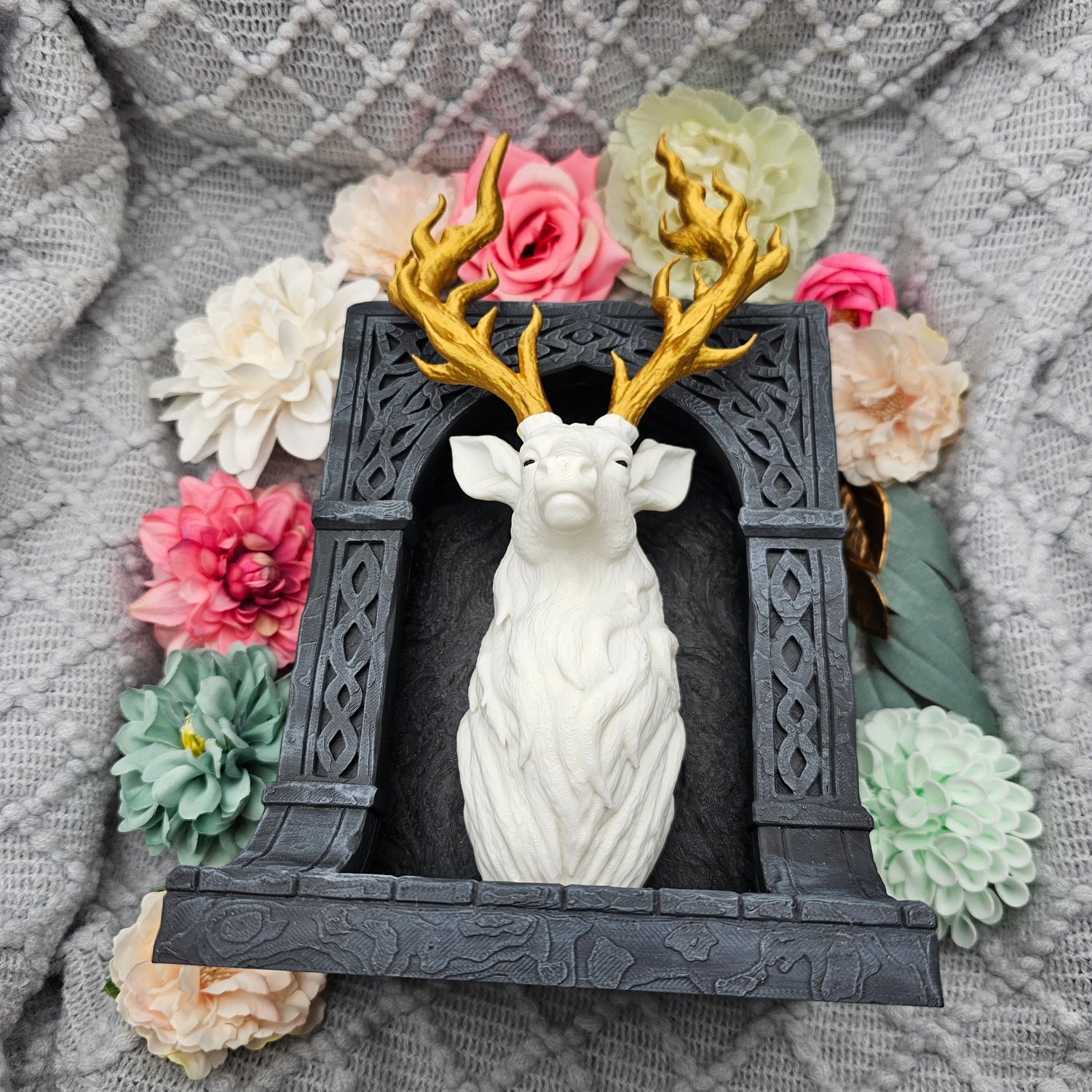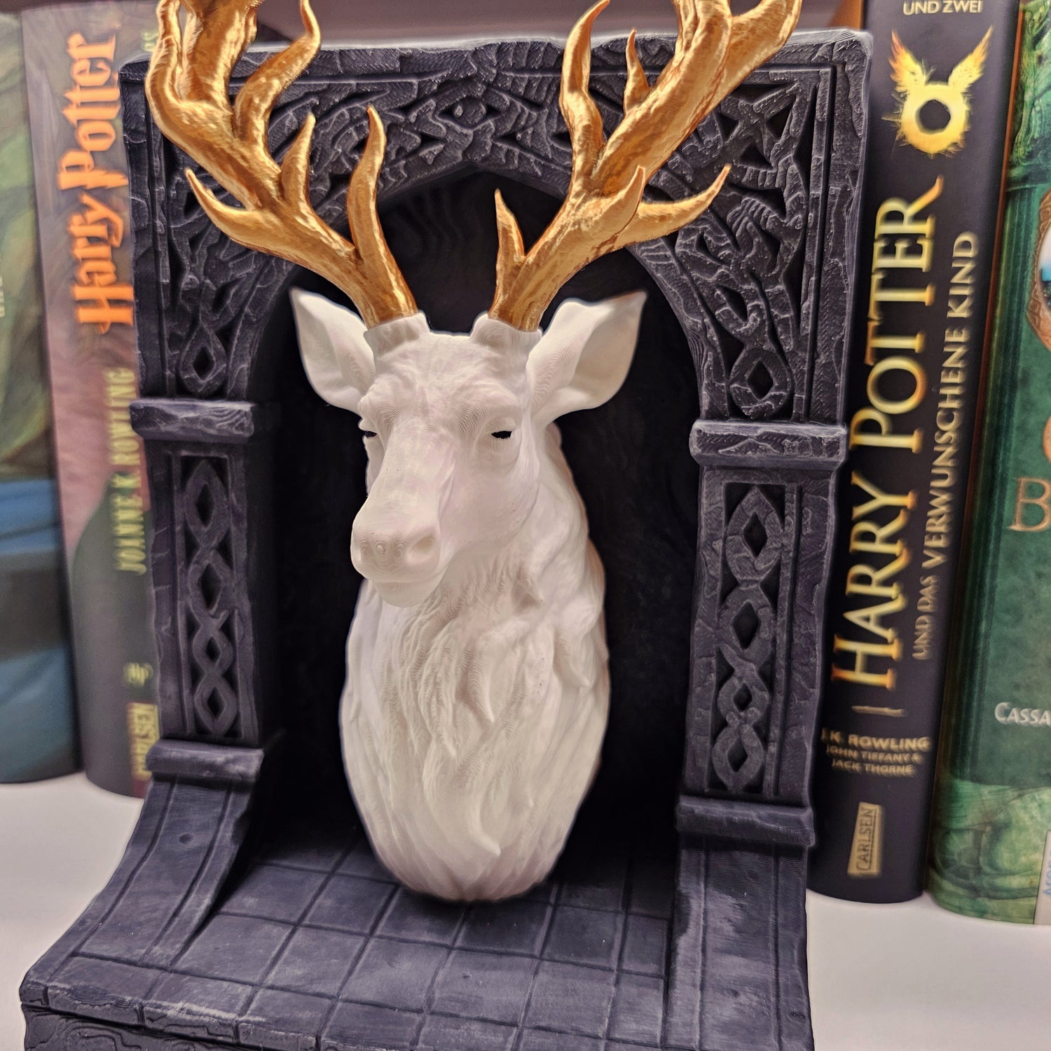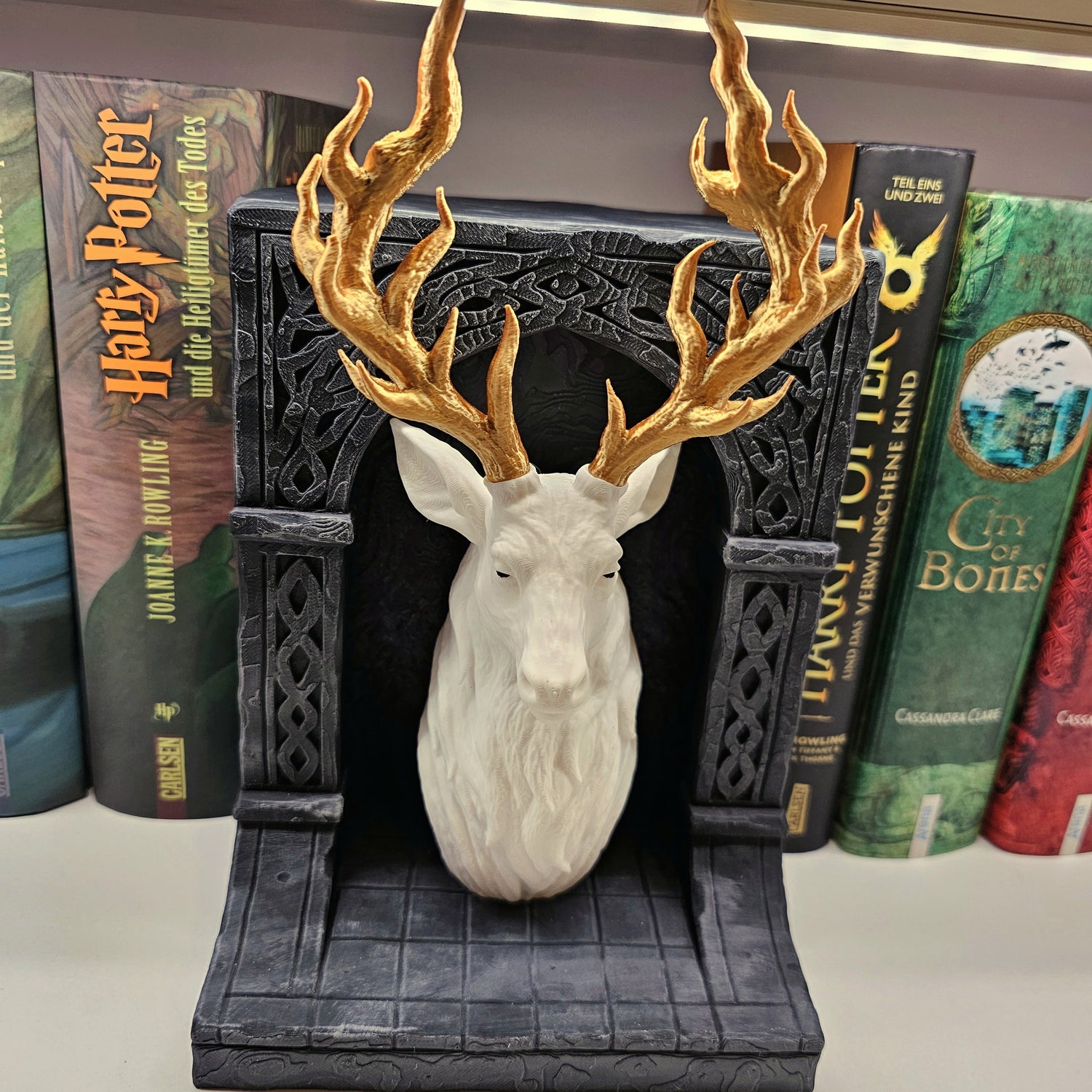 Book Nook Hirsch Schwarz/Weiß/Gold | 3D Druck | Buchstütze | Dekoration Bücherregal