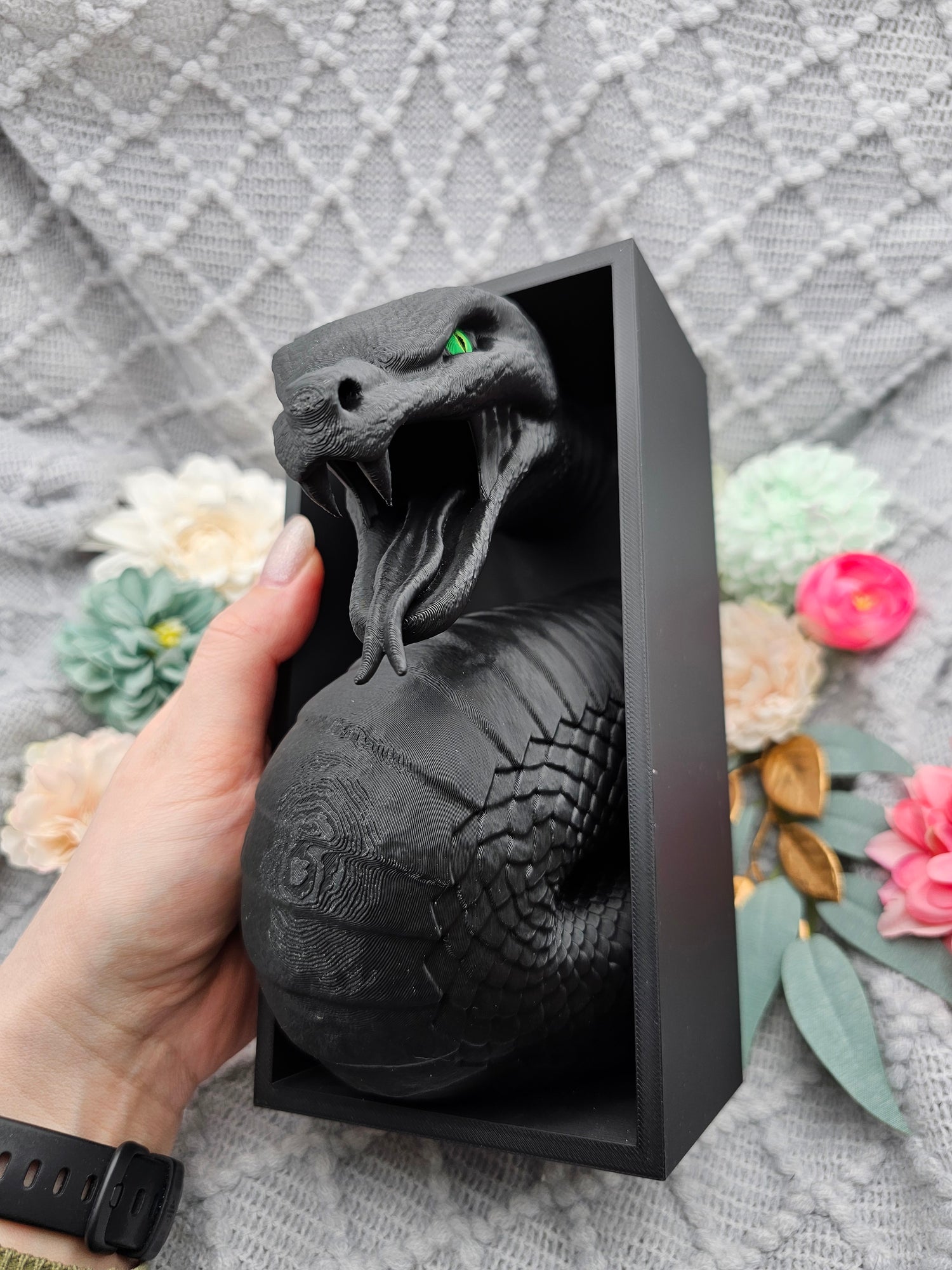 Book Nook Schlange Schwarz | 3D Druck | Buchstütze | Dekoration Bücherregal