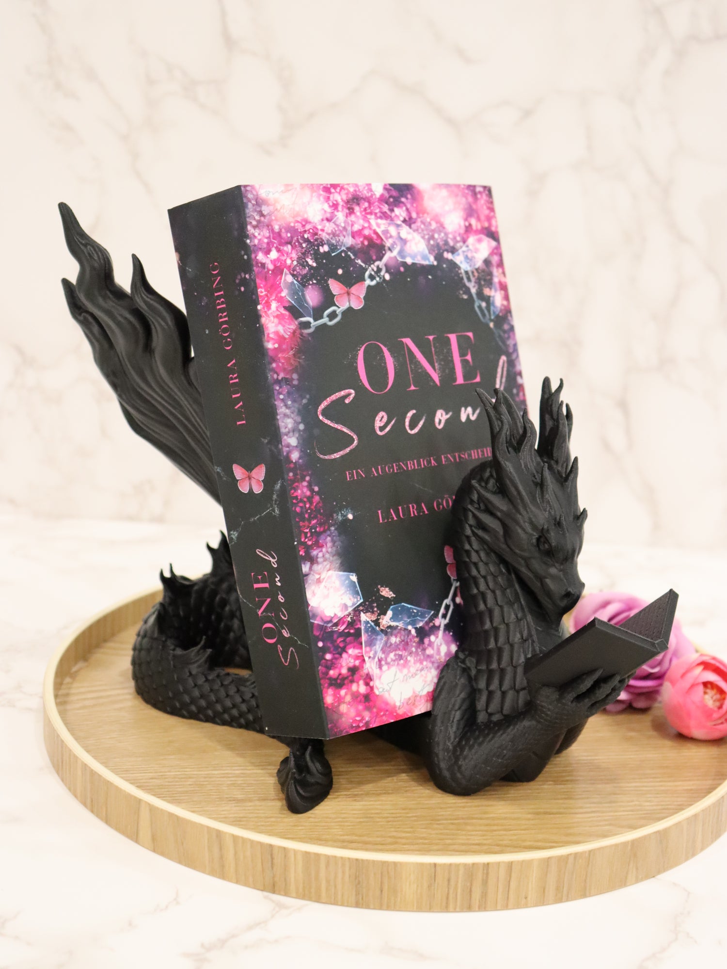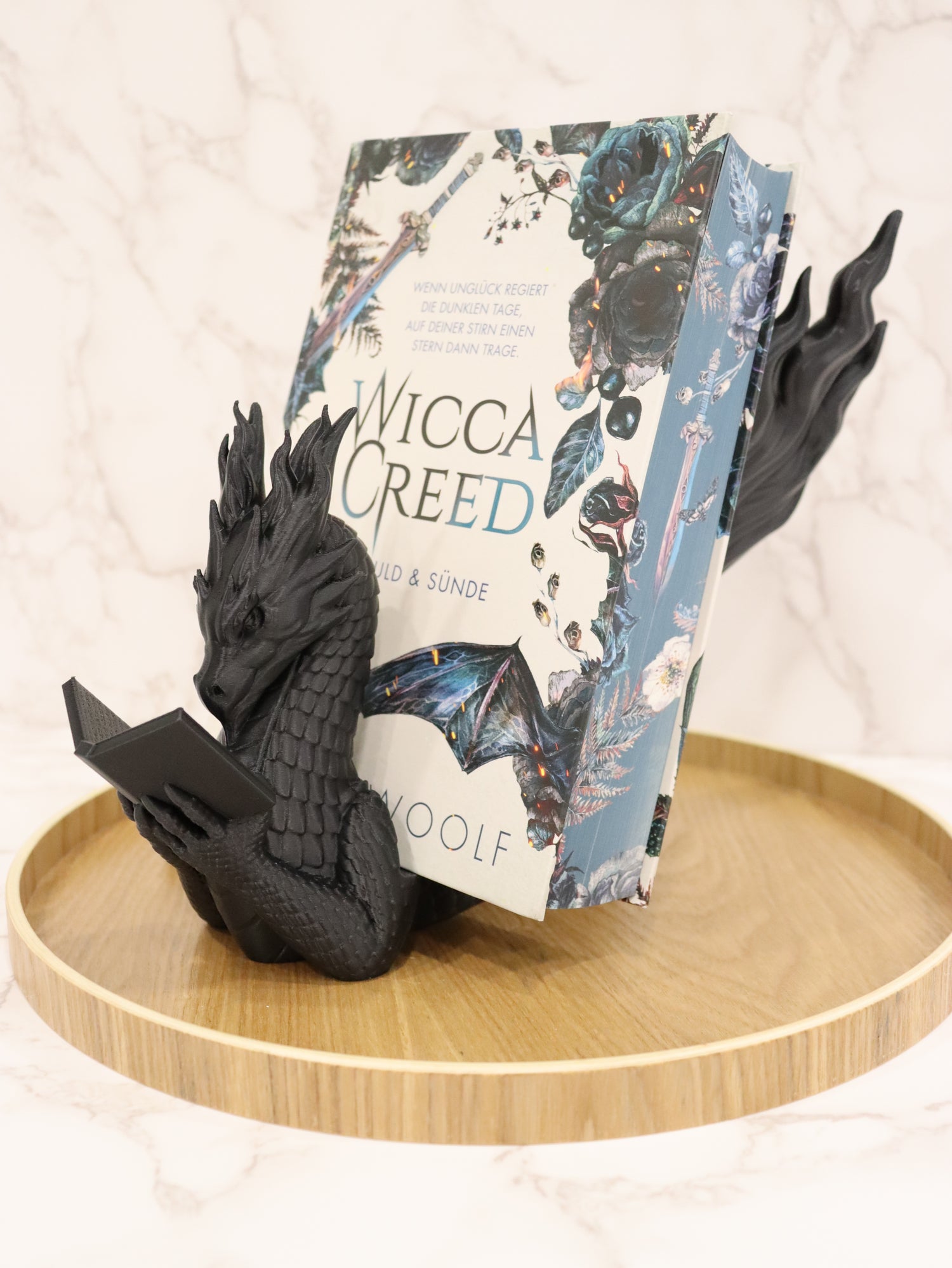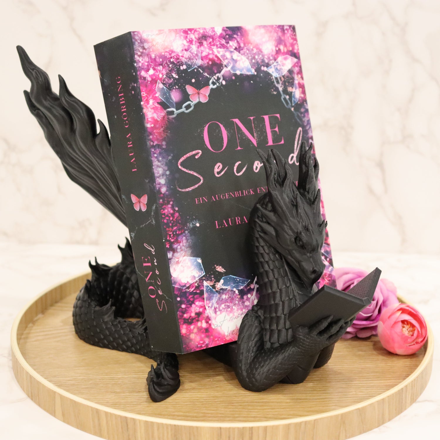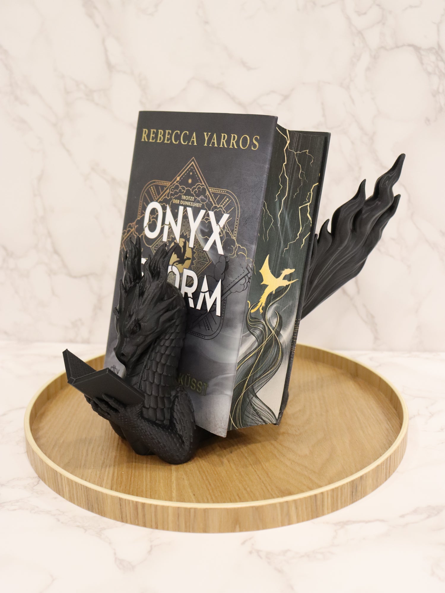Buchhalter lesender Flammendrache Schwarz | verschiedene Größen | 3D Druck | Aufsteller Bücher E-Reader Tablet