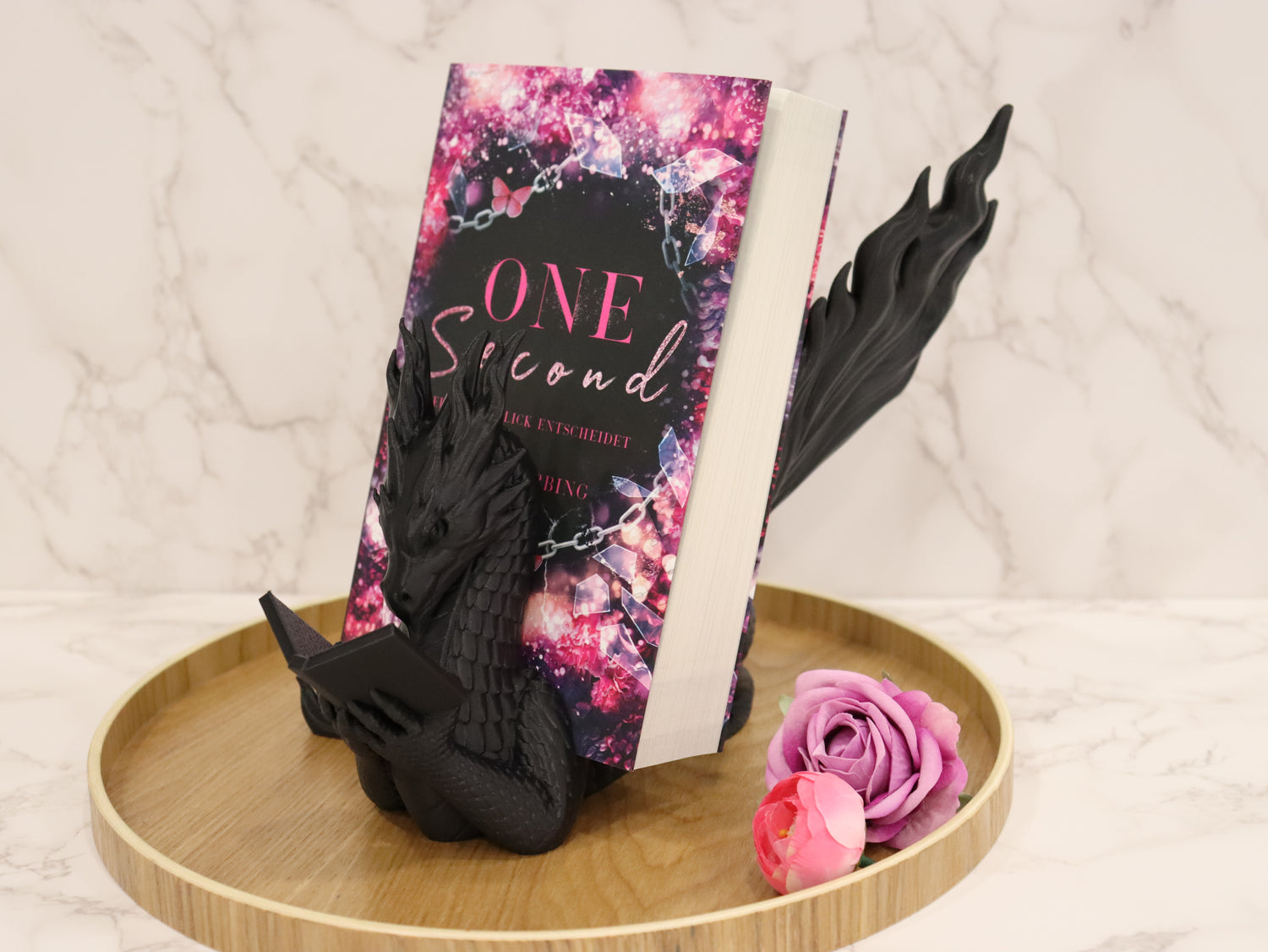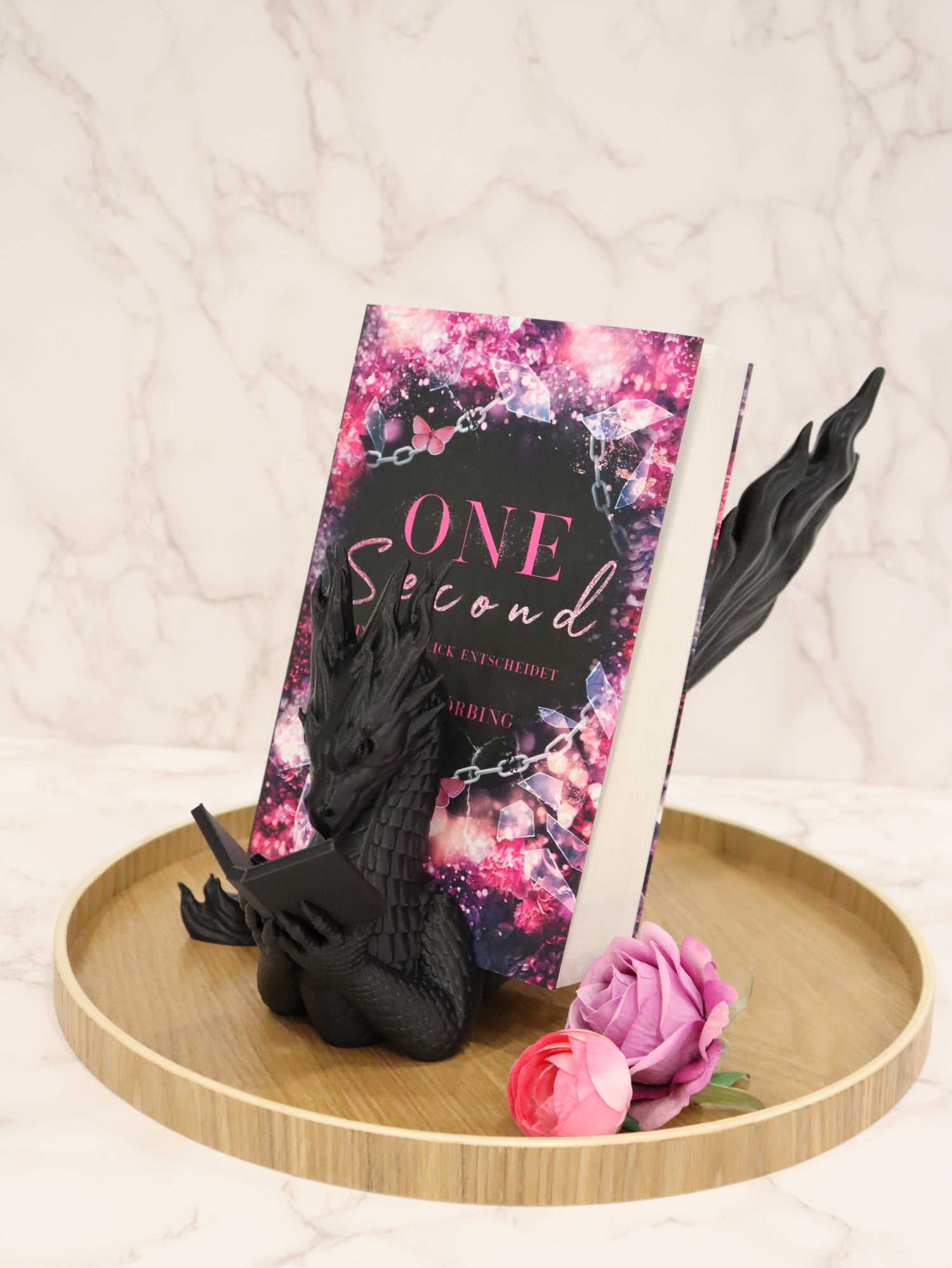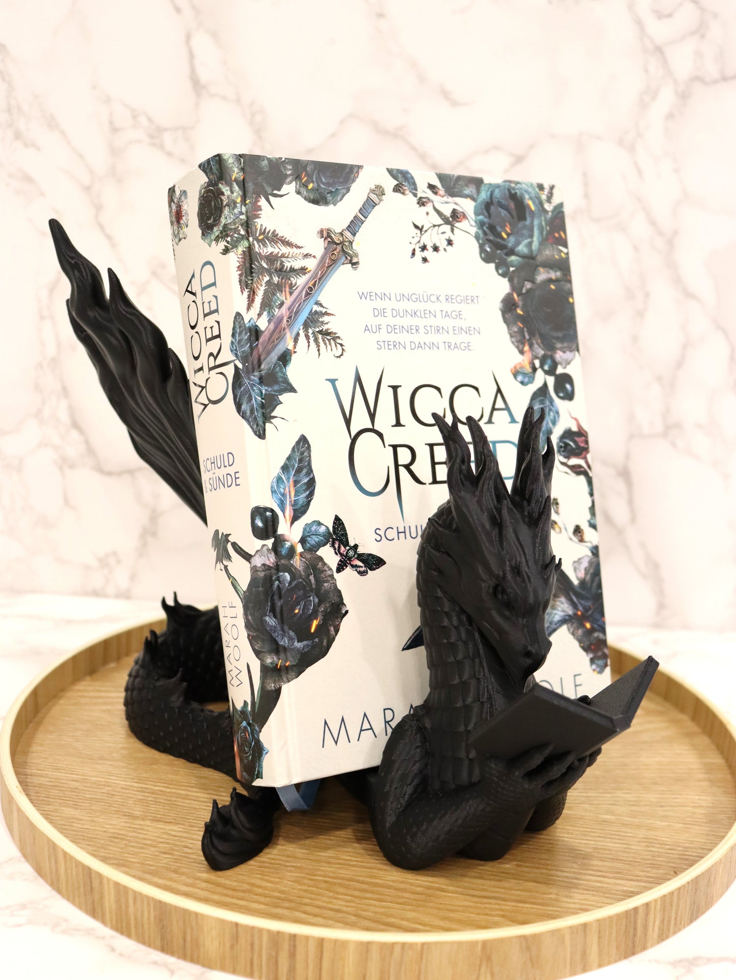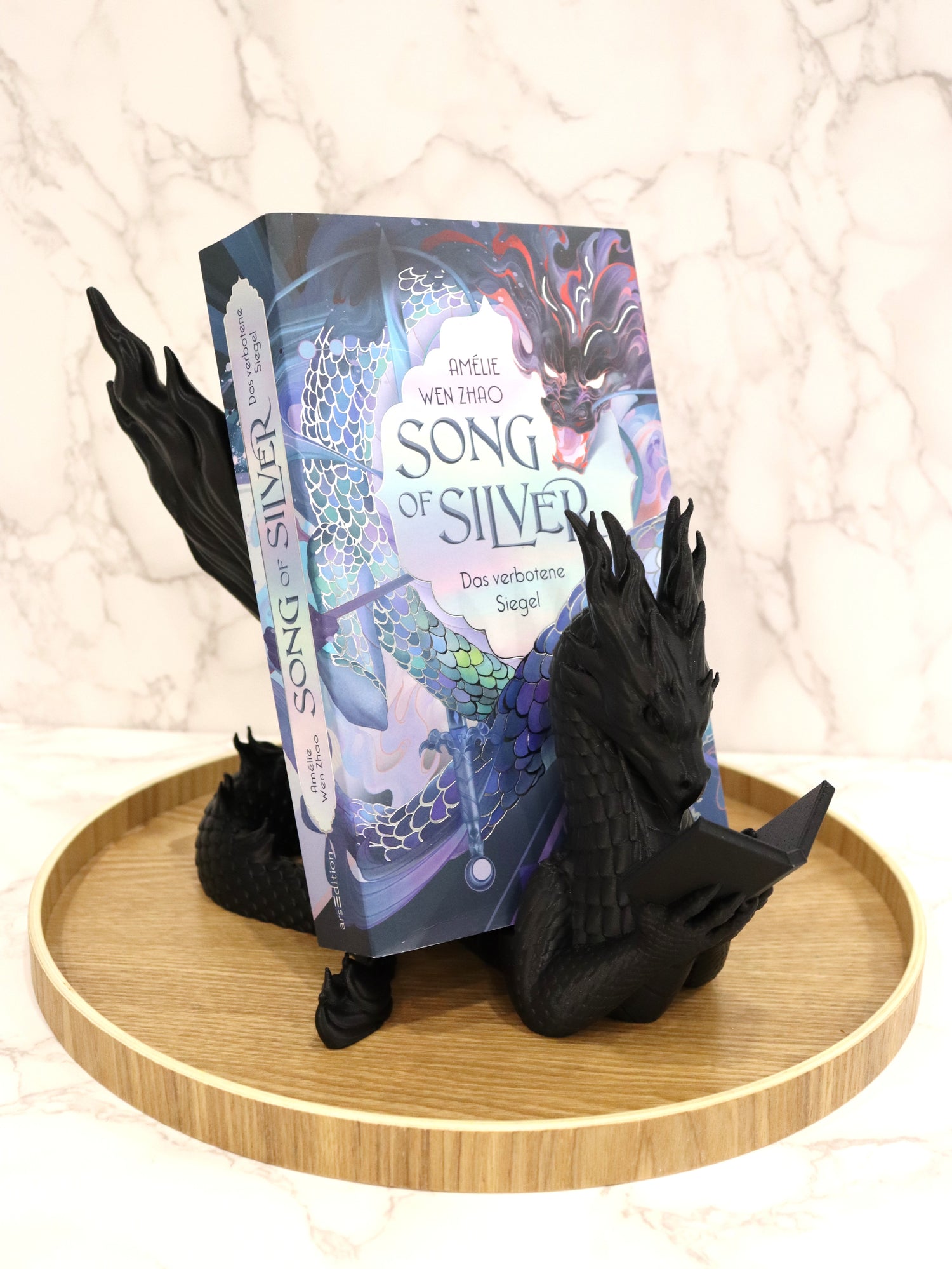 Buchhalter lesender Flammendrache Schwarz | verschiedene Größen | 3D Druck | Aufsteller Bücher E-Reader Tablet