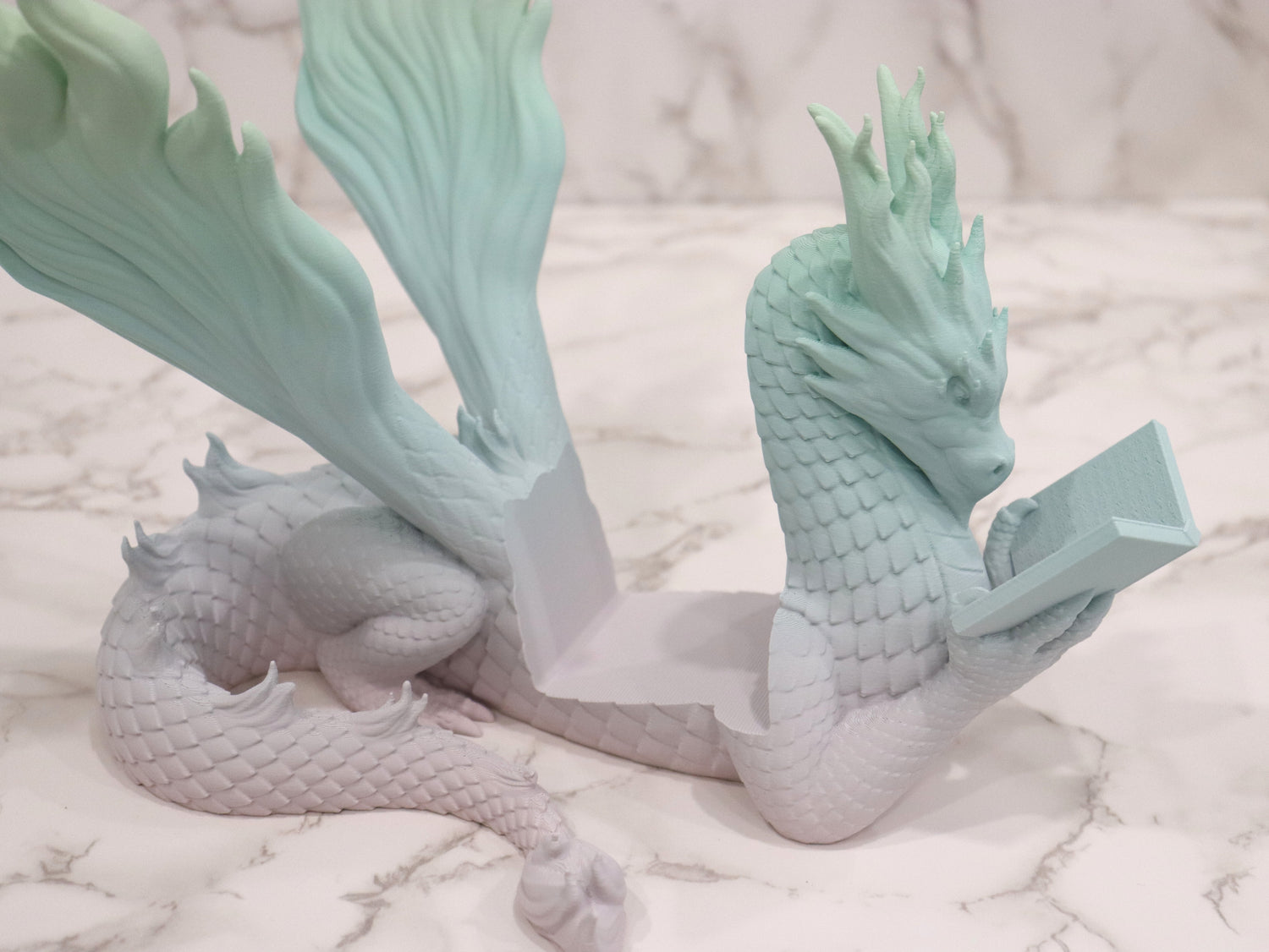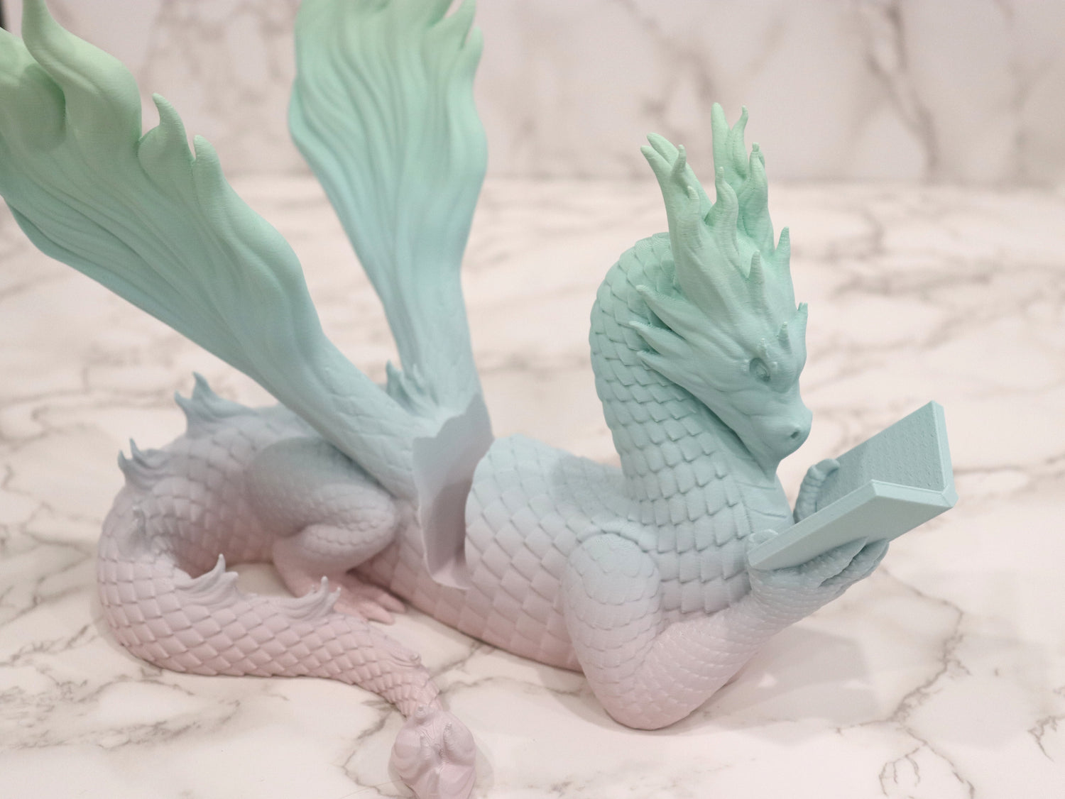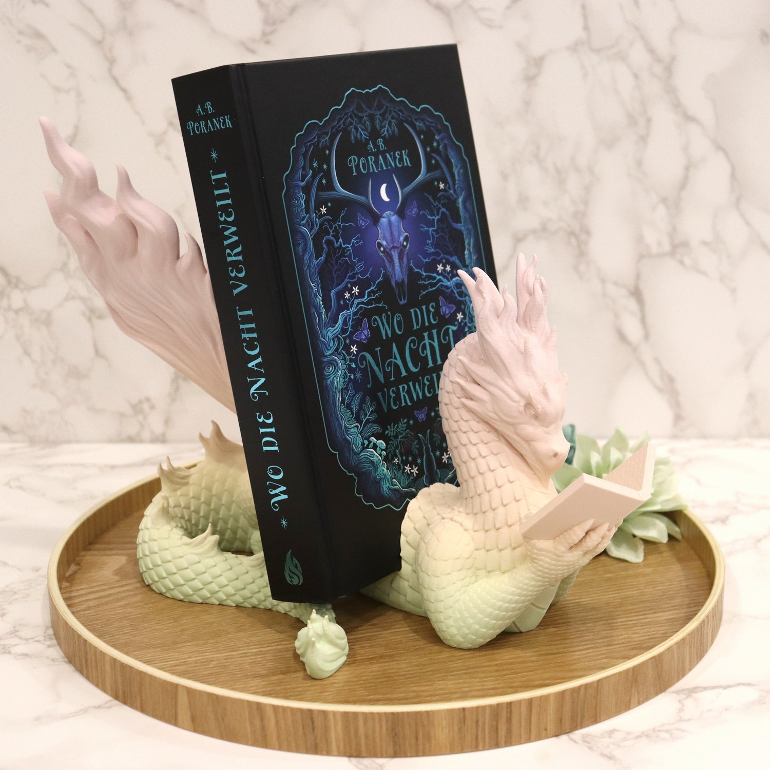 Buchhalter lesender Flammendrache Regenbogen | verschiedene Größen | 3D Druck | Aufsteller Bücher E-Reader Tablet