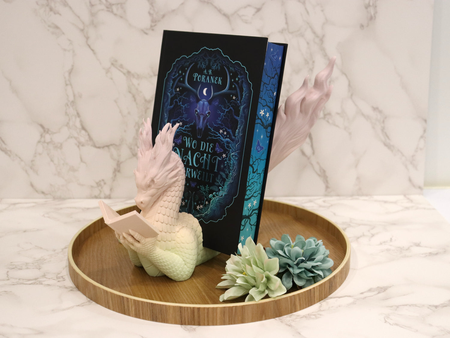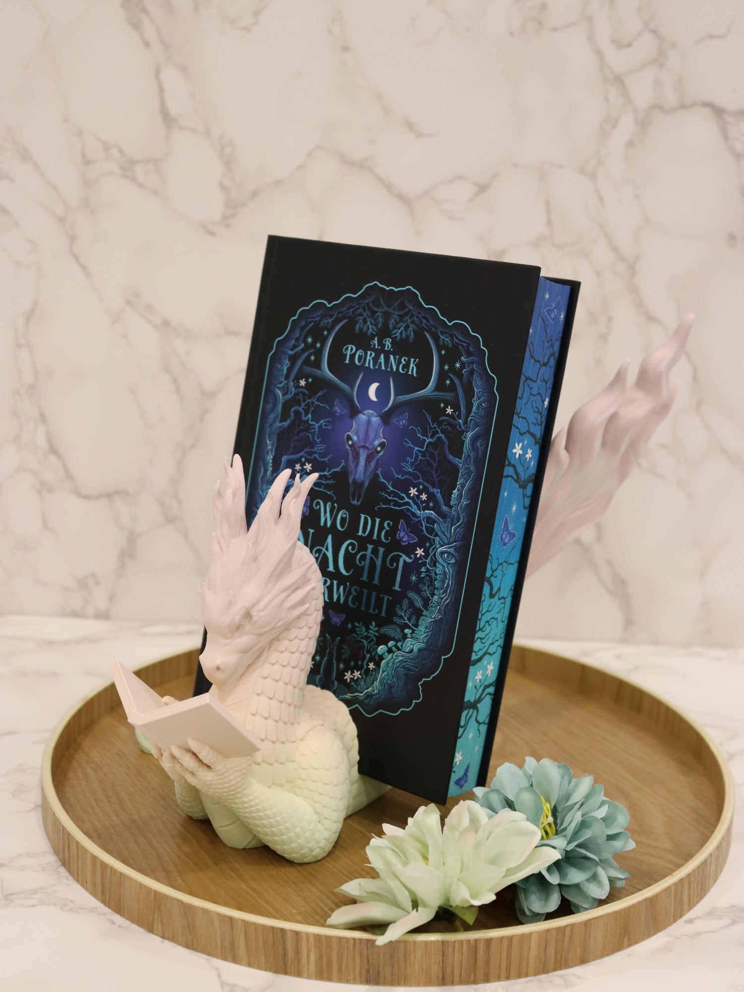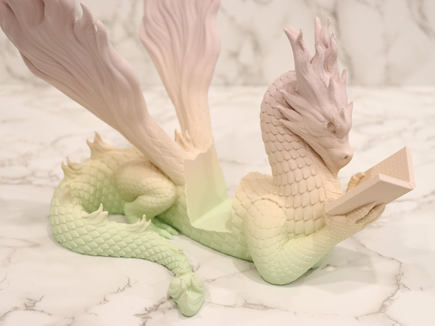 Buchhalter lesender Flammendrache Regenbogen | verschiedene Größen | 3D Druck | Aufsteller Bücher E-Reader Tablet