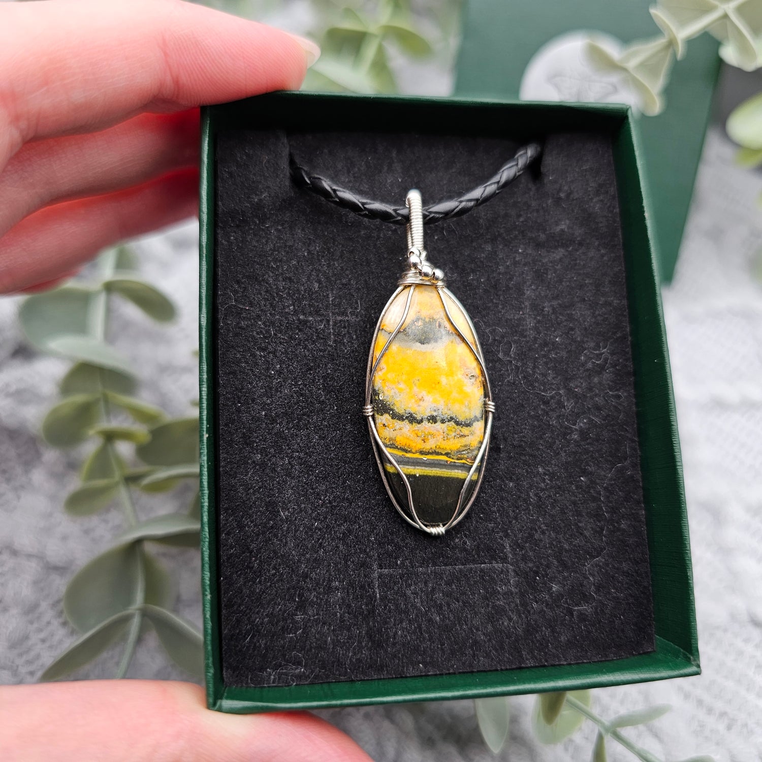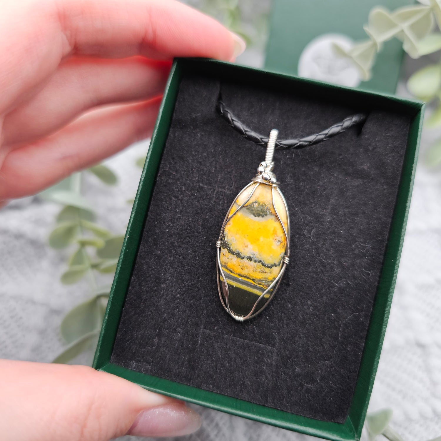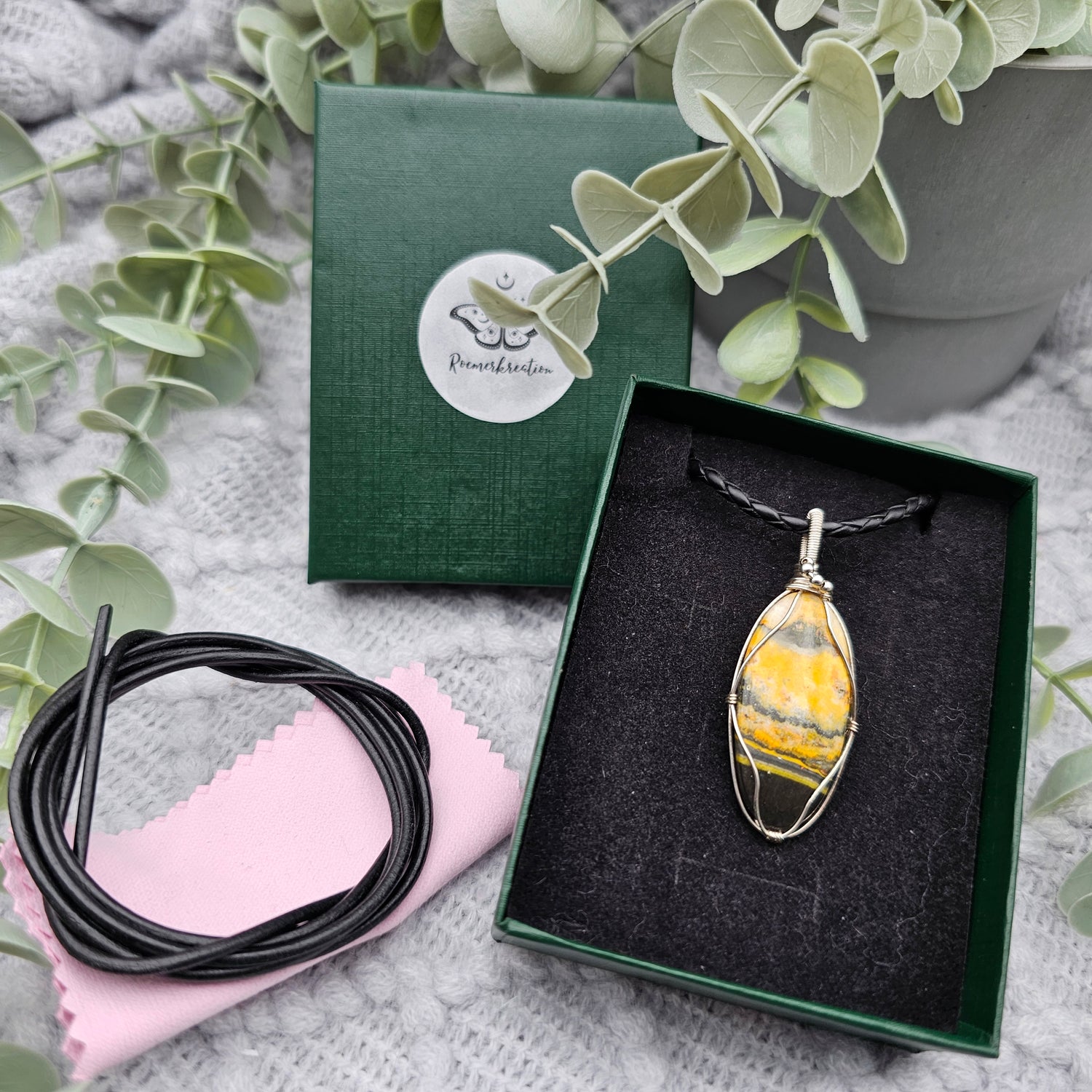Im Lieferumfang ist ein 1m langes Lederband , ein Schmuckpflegetuch und eine Geschenkschachtel enthalten.