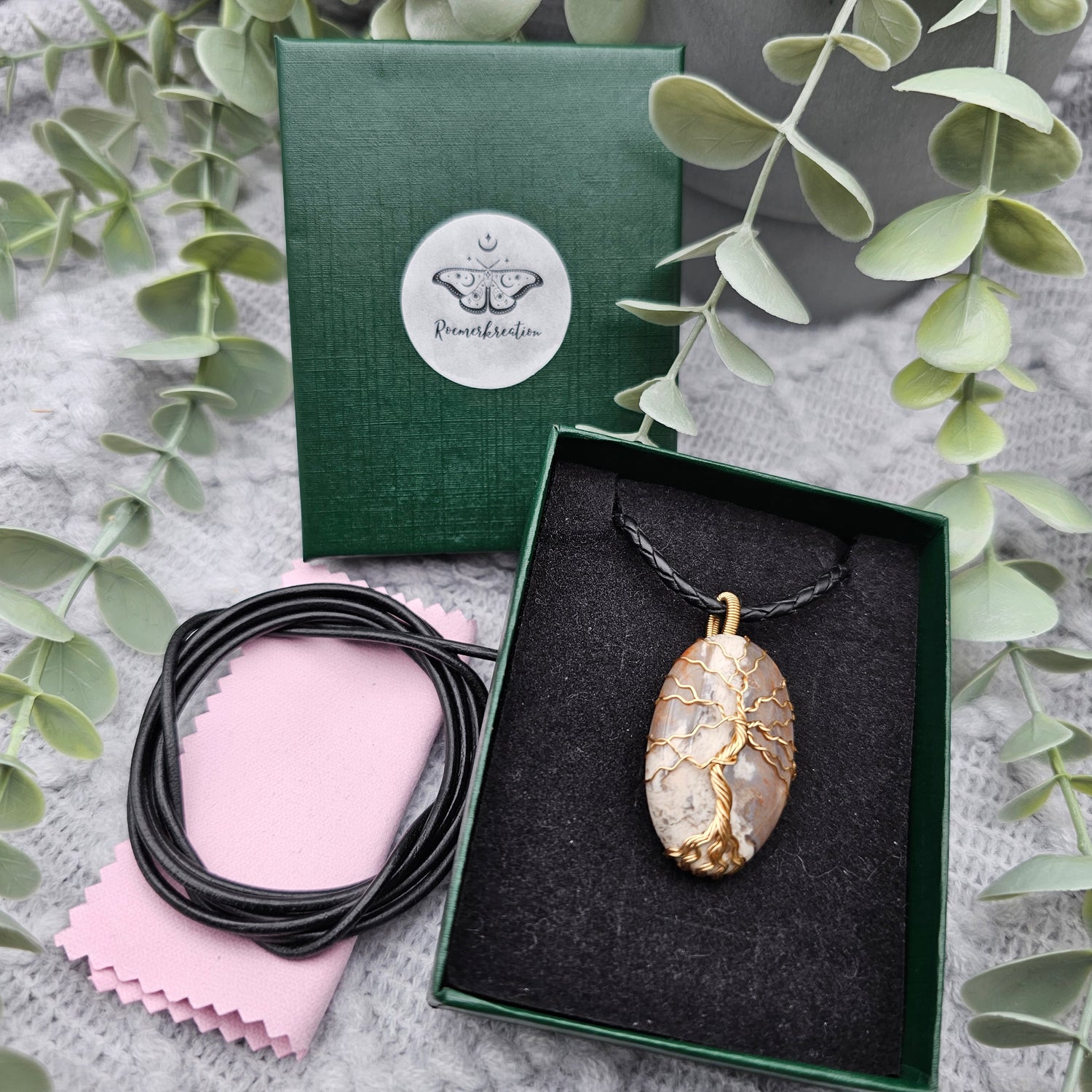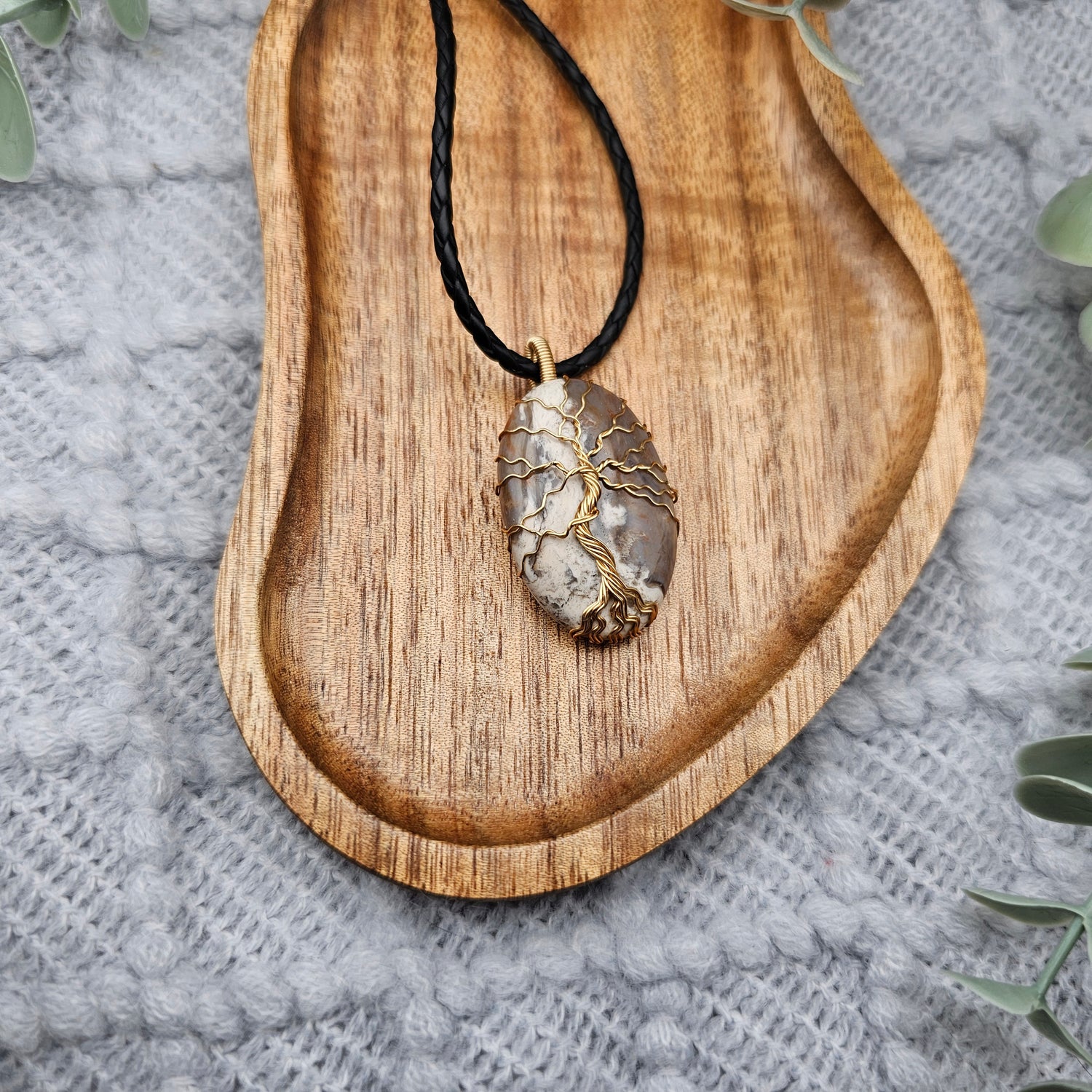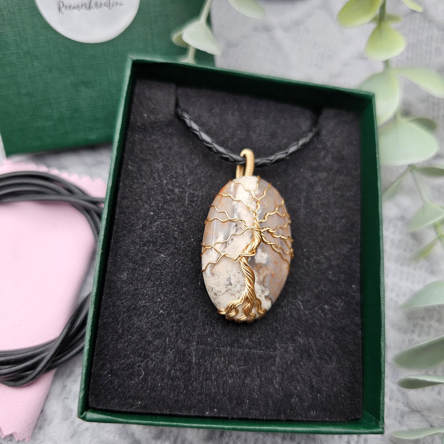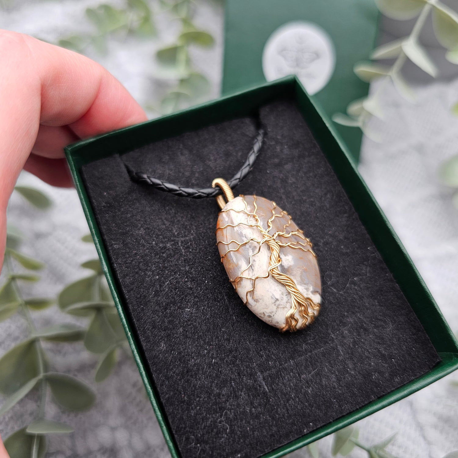 Jaspis Lebensbaum Anhänger | Schmuckdraht | Edelstein Halskette