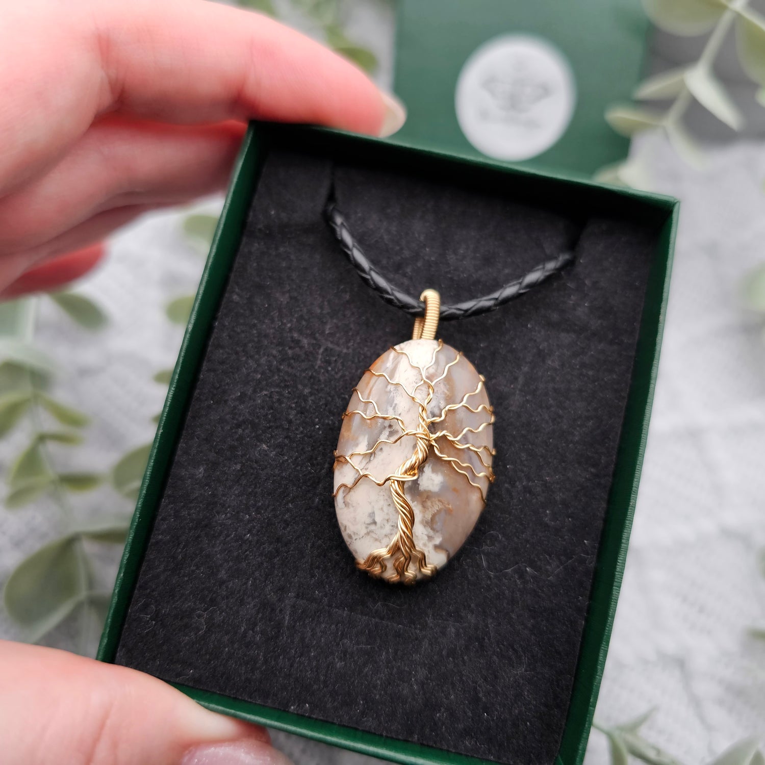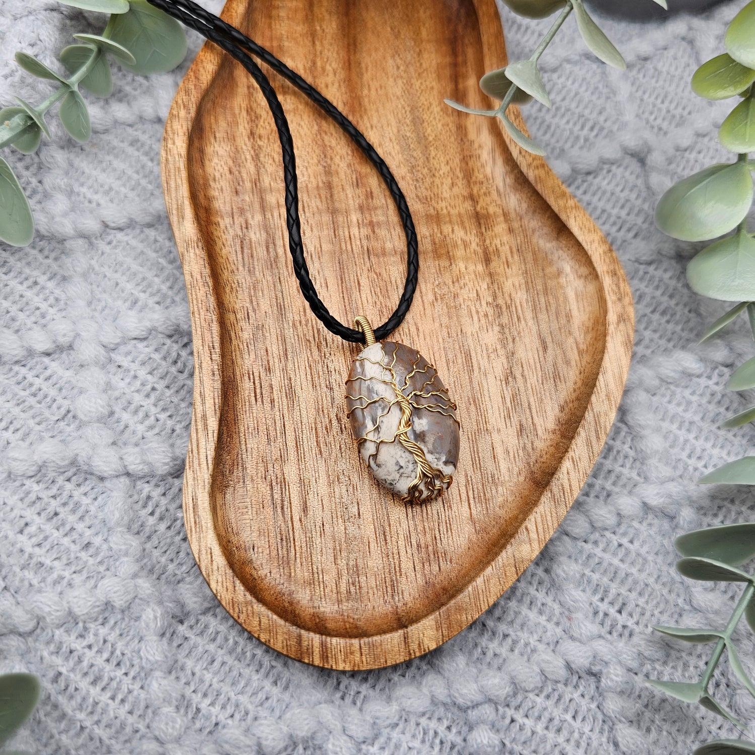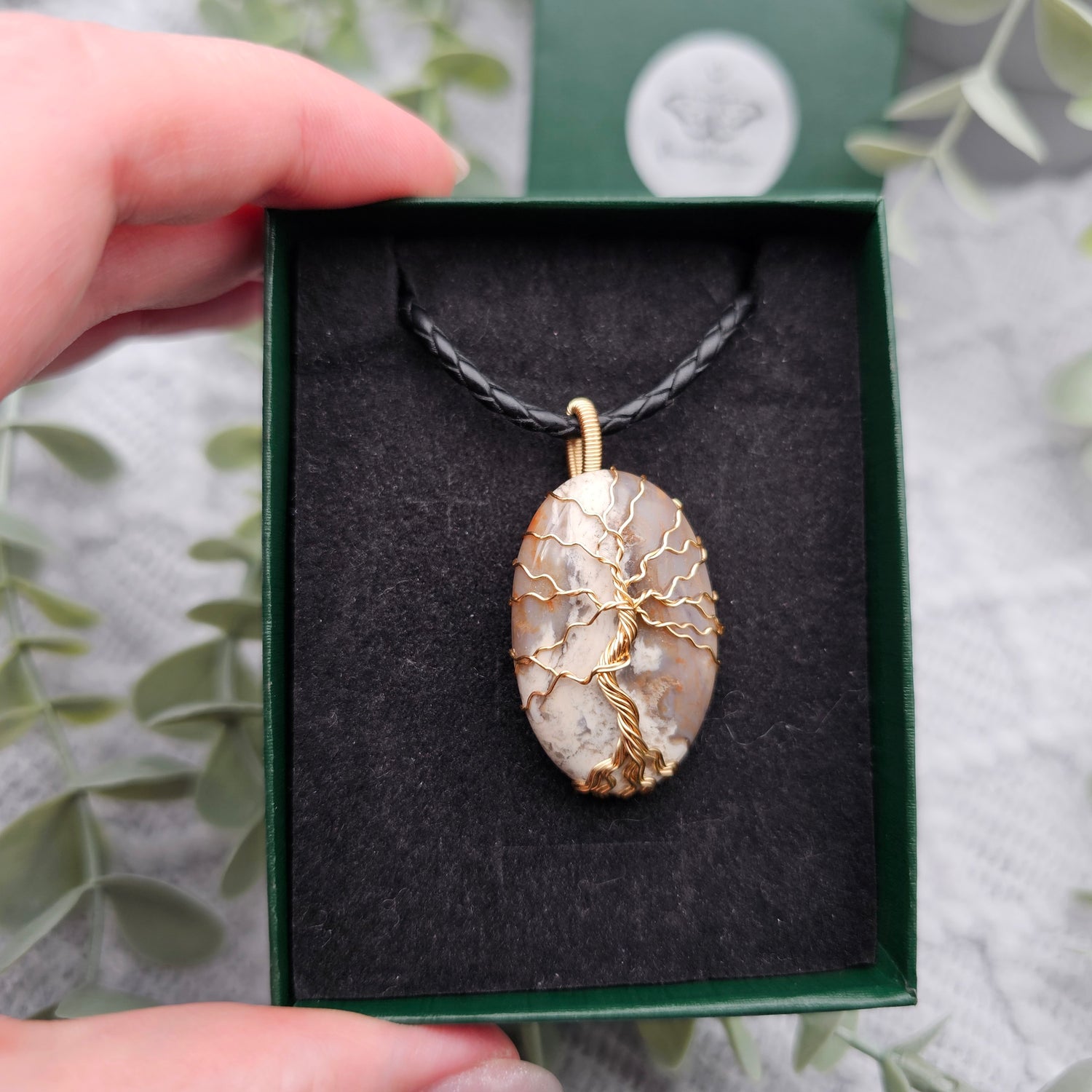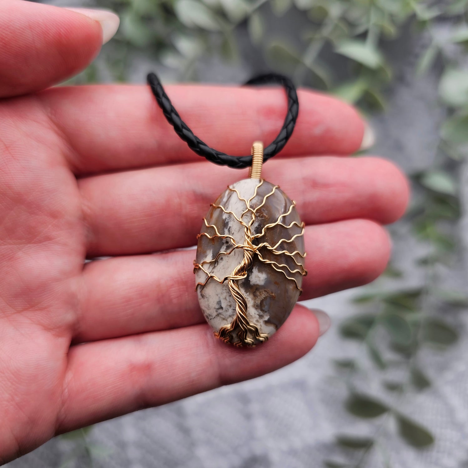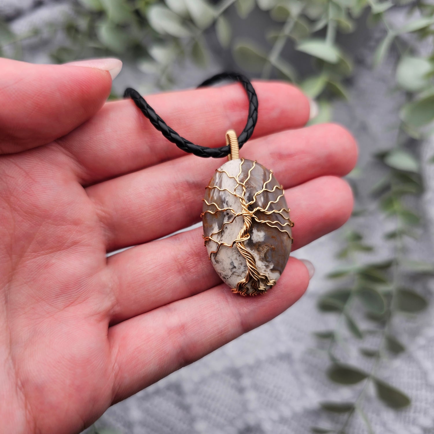 Jaspis Lebensbaum Anhänger | Schmuckdraht | Edelstein Halskette