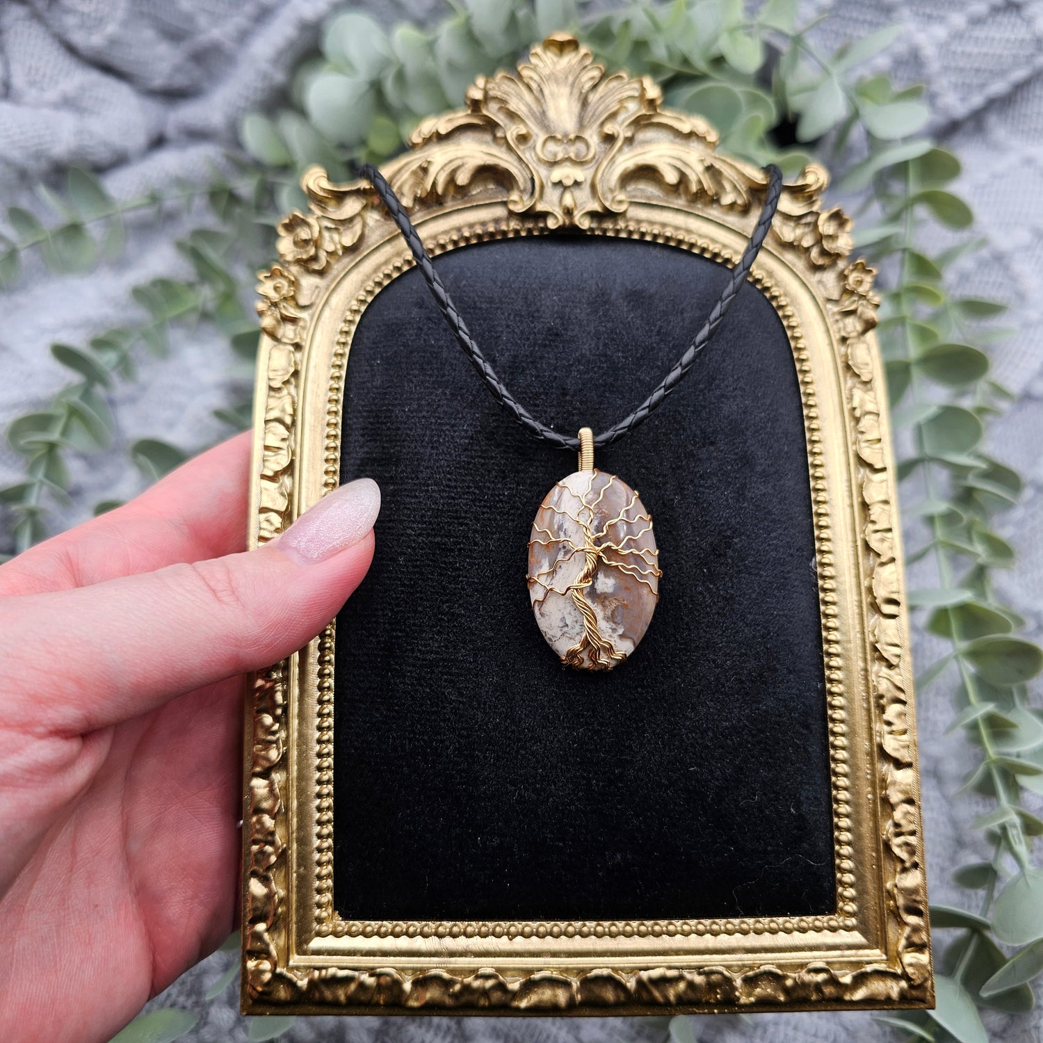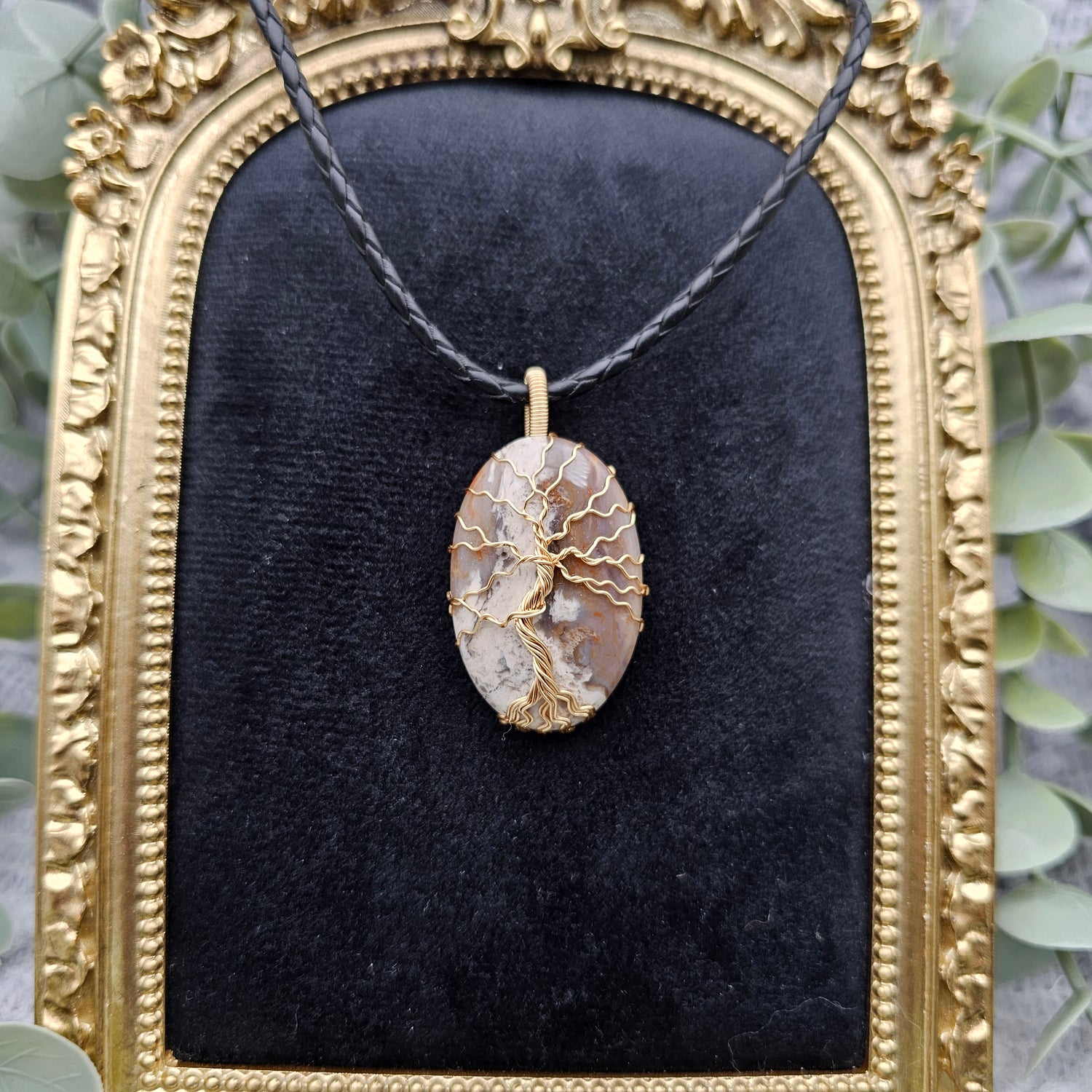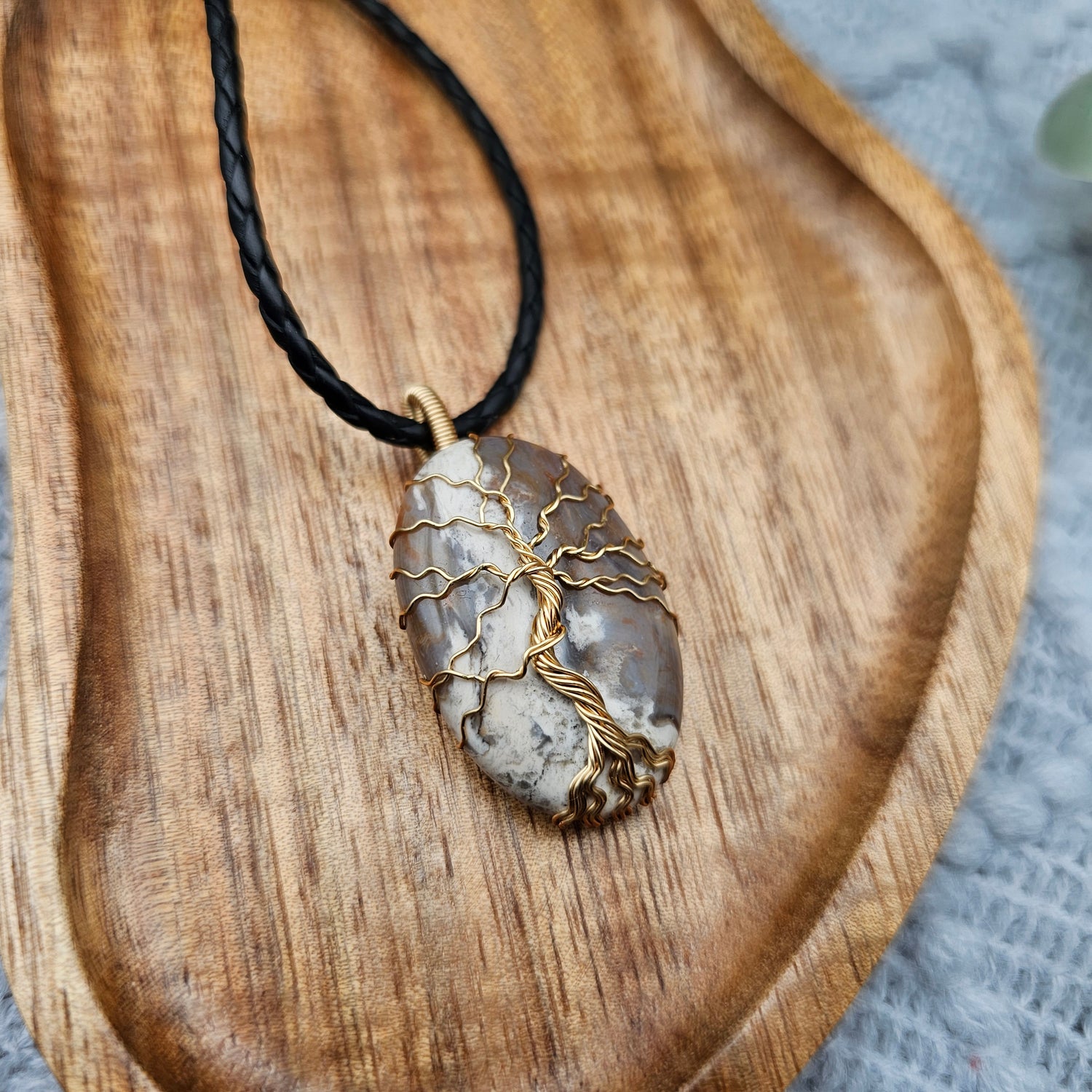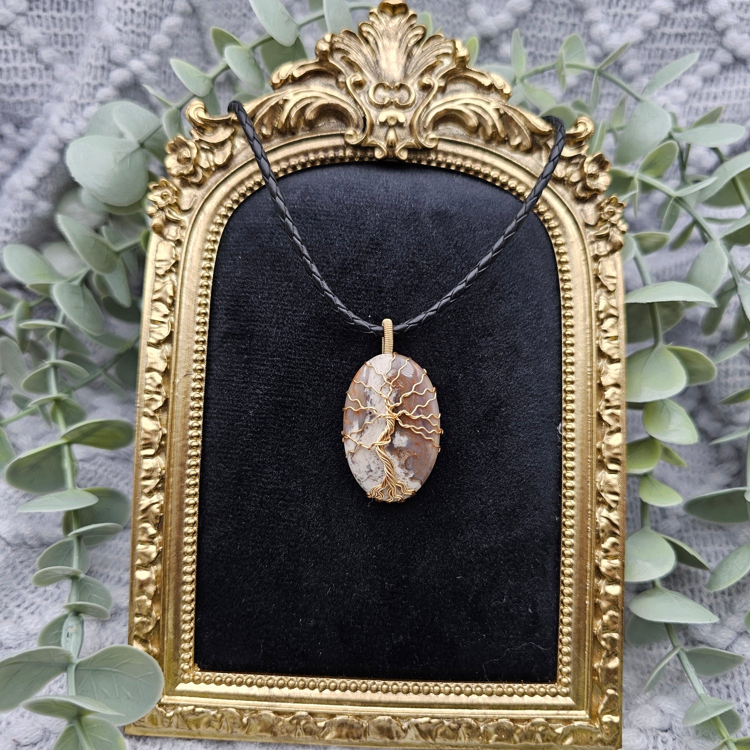 Jaspis Lebensbaum Anhänger | Schmuckdraht | Edelstein Halskette