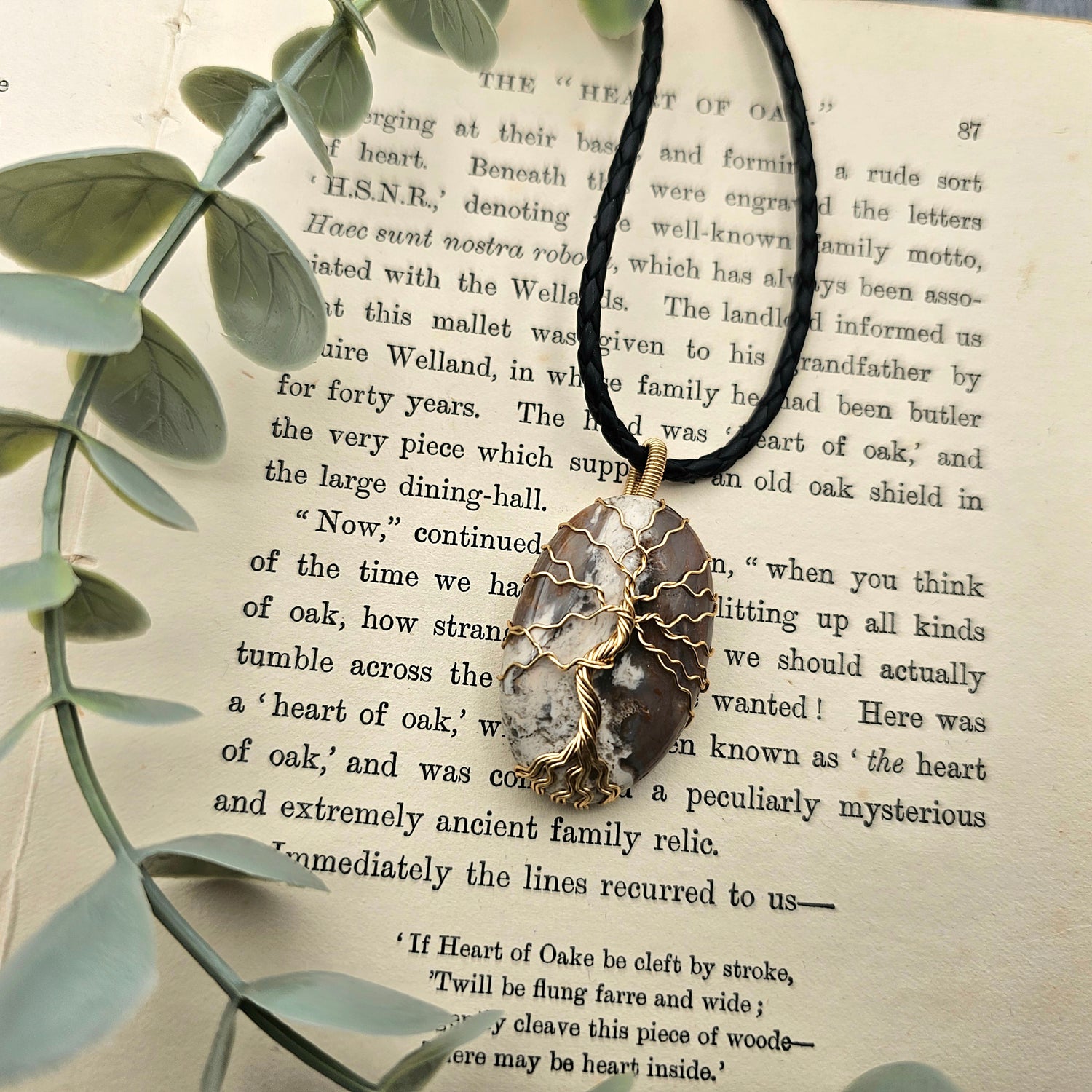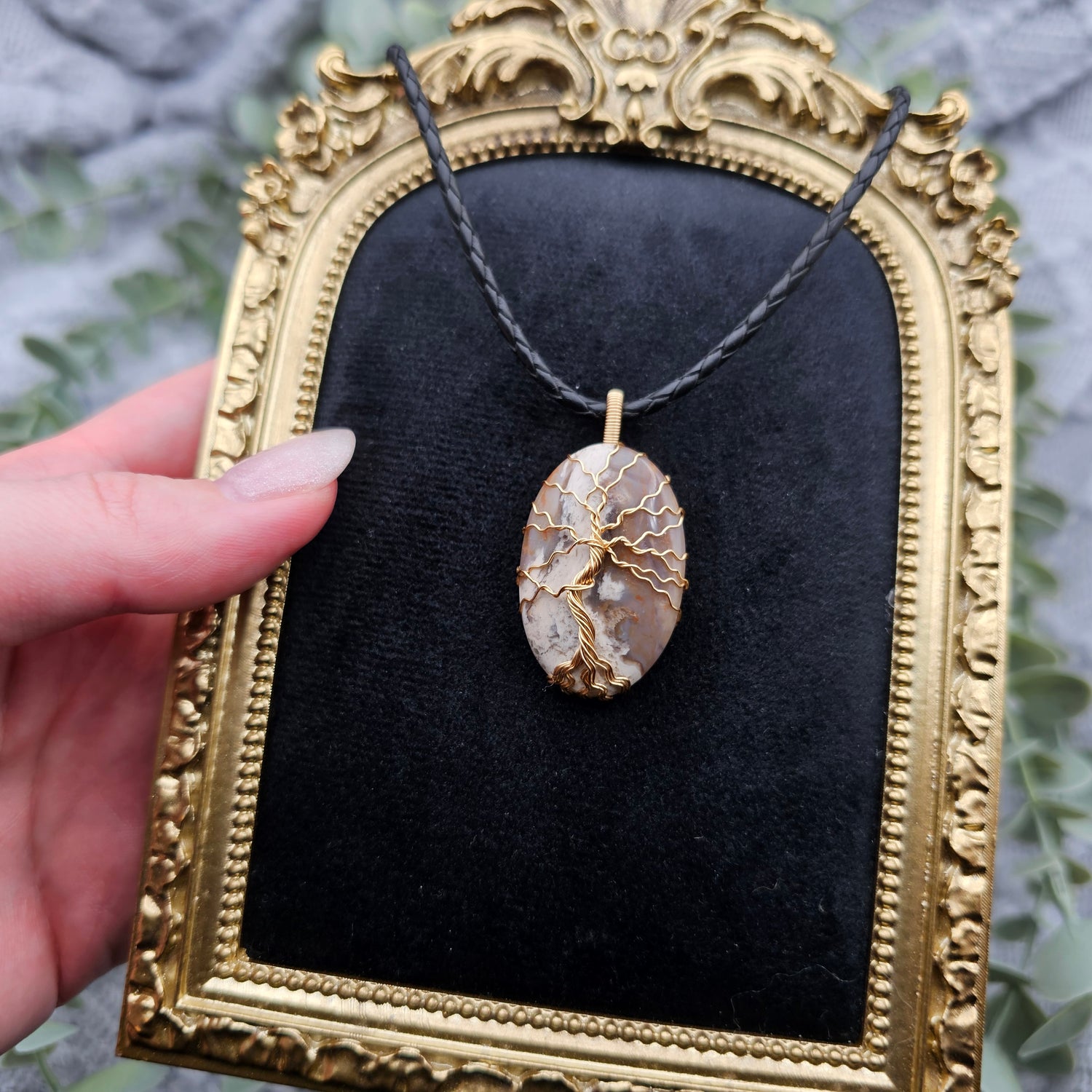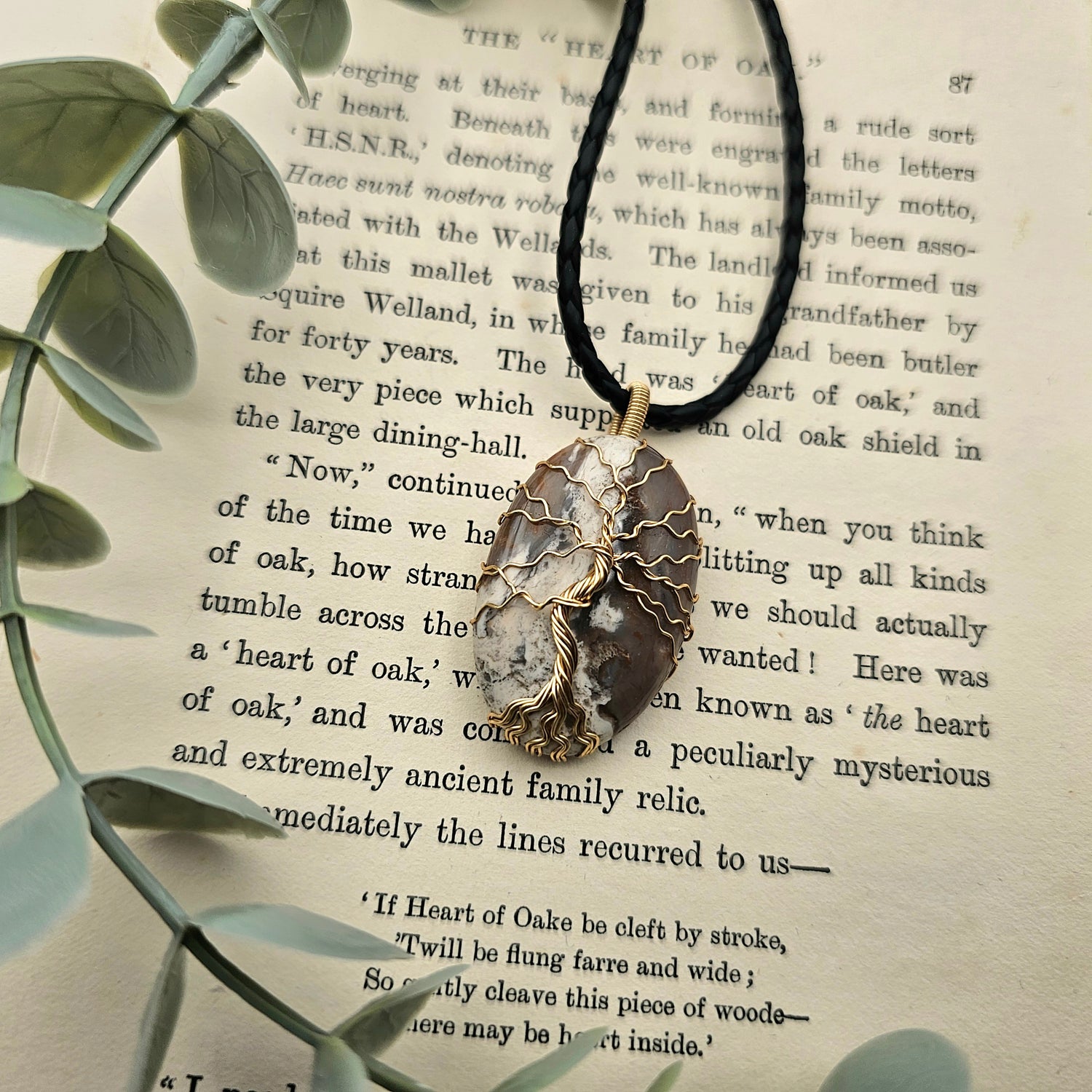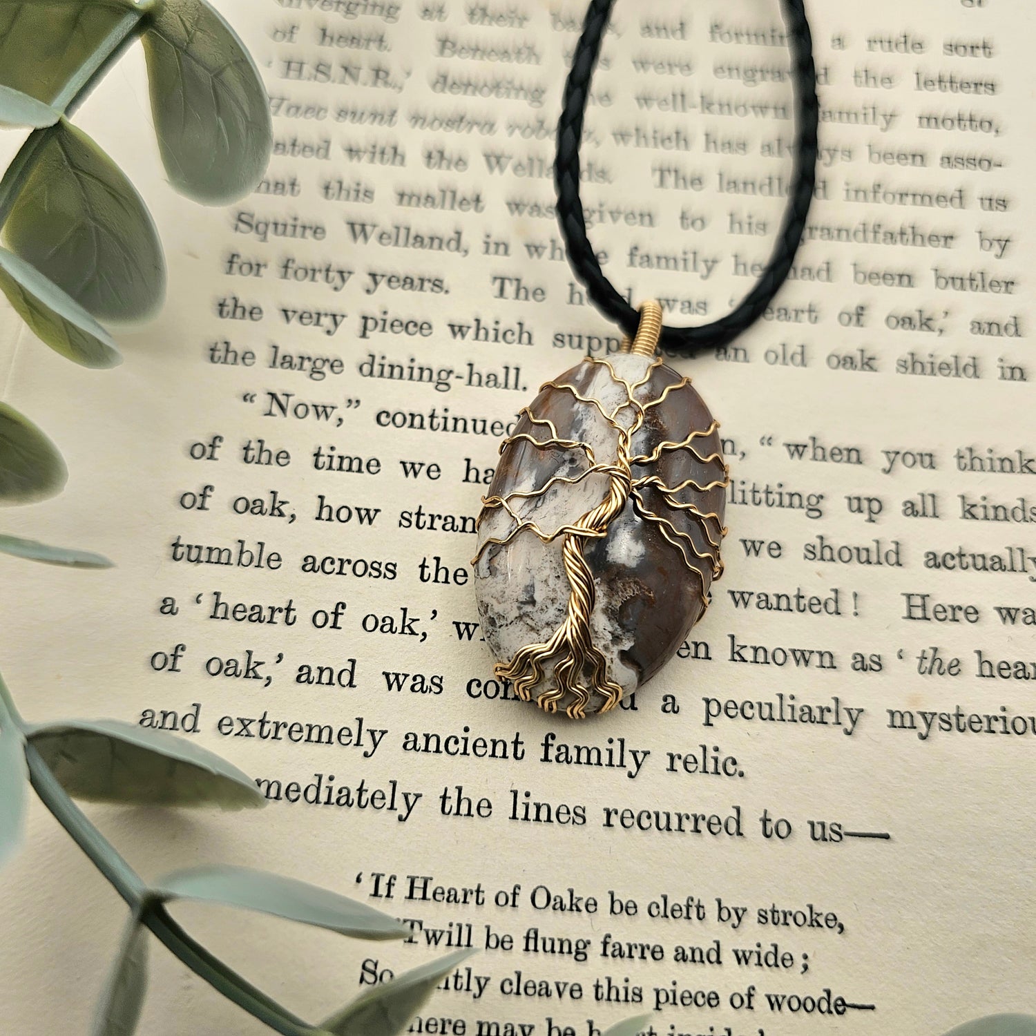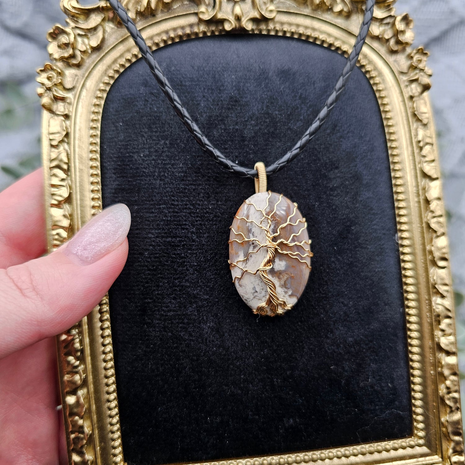 Jaspis Lebensbaum Anhänger | Schmuckdraht | Edelstein Halskette