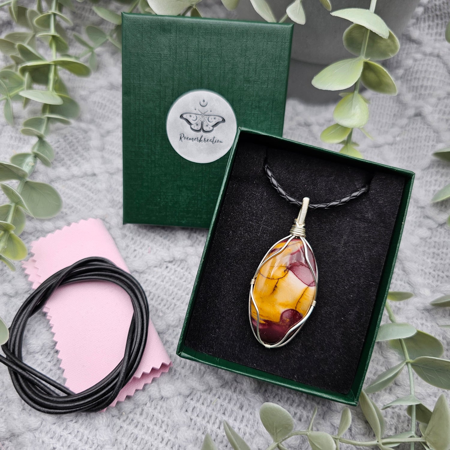 Im Lieferumfang ist ein 1m langes Lederband , ein Schmuckpflegetuch und eine Geschenkschachtel enthalten.