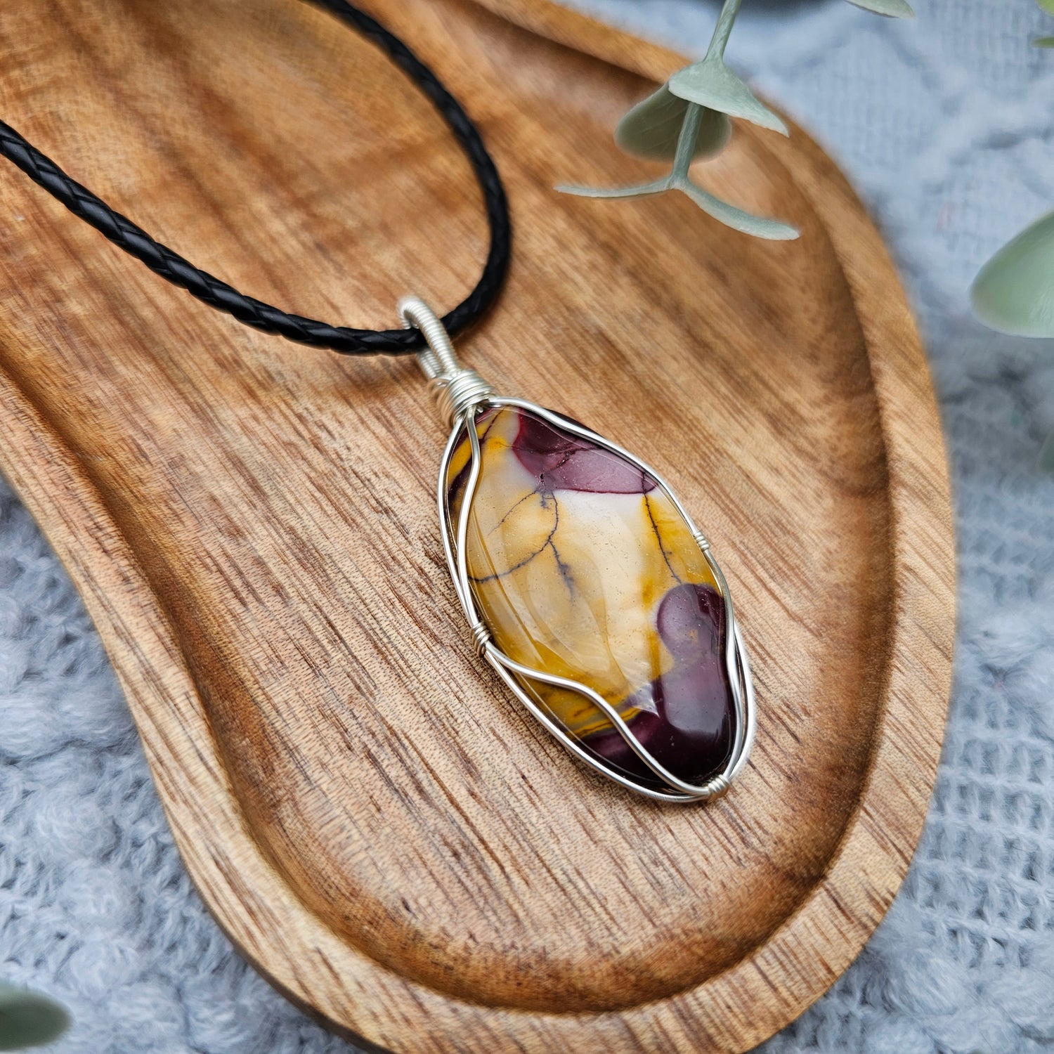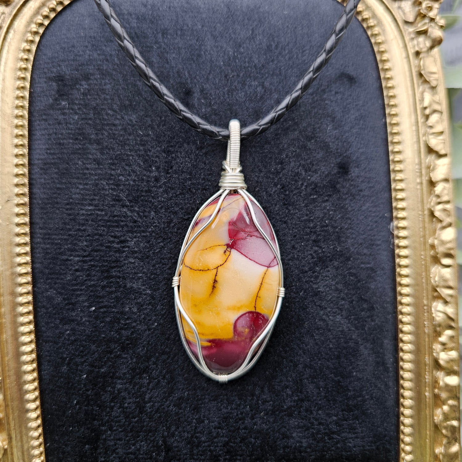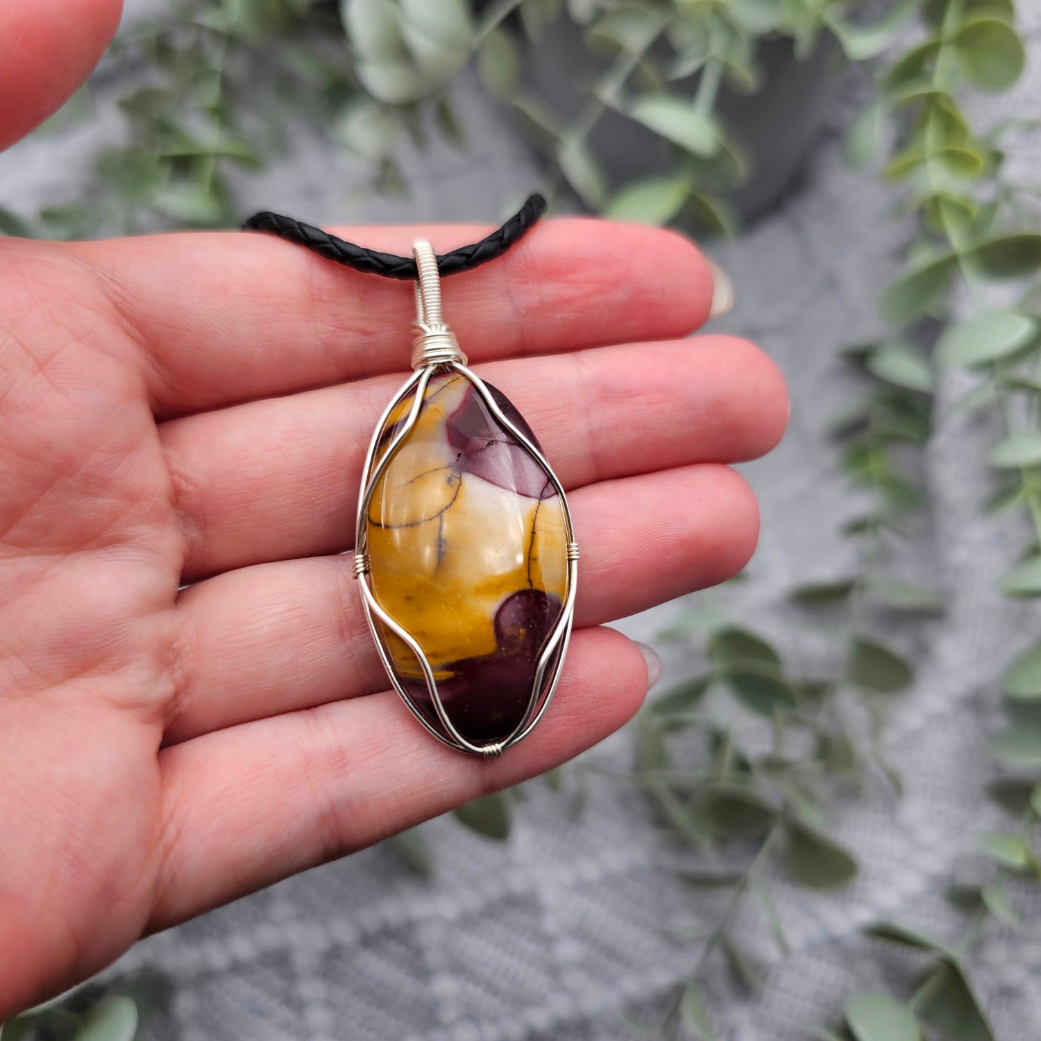 Der Anhänger ist in silberfarbenen Schmuckdraht gefasst und ein Einzelstück.