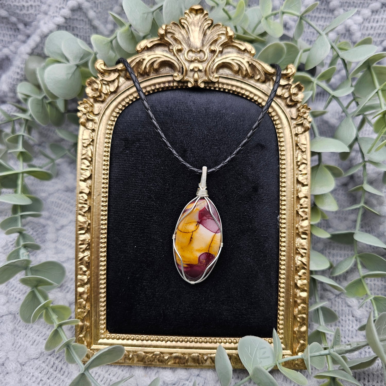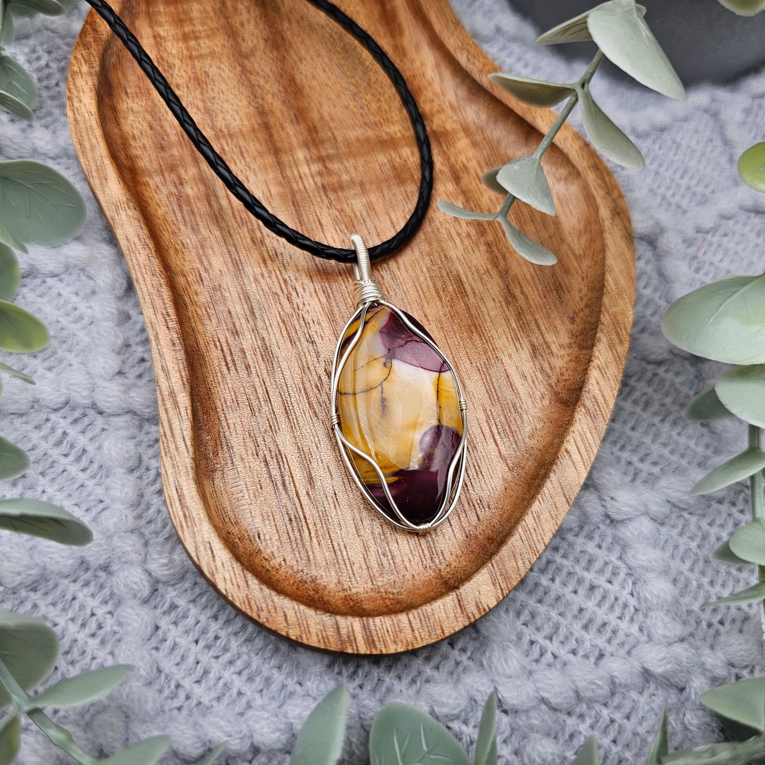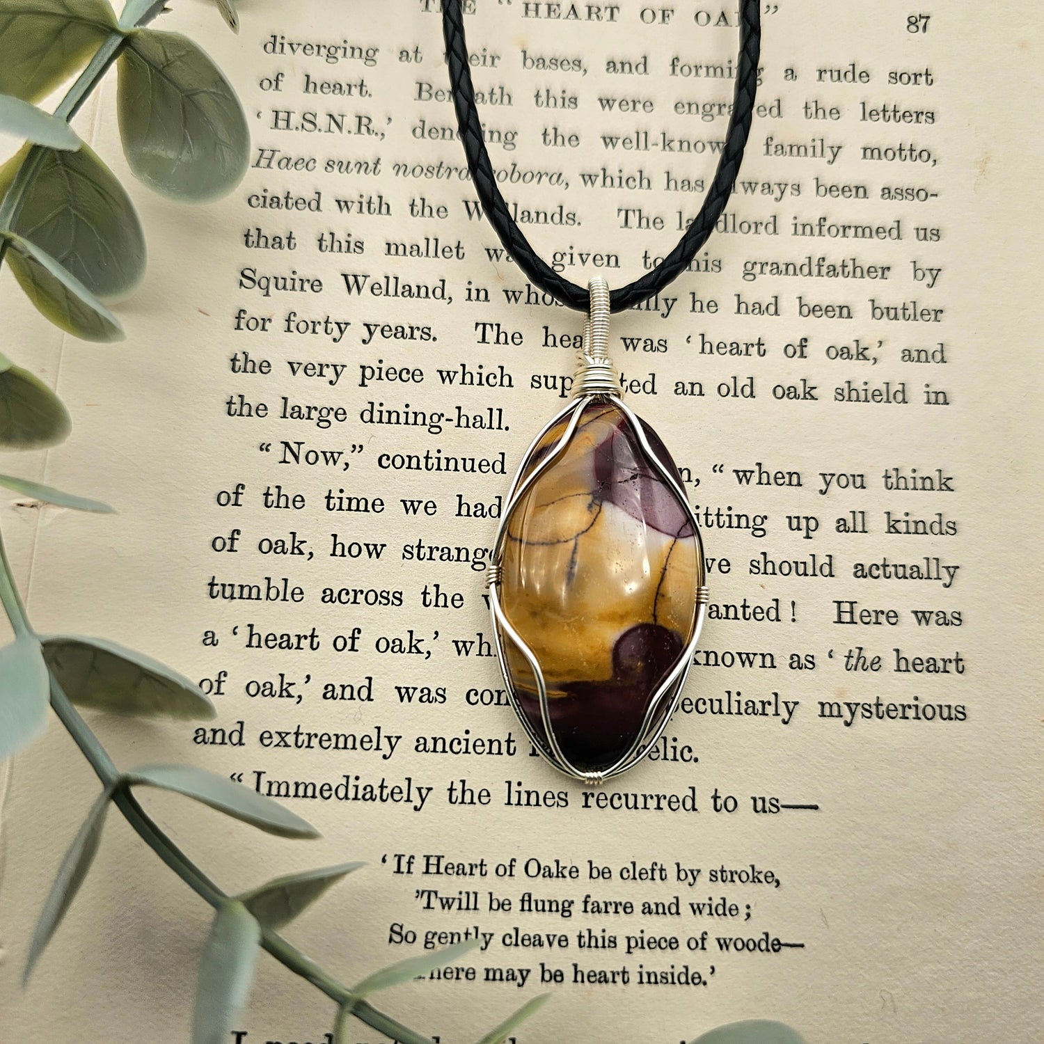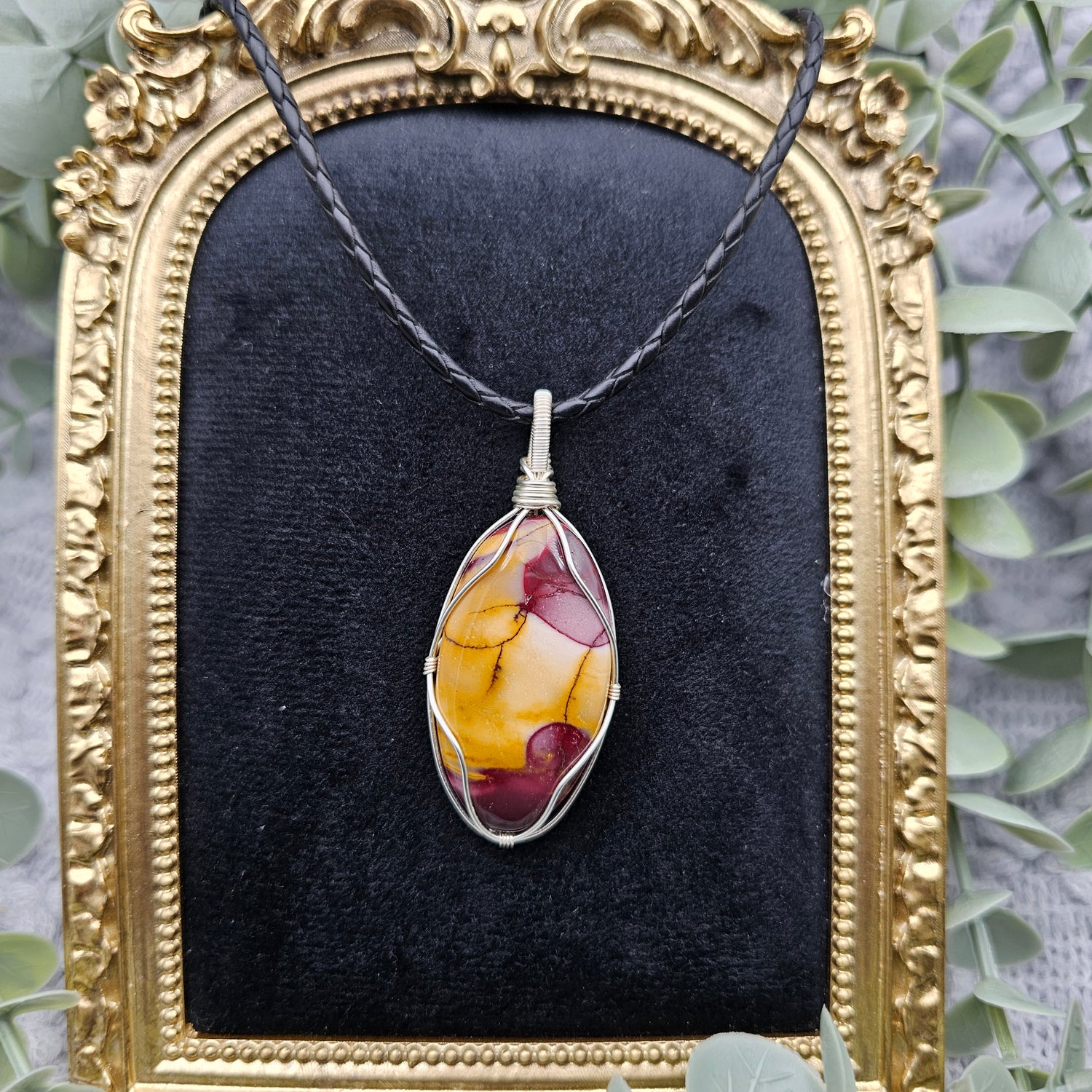 Der Anhänger ist in silberfarbenen Schmuckdraht gefasst und ein Einzelstück.