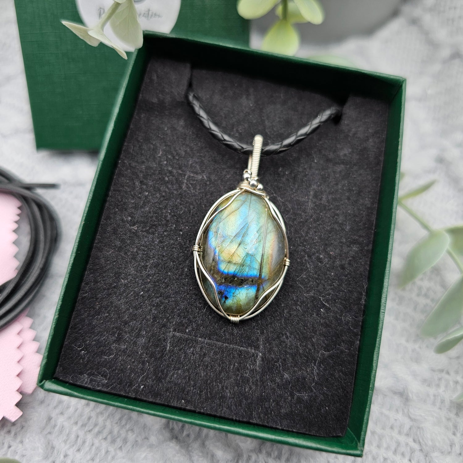 Labradorit Anhänger | 925er Silber | Edelstein Halskette