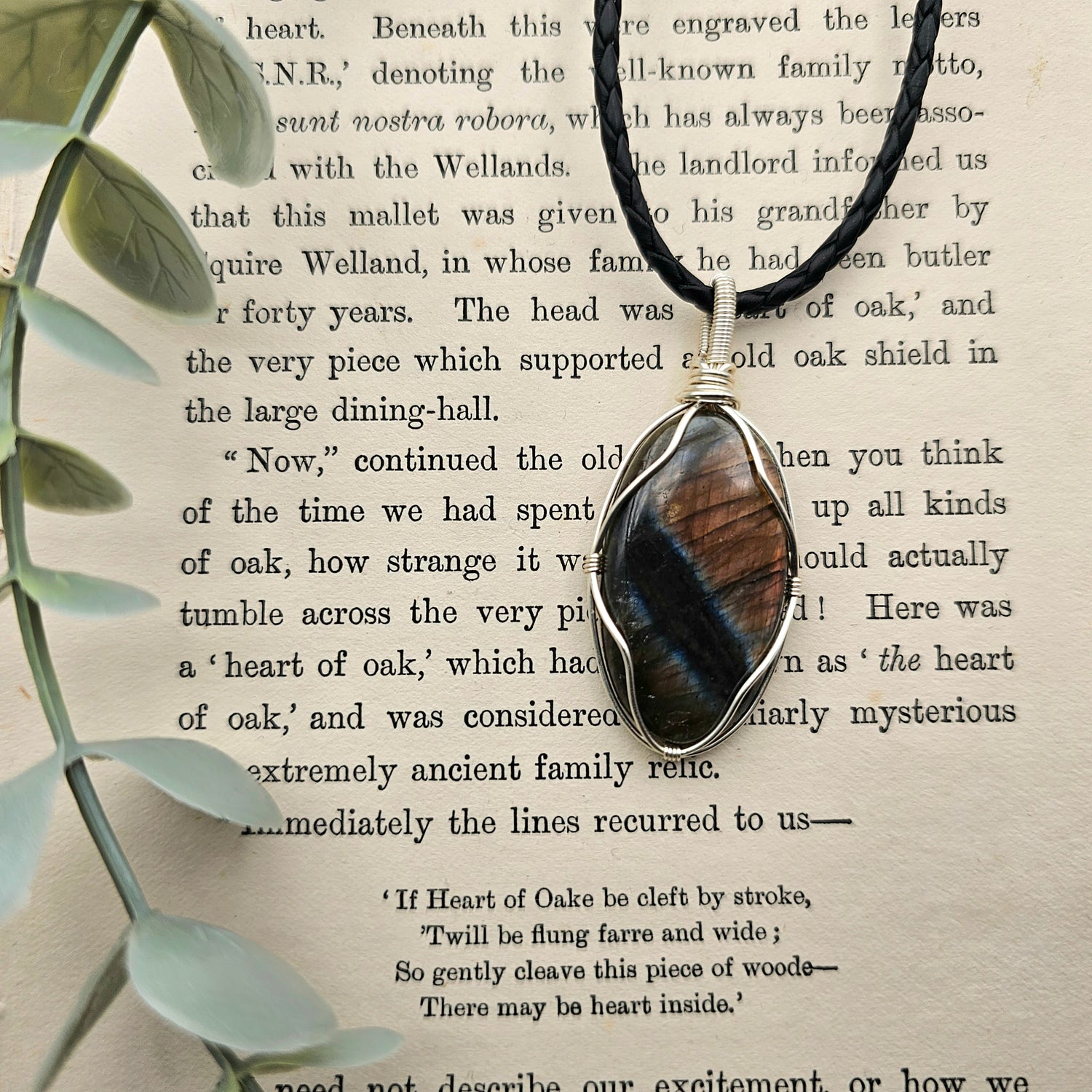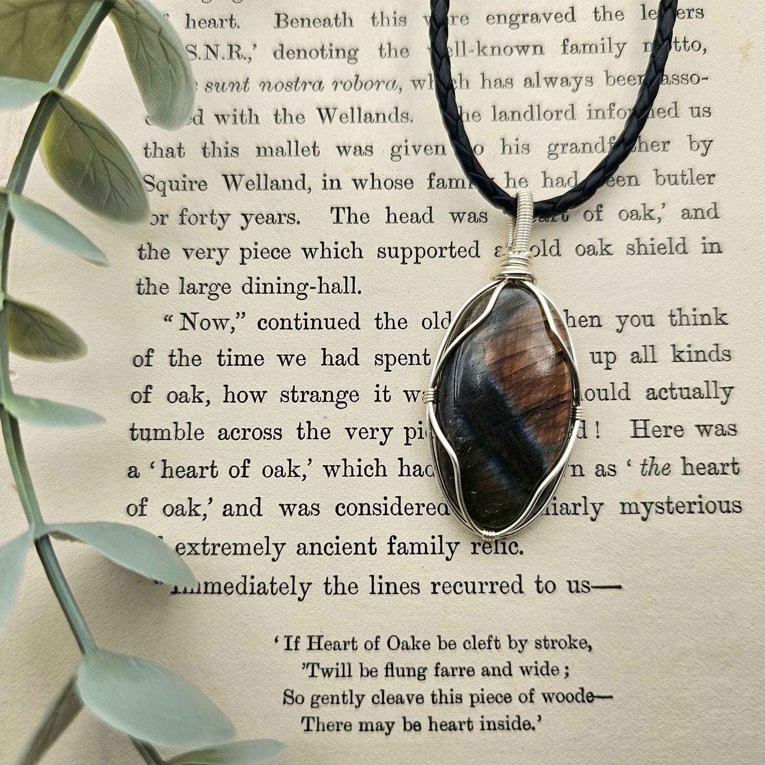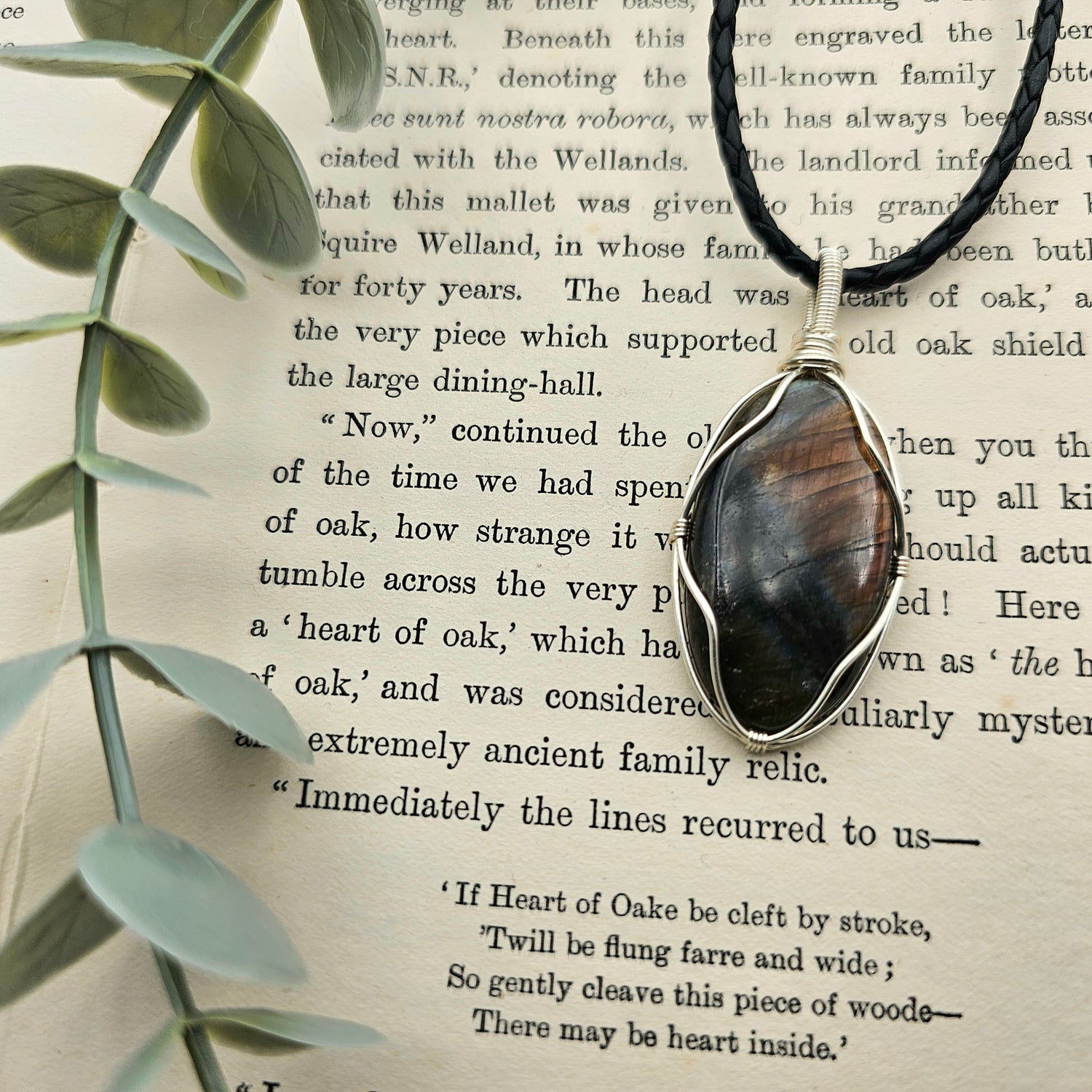 Der Anhänger ist in schwarzen Schmuckdraht gefasst und ein Einzelstück.