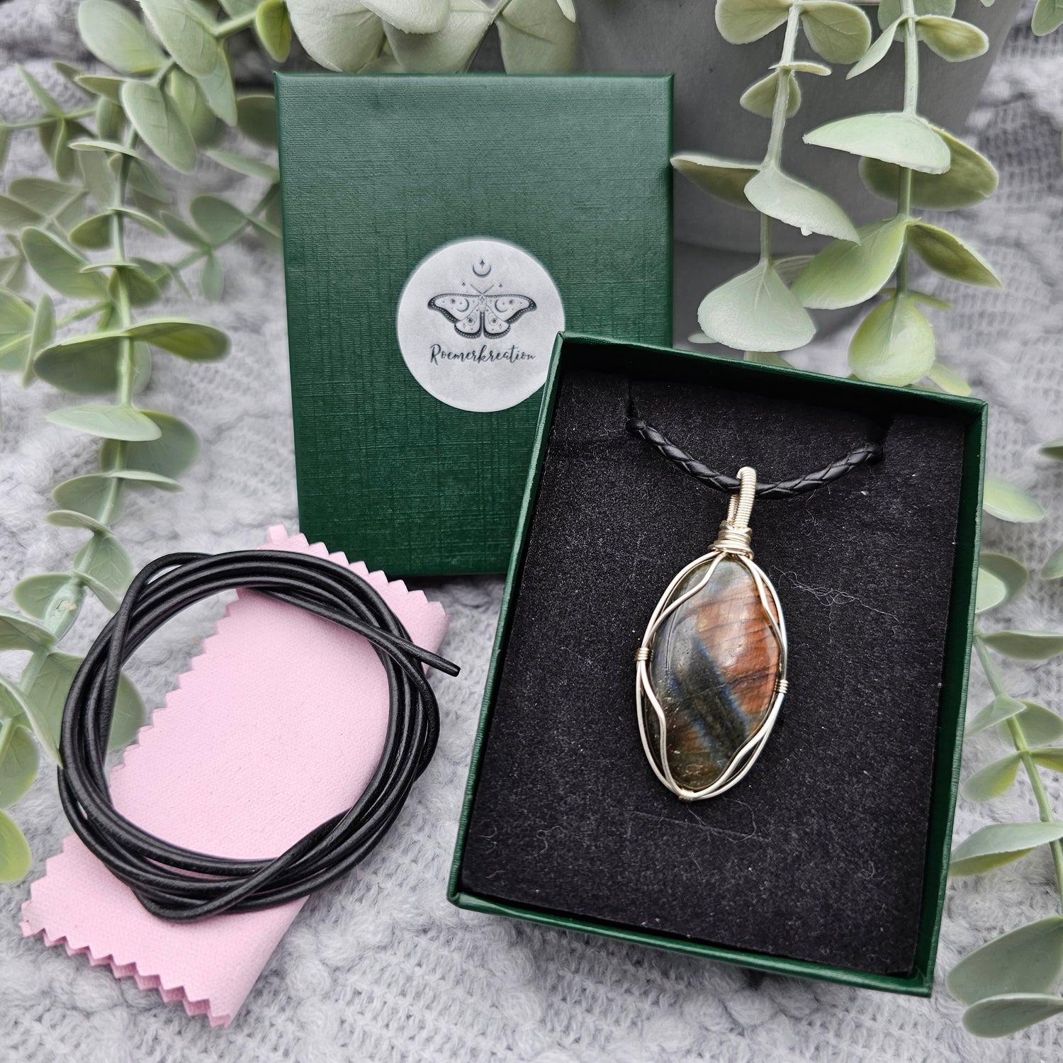 Im Lieferumfang ist ein 1m langes Lederband , ein Schmuckpflegetuch und eine Geschenkschachtel enthalten.