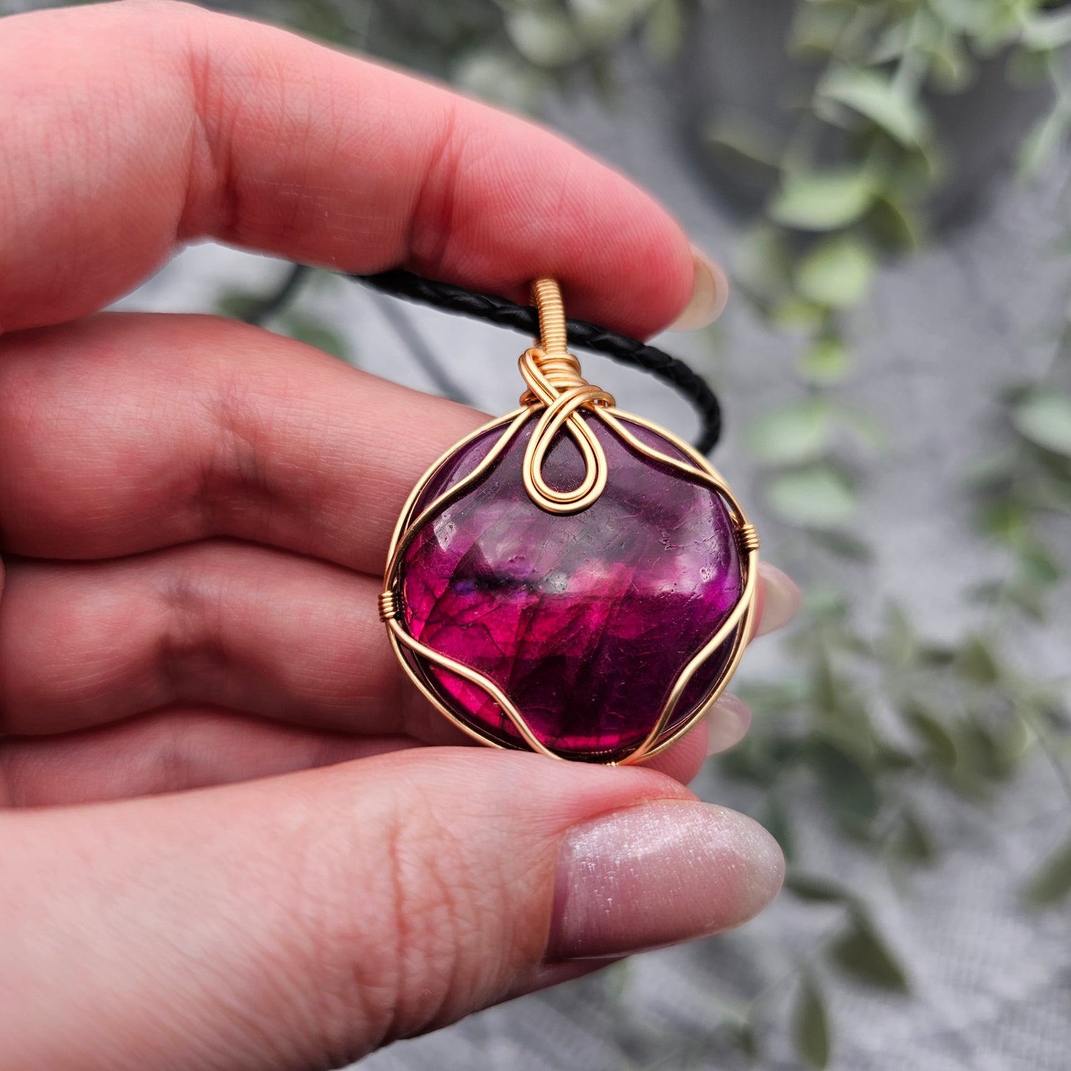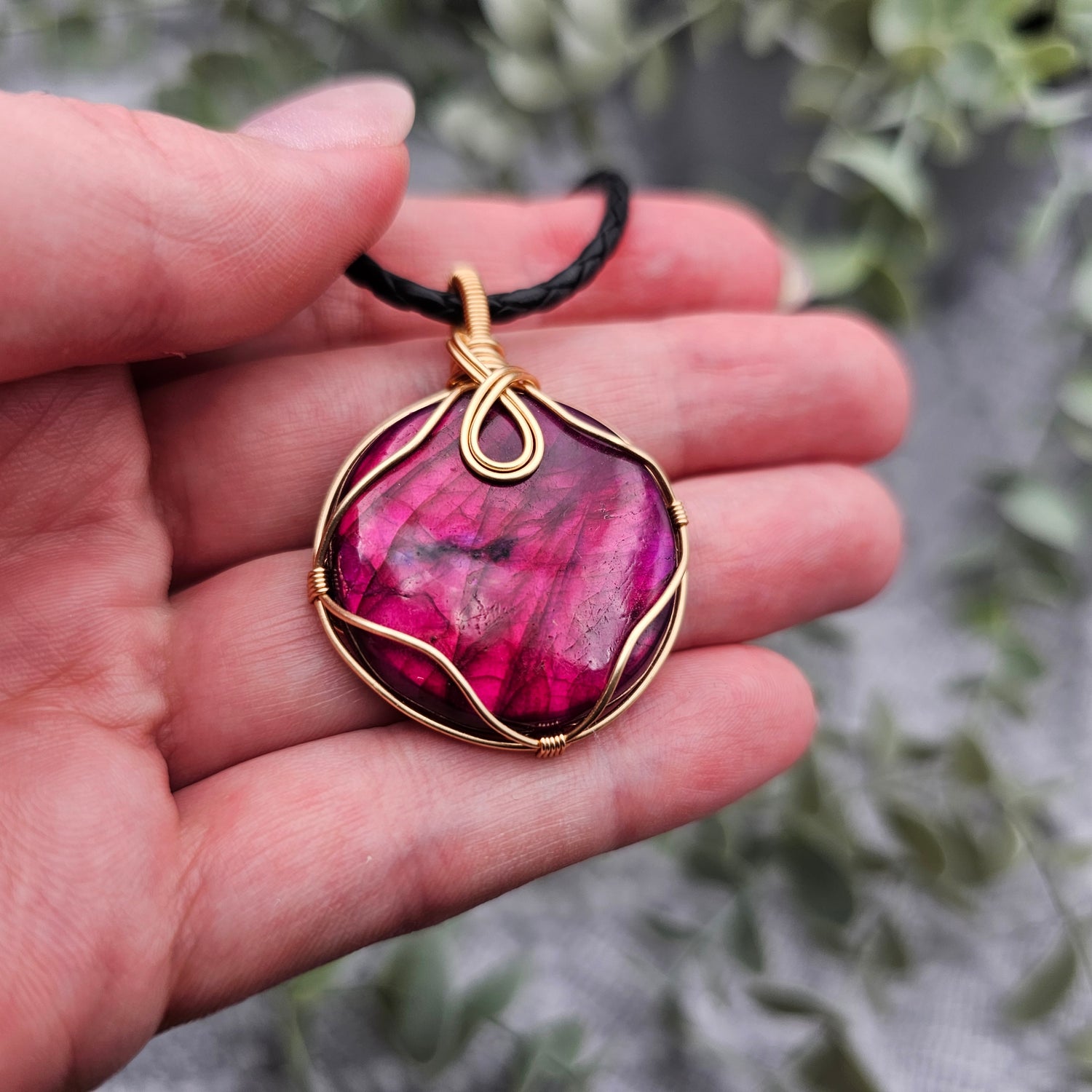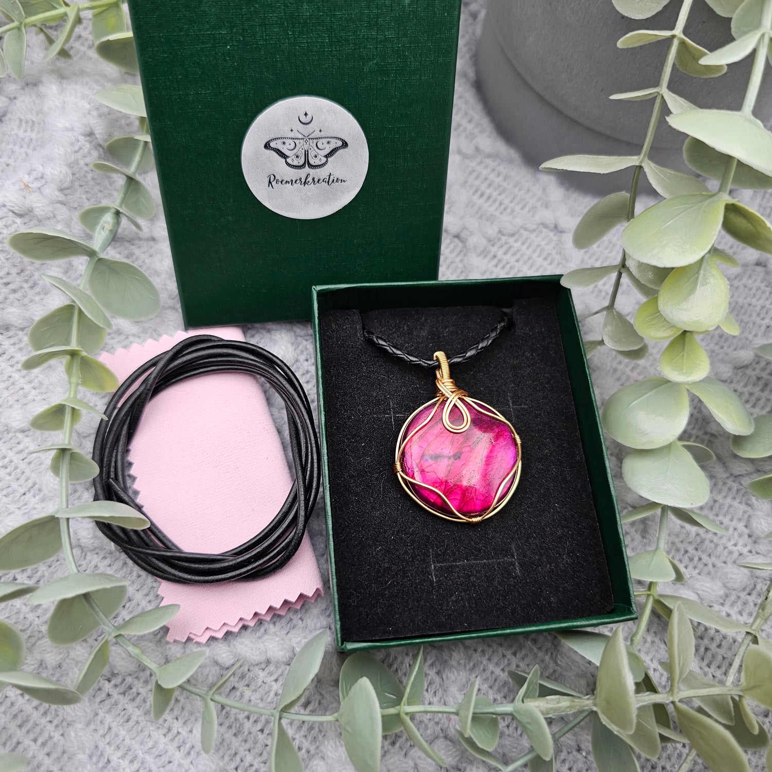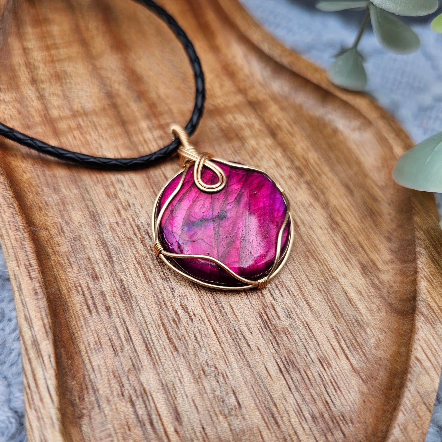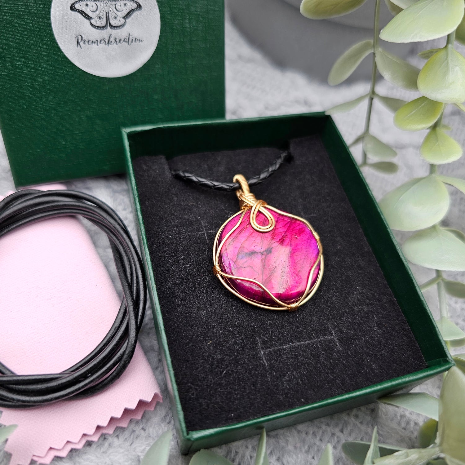 Labradorit behandelt Anhänger | Schmuckdraht | Edelstein Halskette