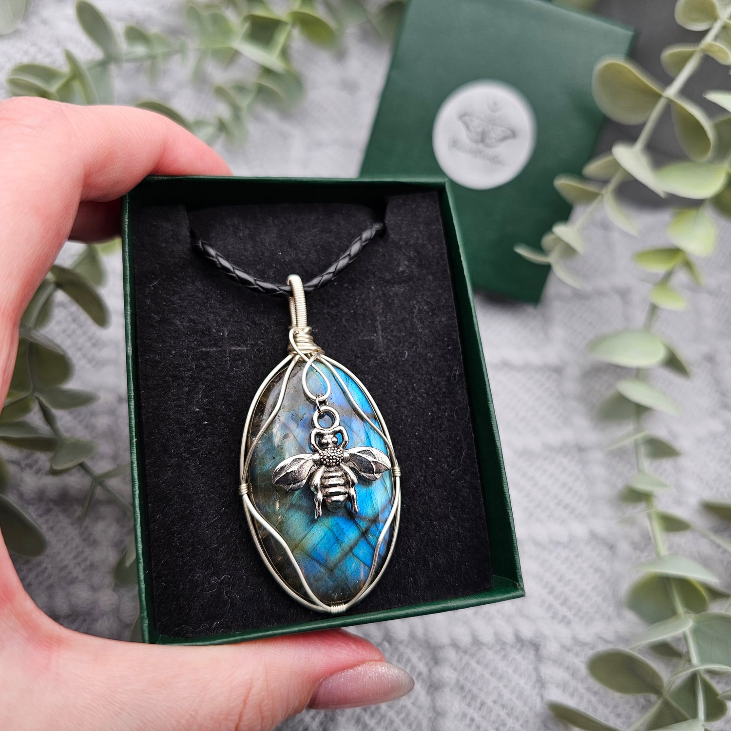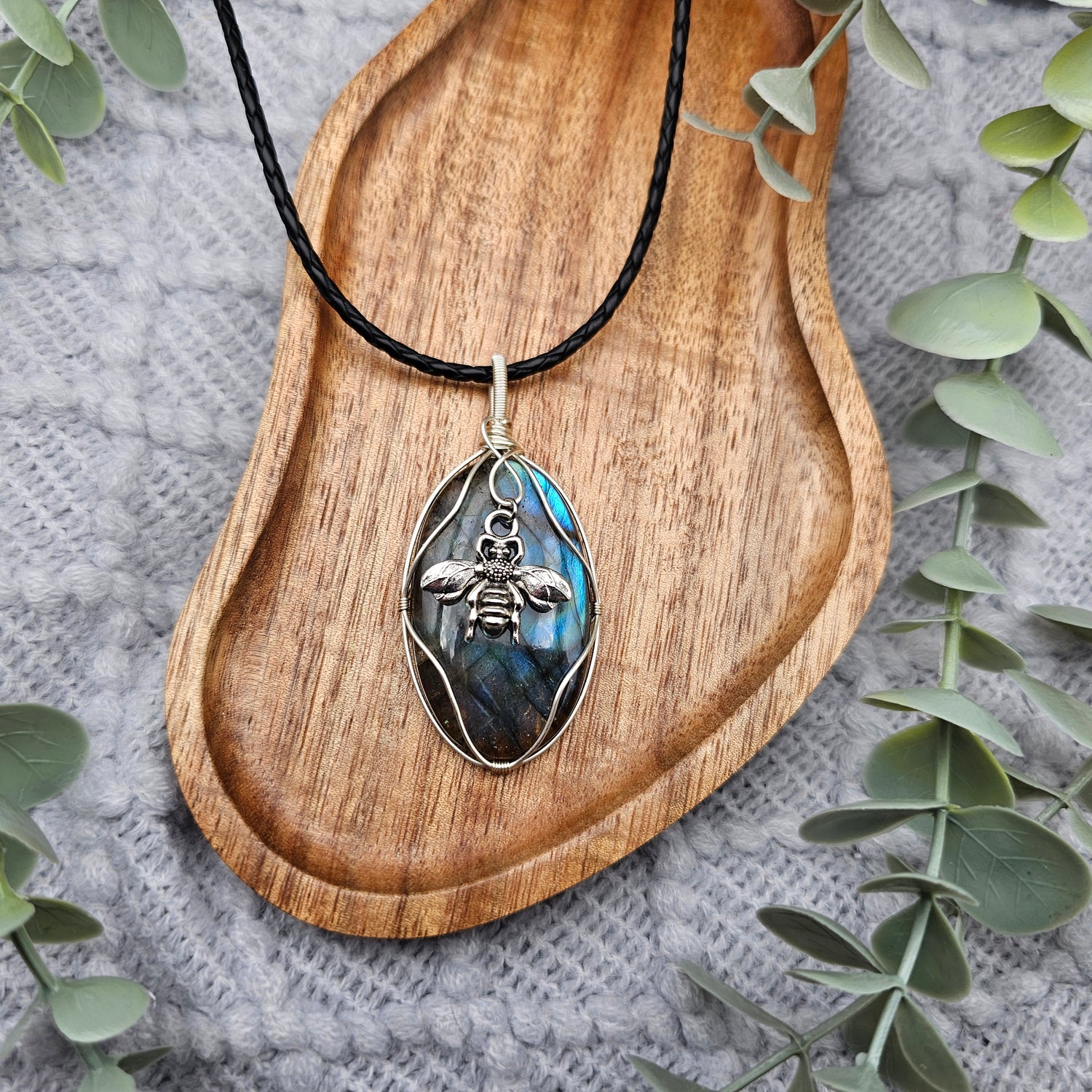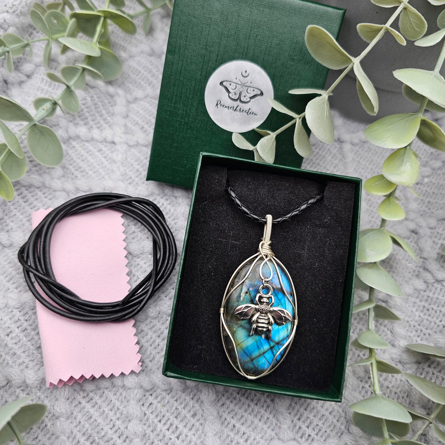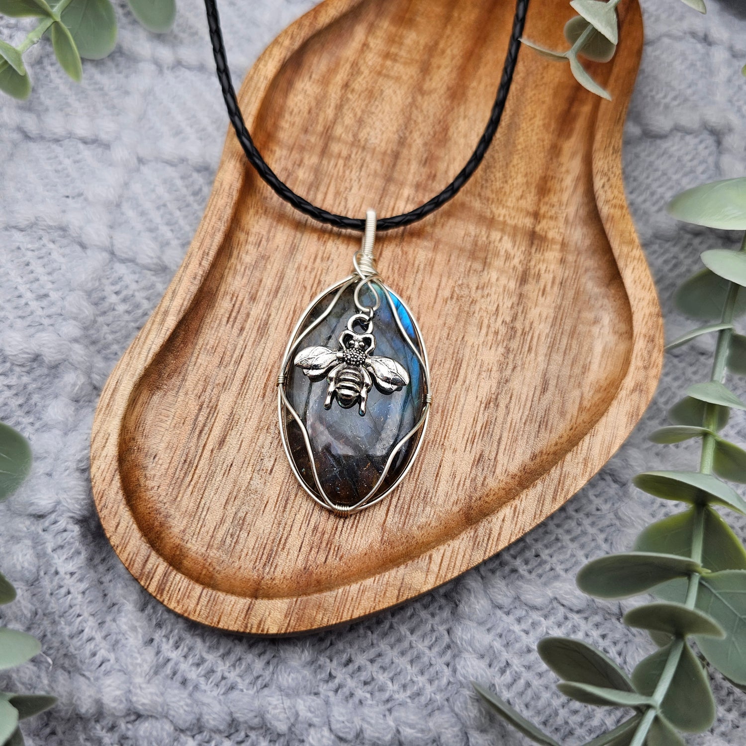 Labradorit & Biene Anhänger | Schmuckdraht | Edelstein Halskette