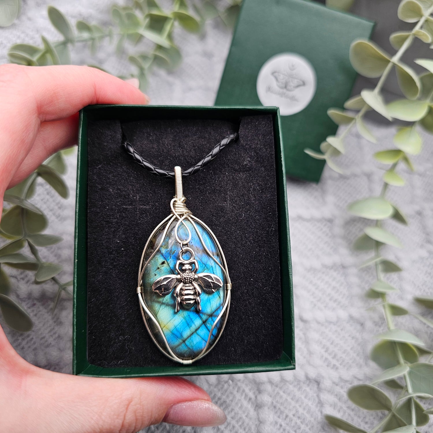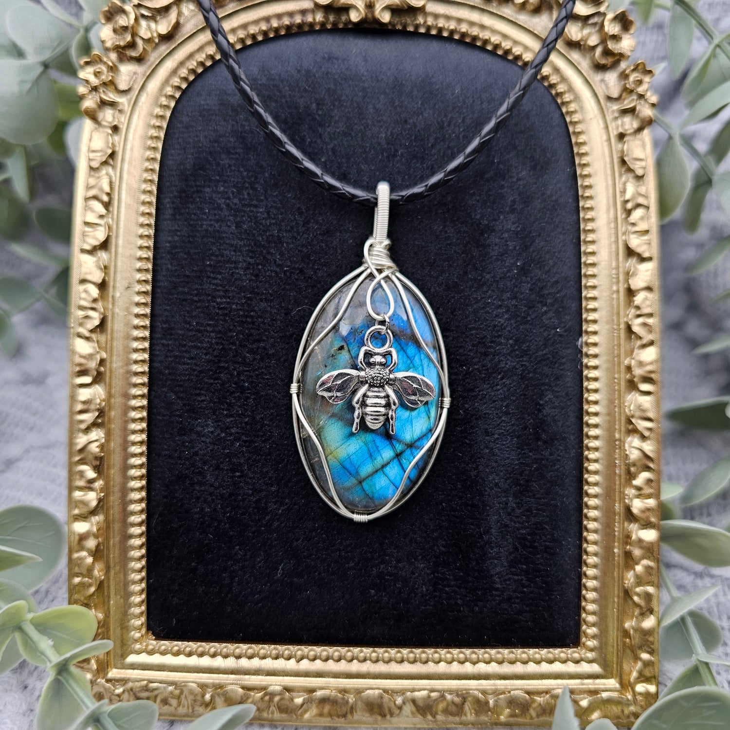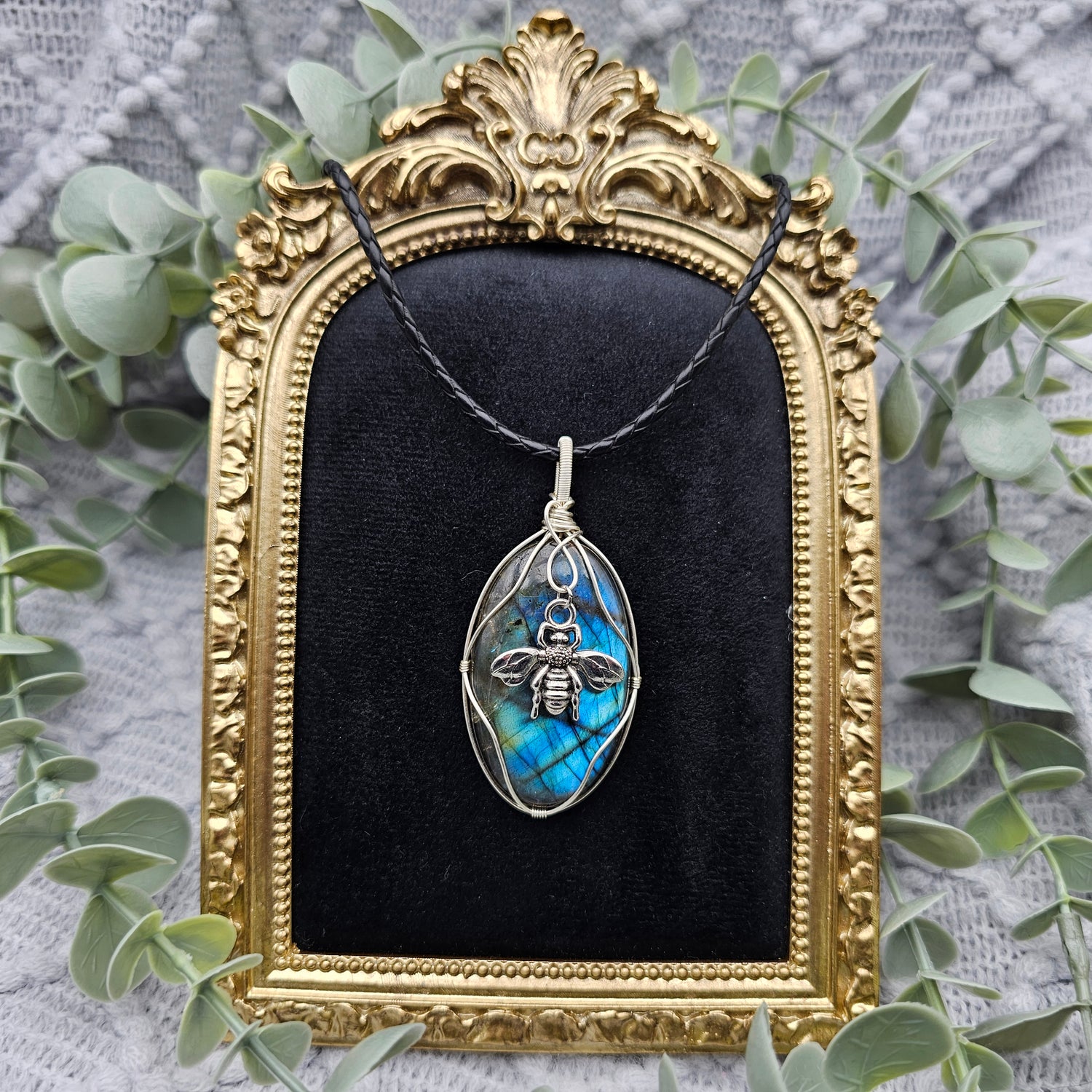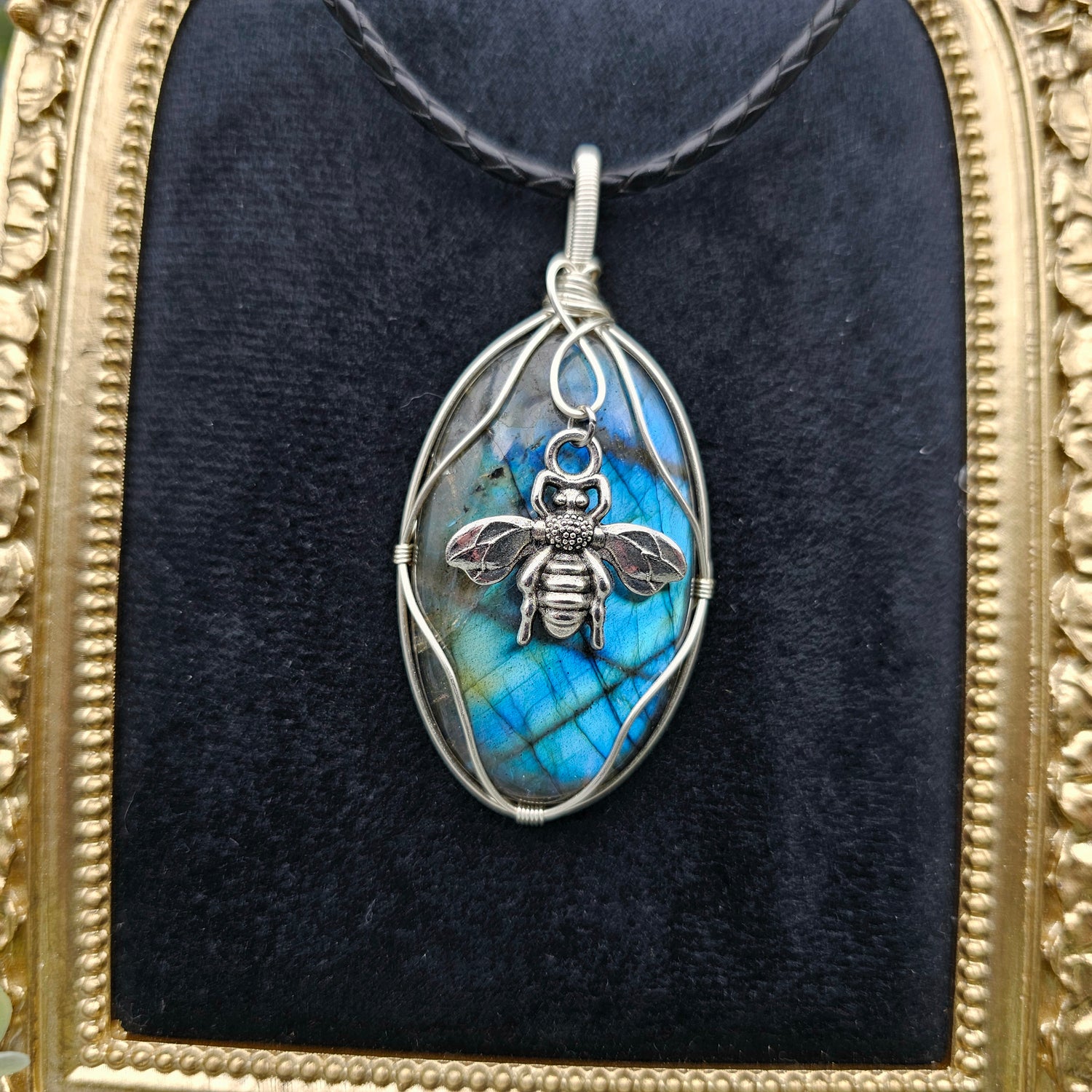 Labradorit & Biene Anhänger | Schmuckdraht | Edelstein Halskette