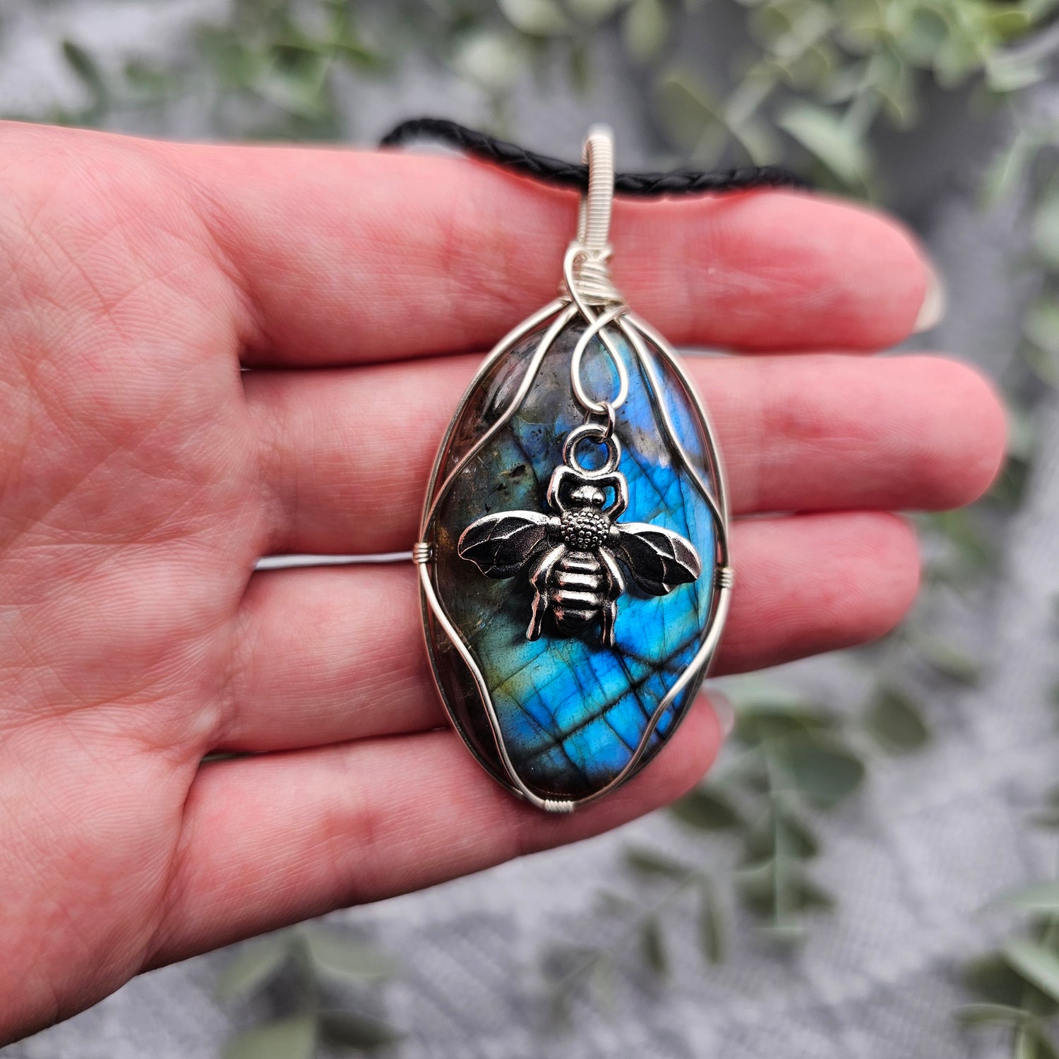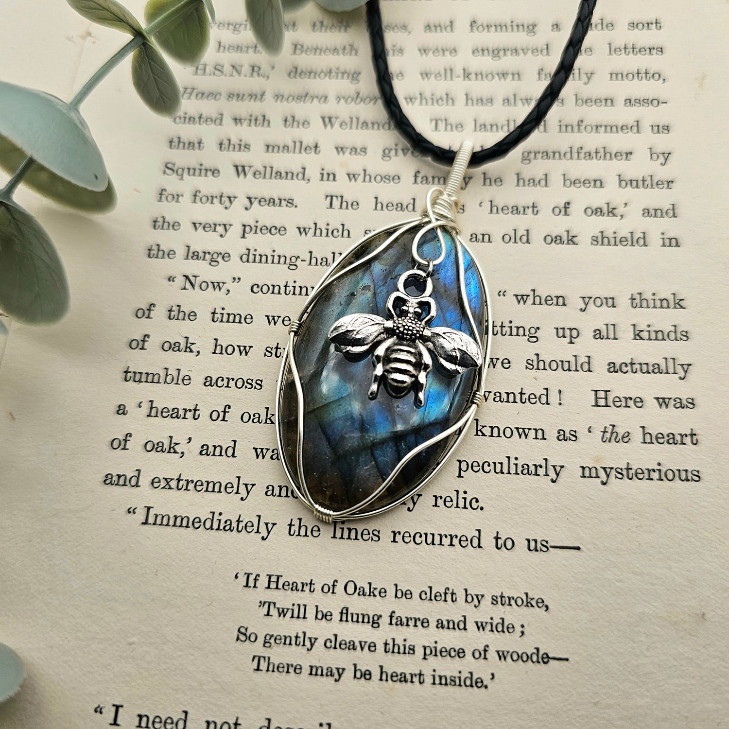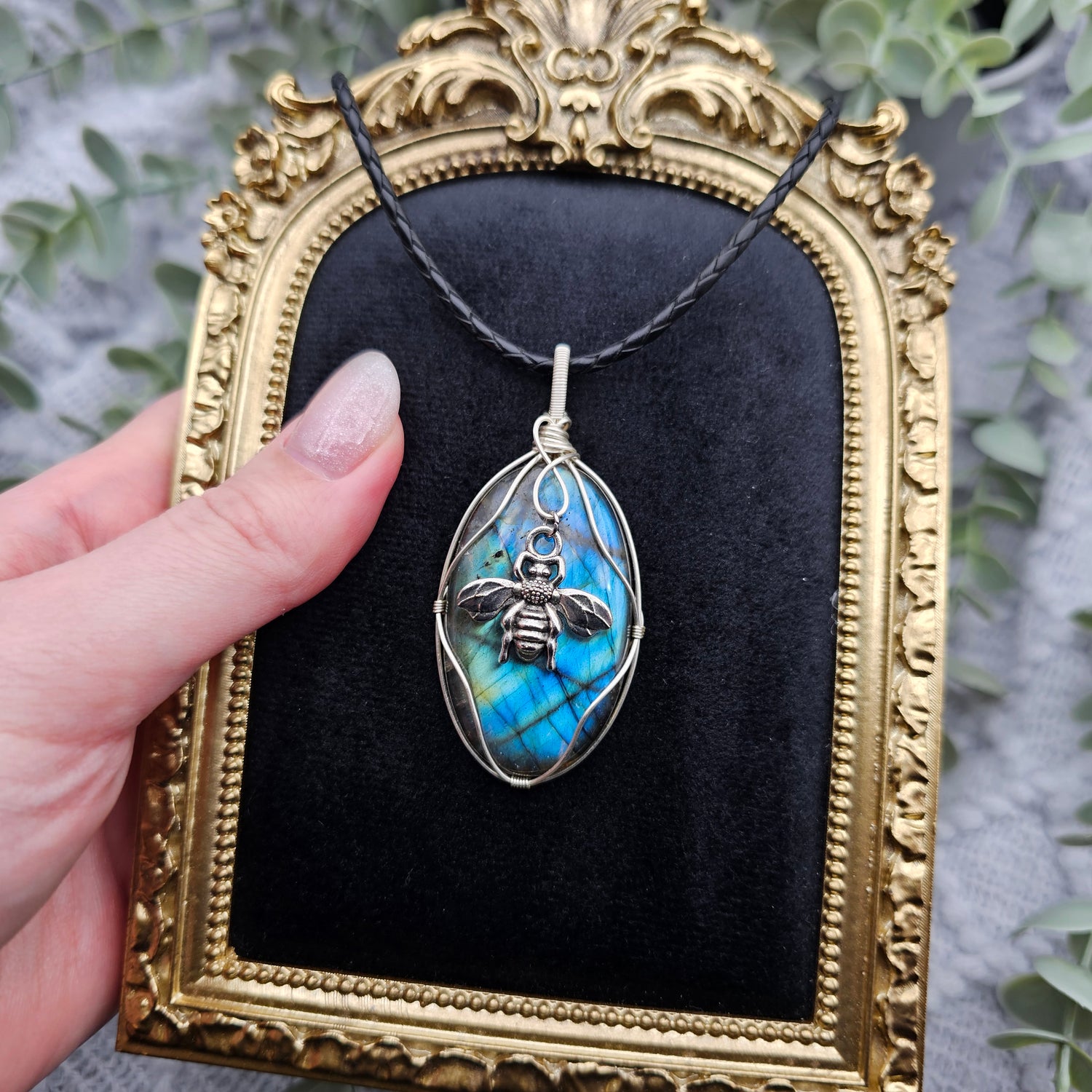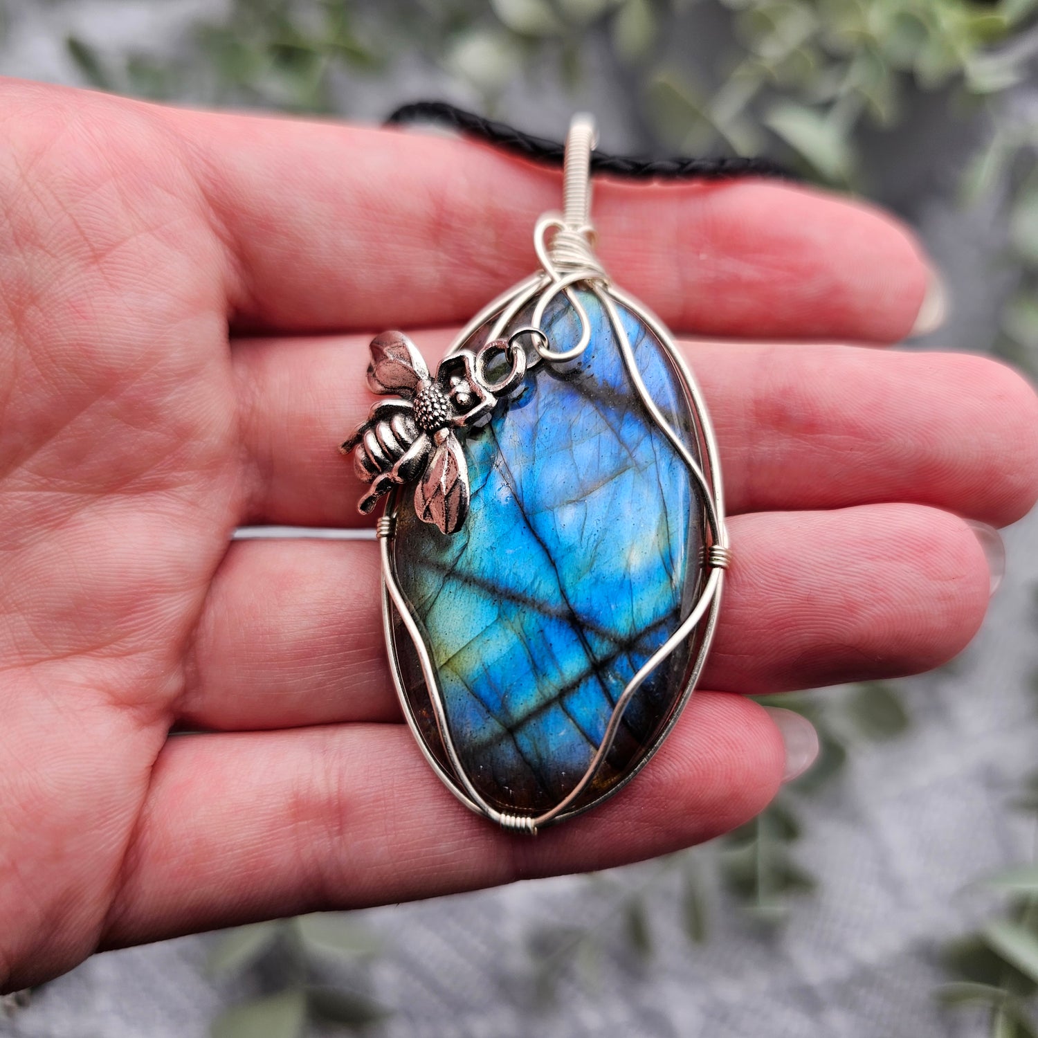 Labradorit & Biene Anhänger | Schmuckdraht | Edelstein Halskette