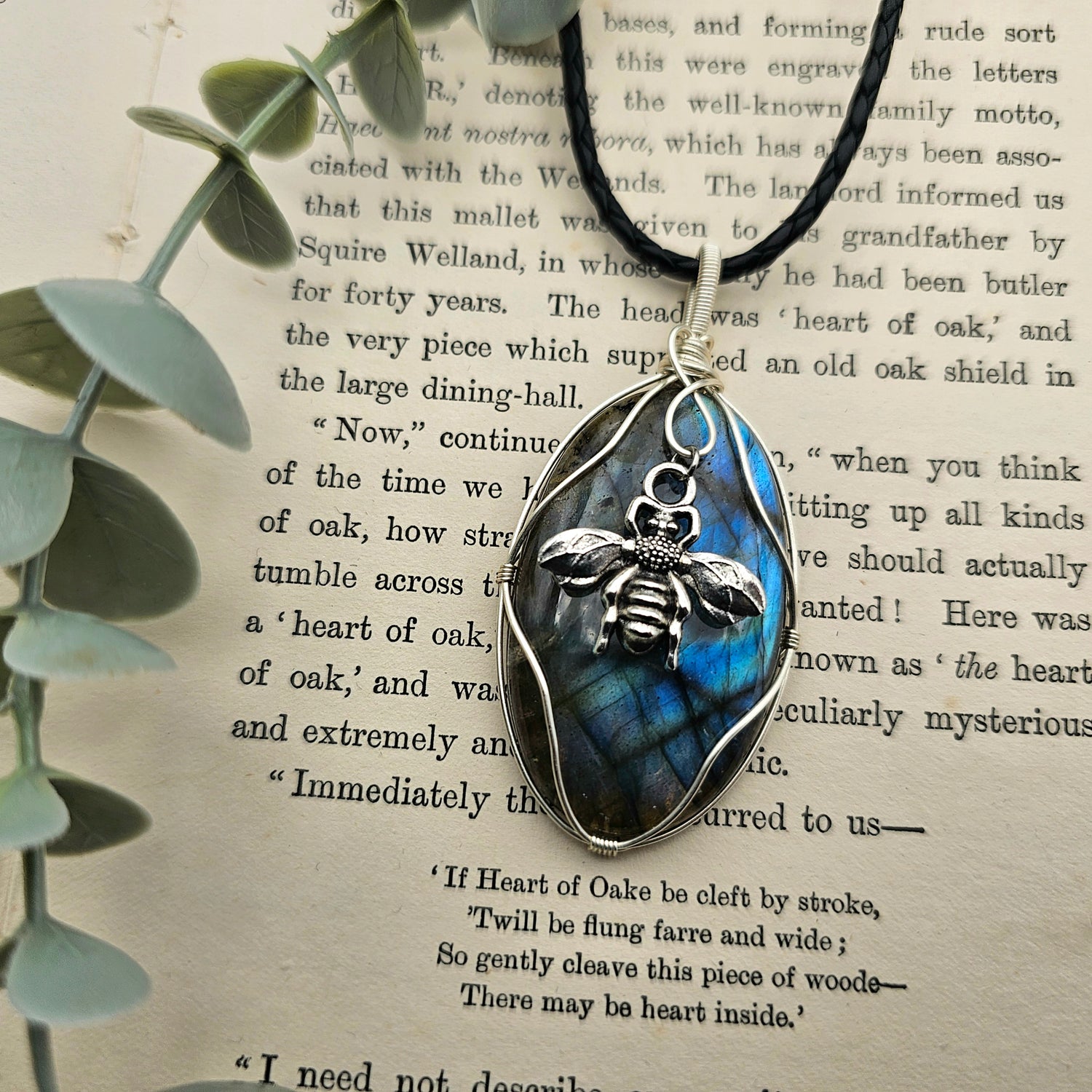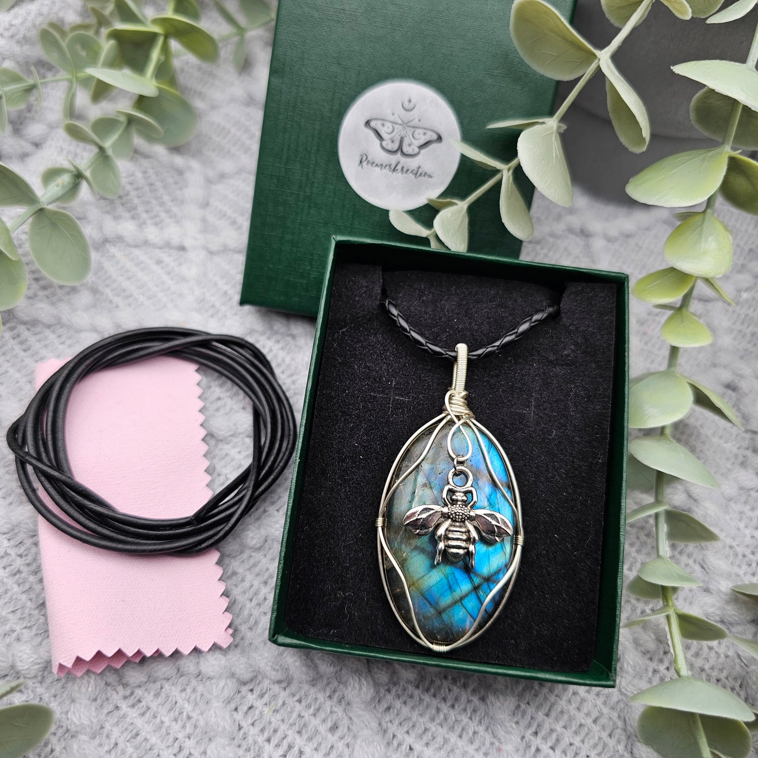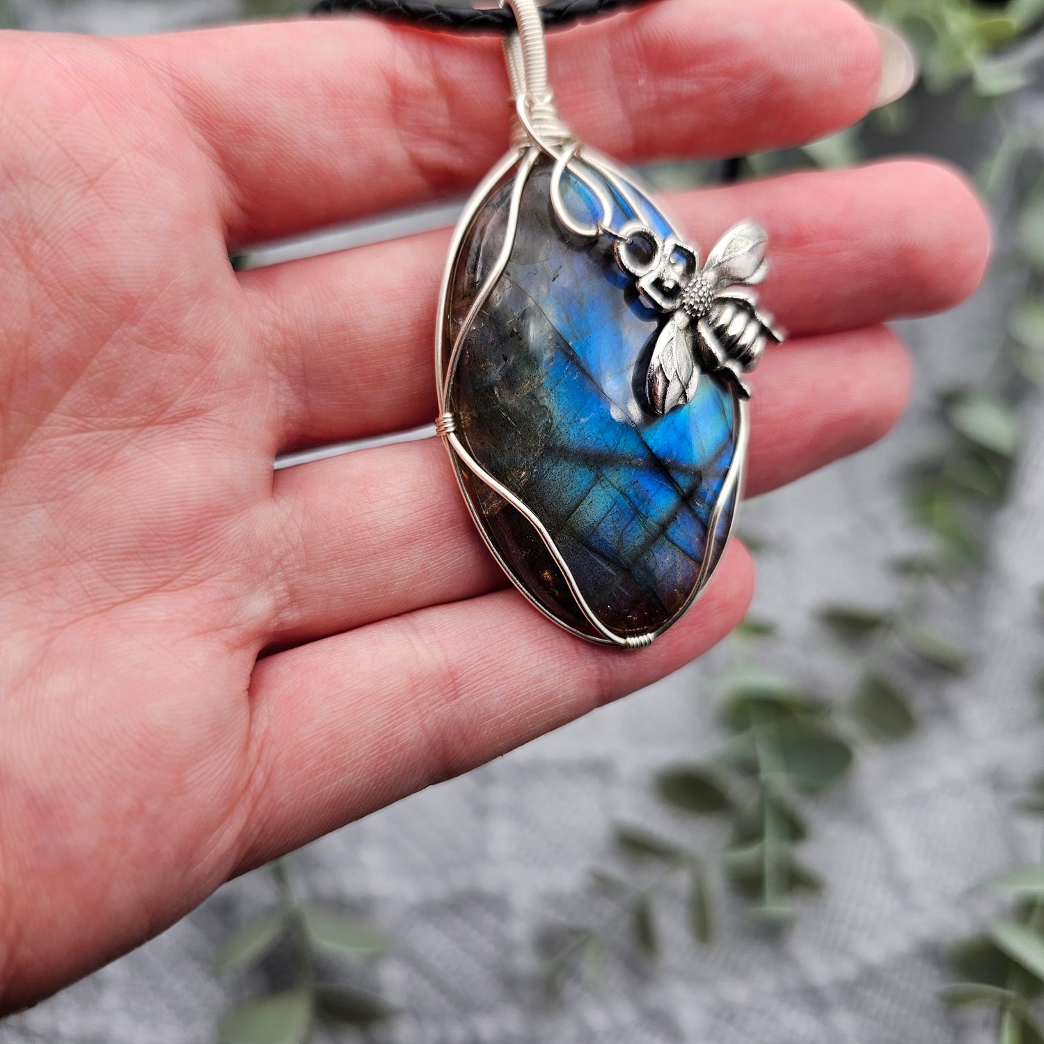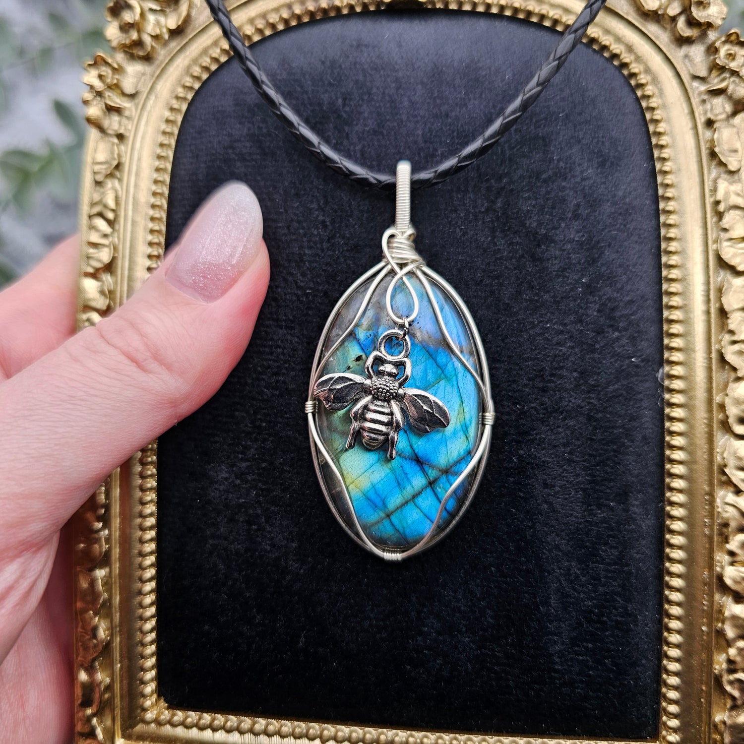 Labradorit & Biene Anhänger | Schmuckdraht | Edelstein Halskette