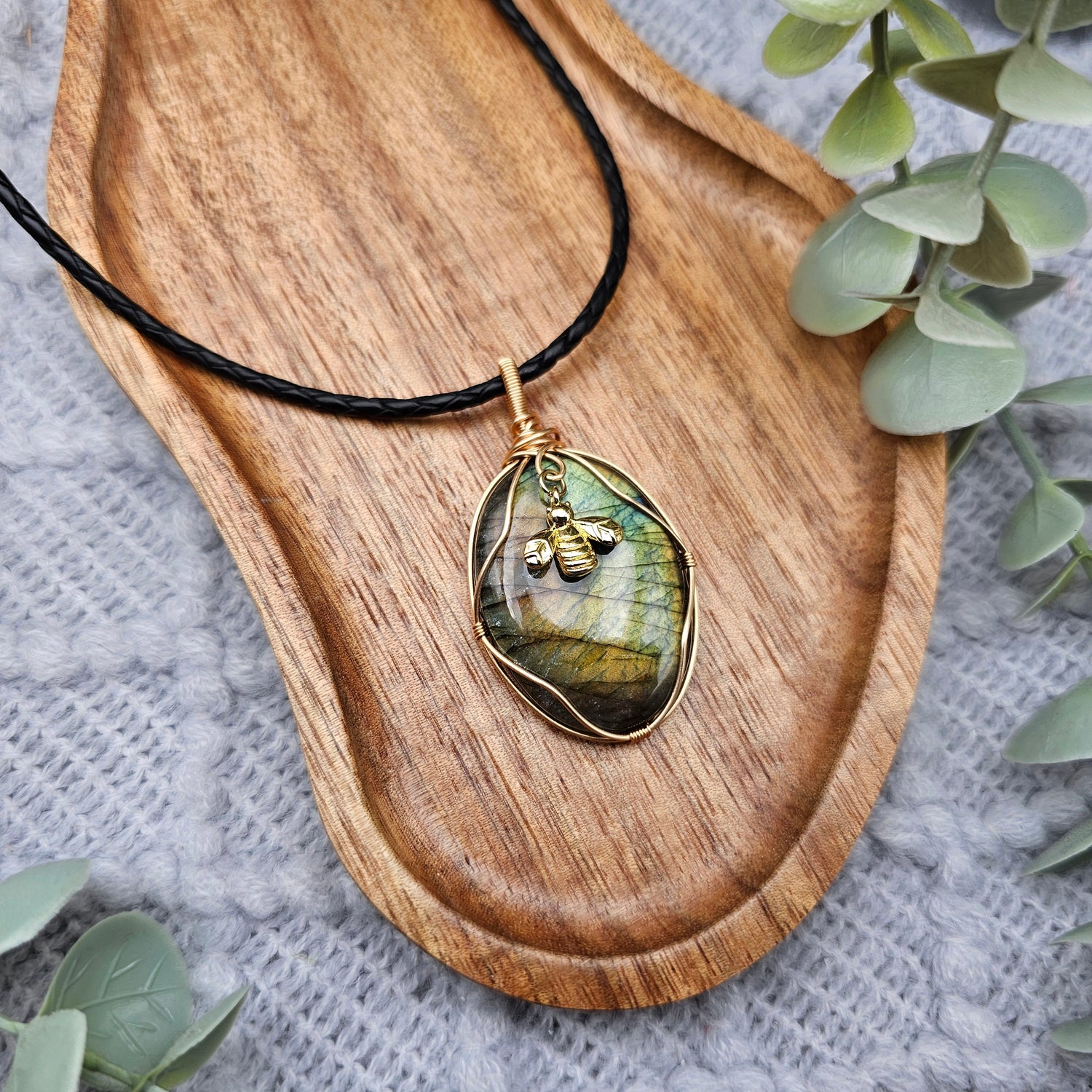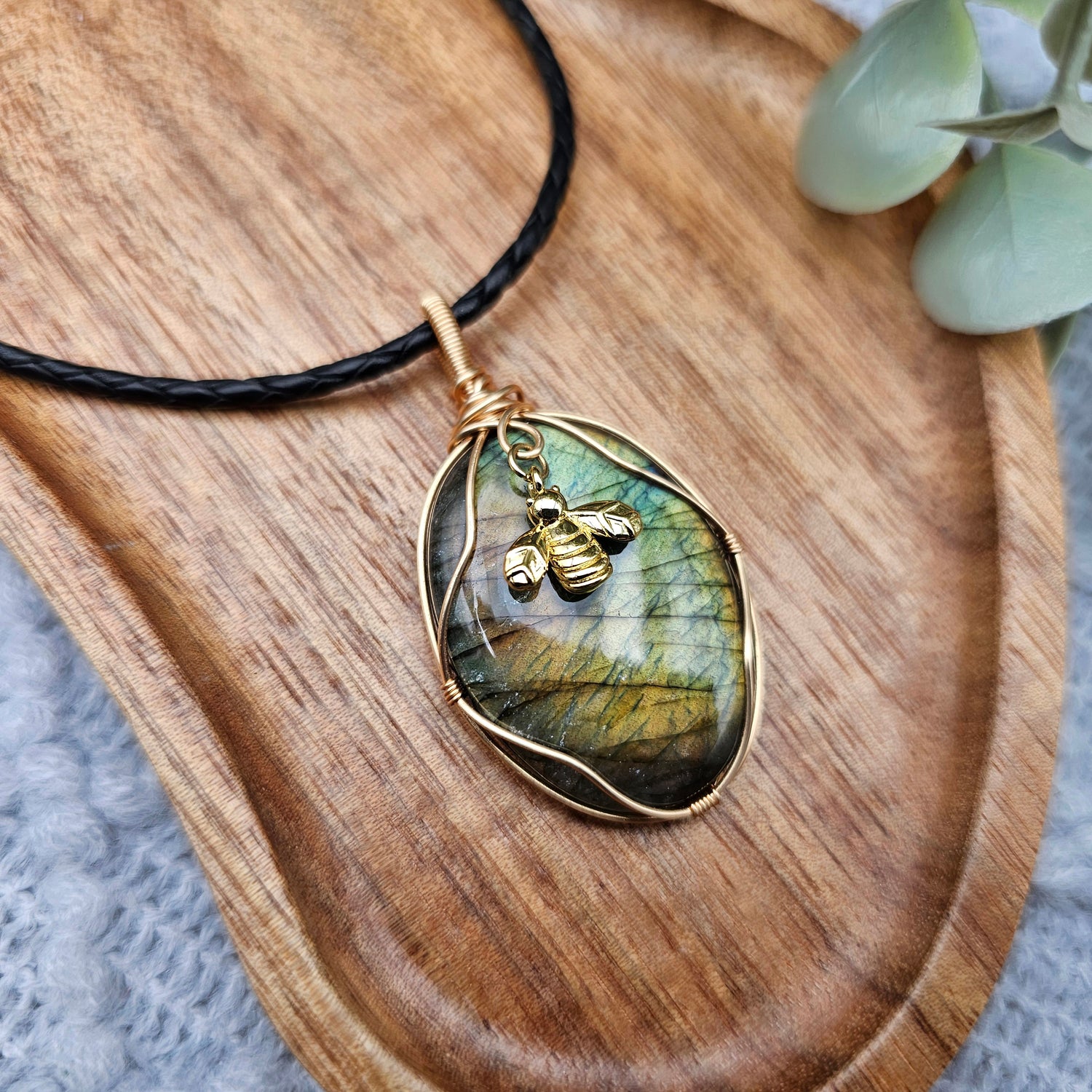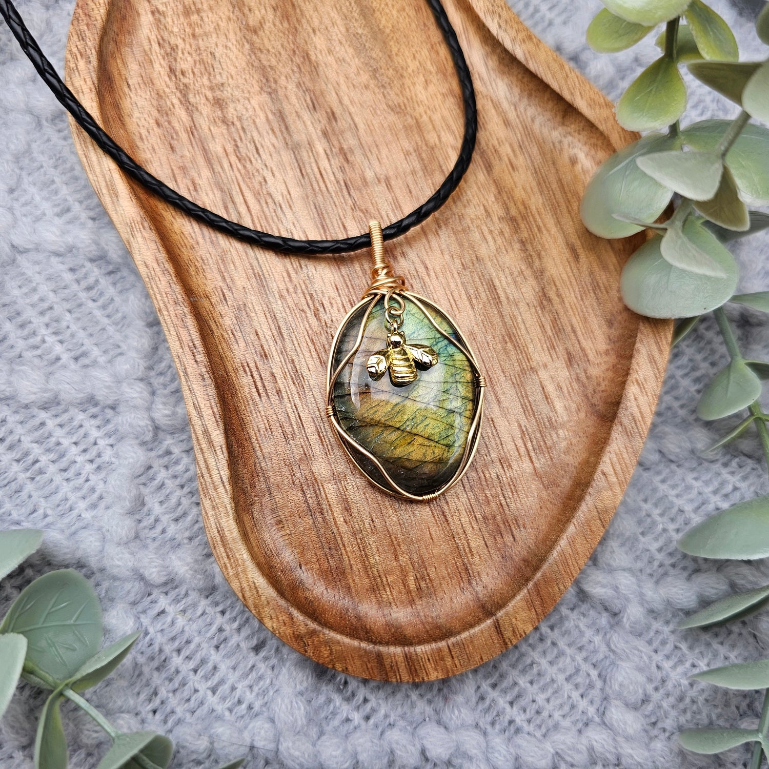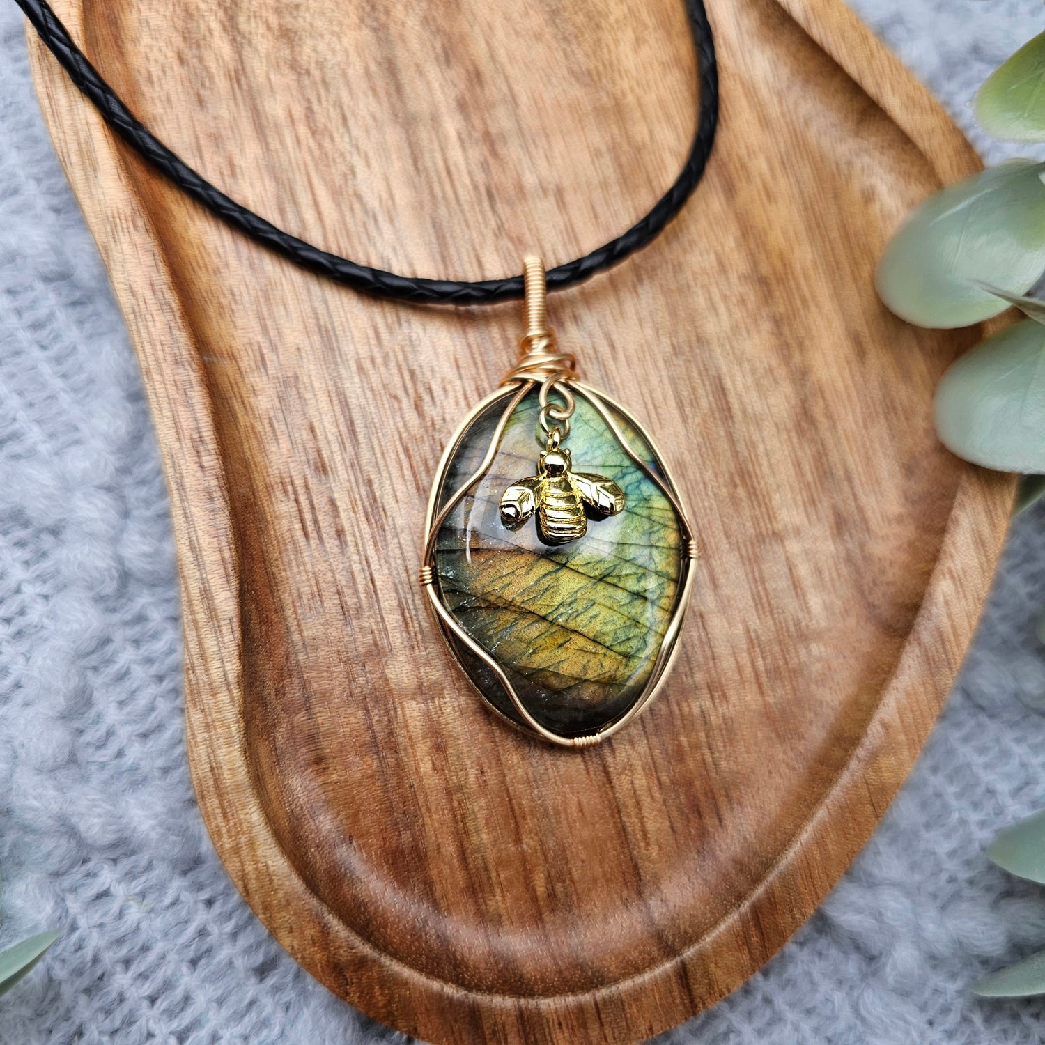 Labradorit & Biene Anhänger | Schmuckdraht | Edelstein Halskette