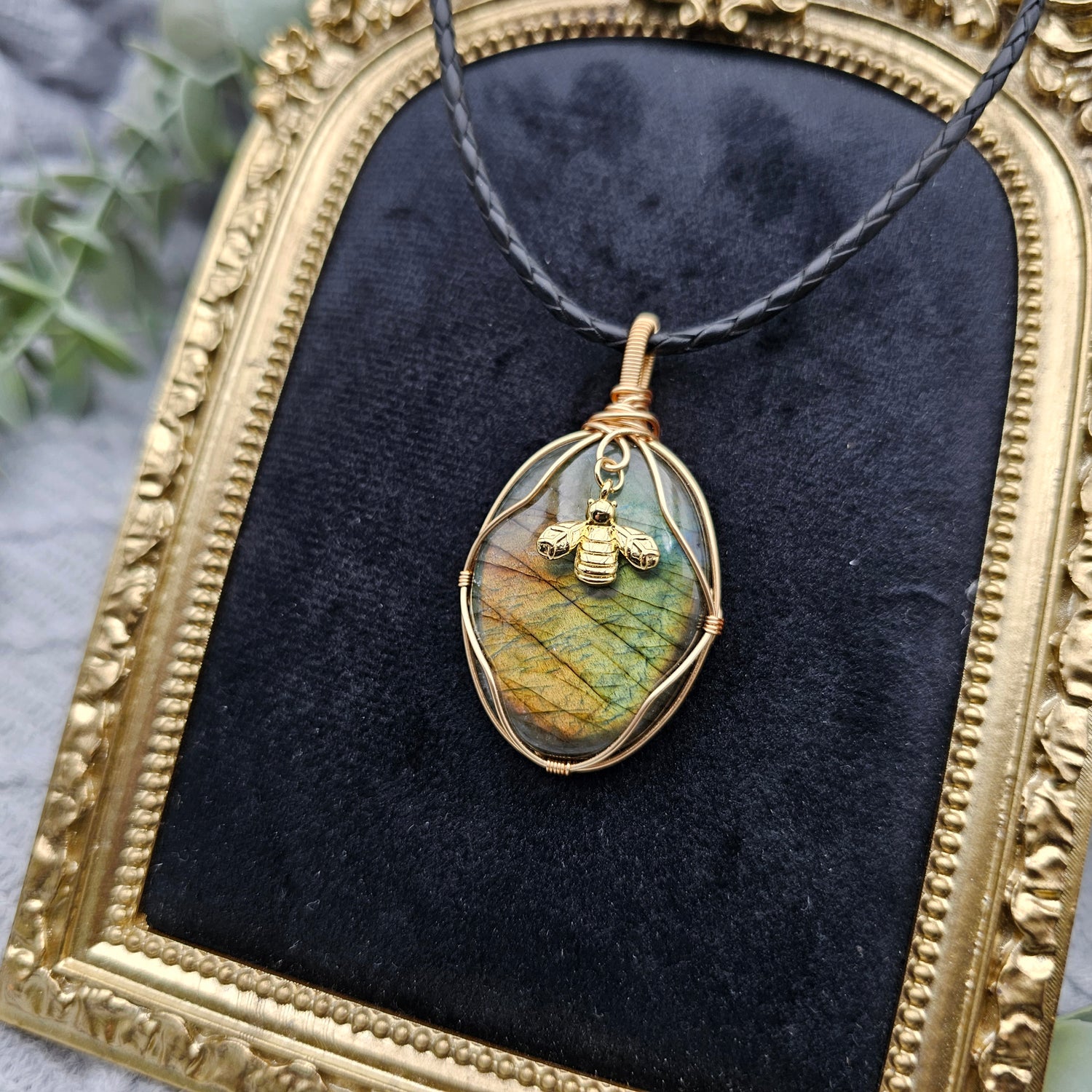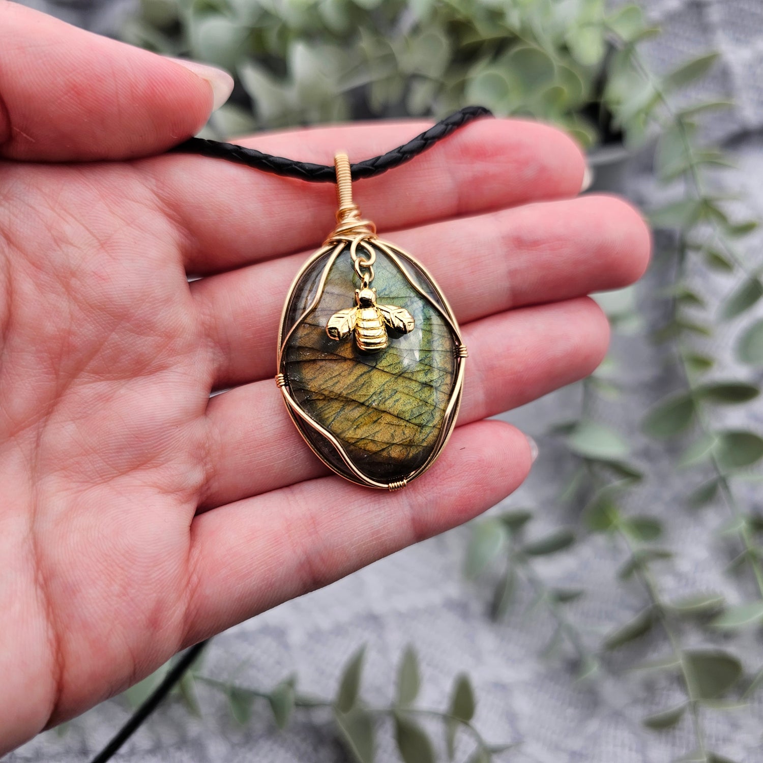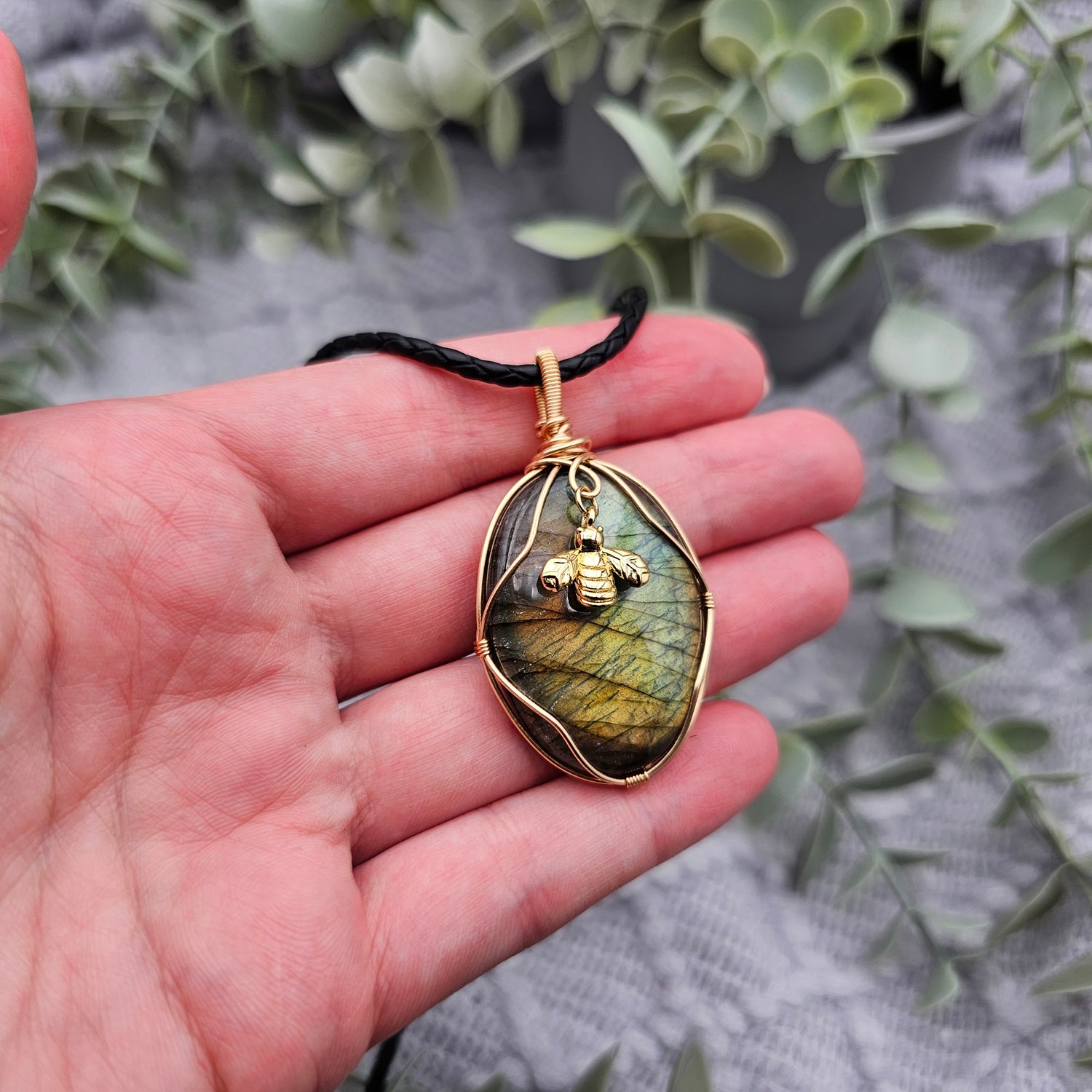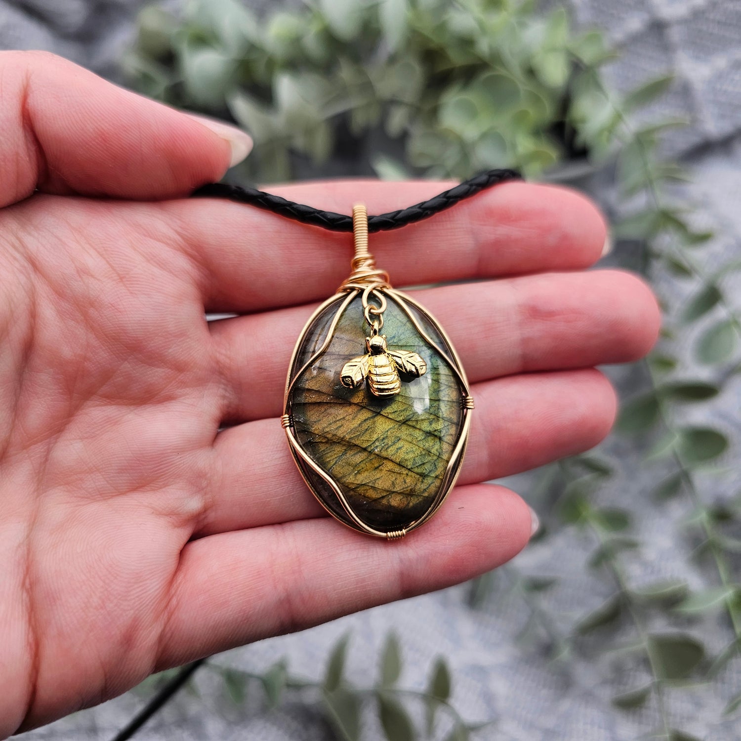 Labradorit & Biene Anhänger | Schmuckdraht | Edelstein Halskette