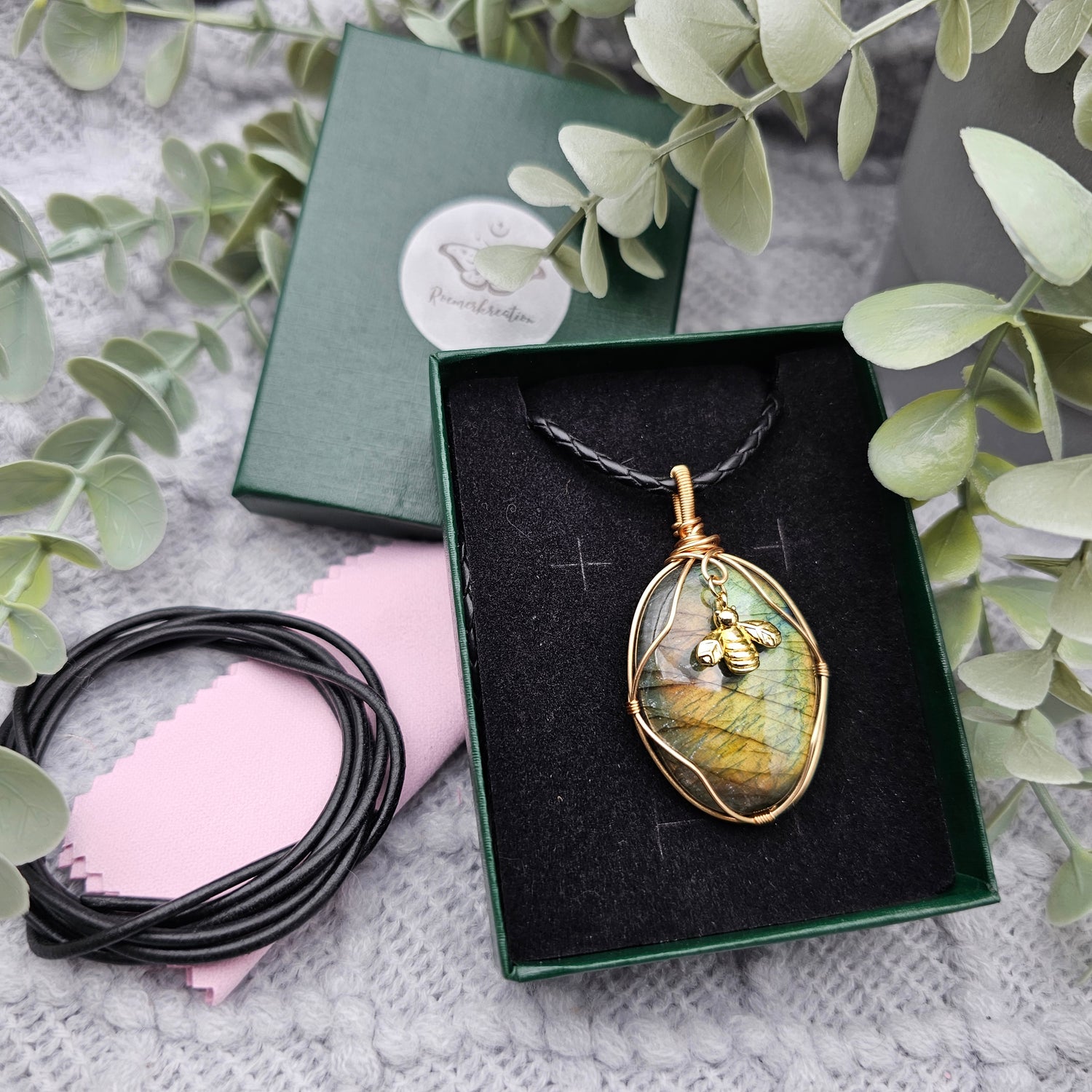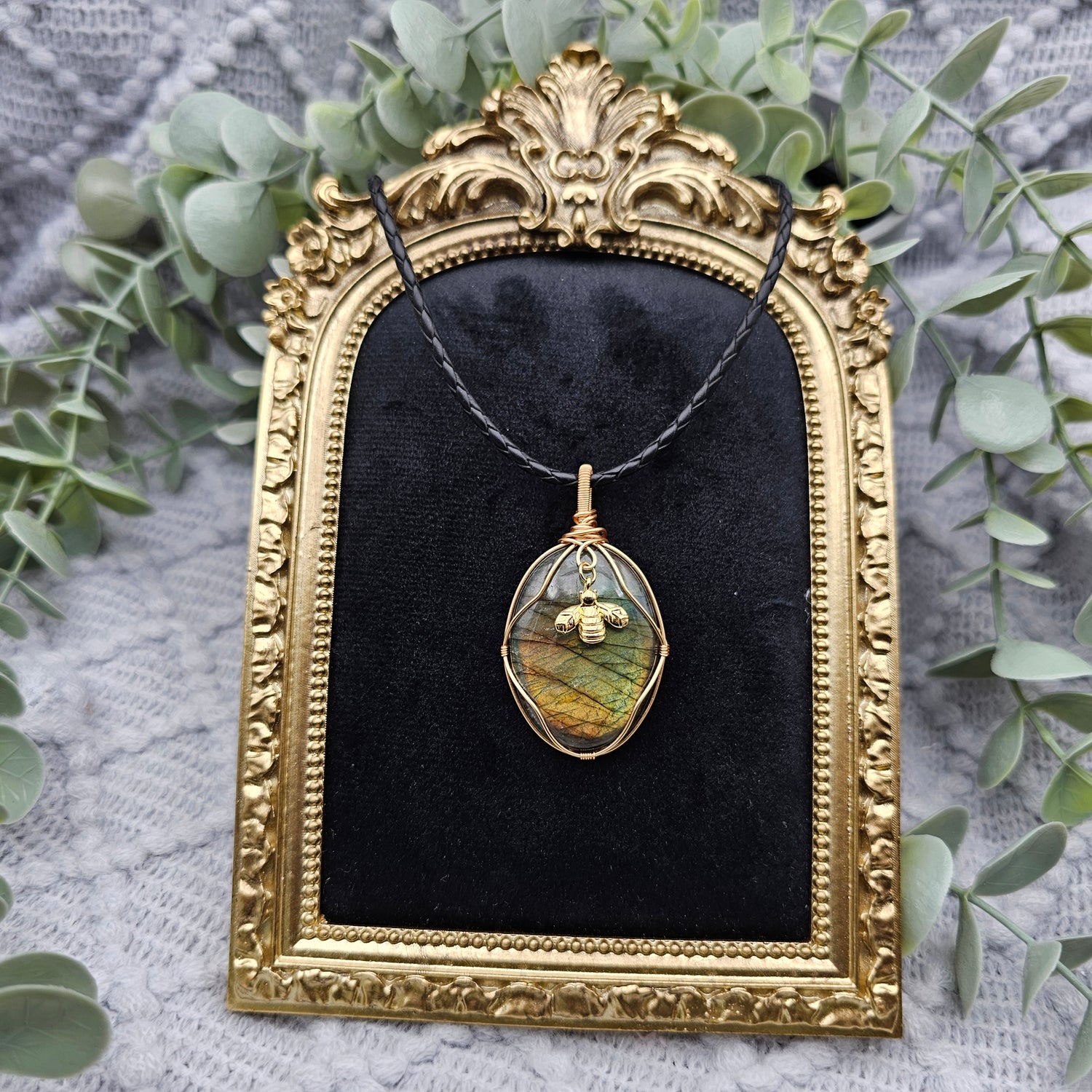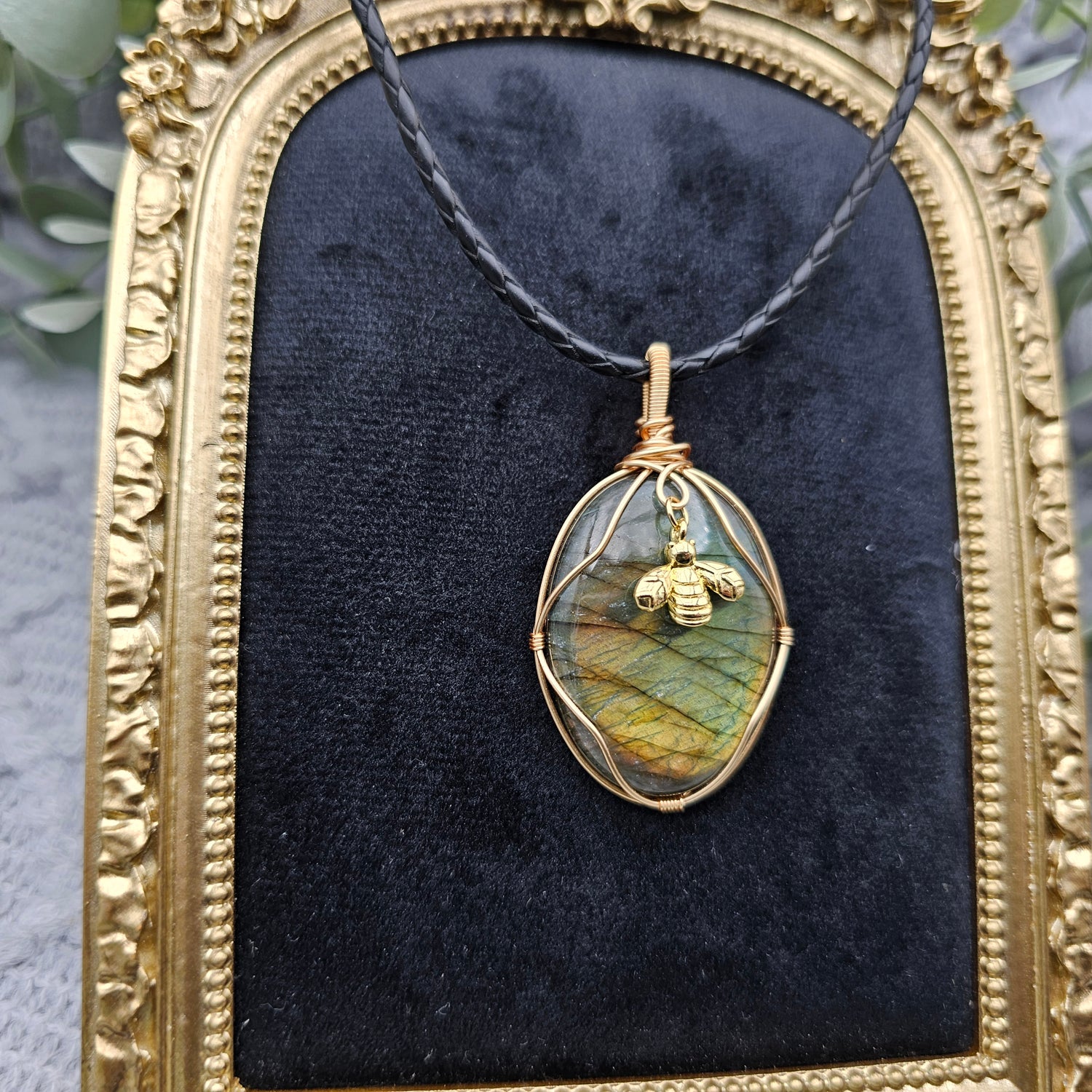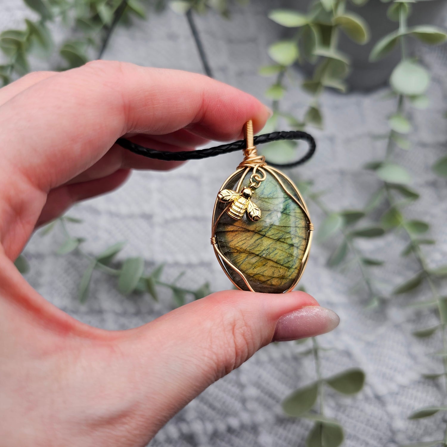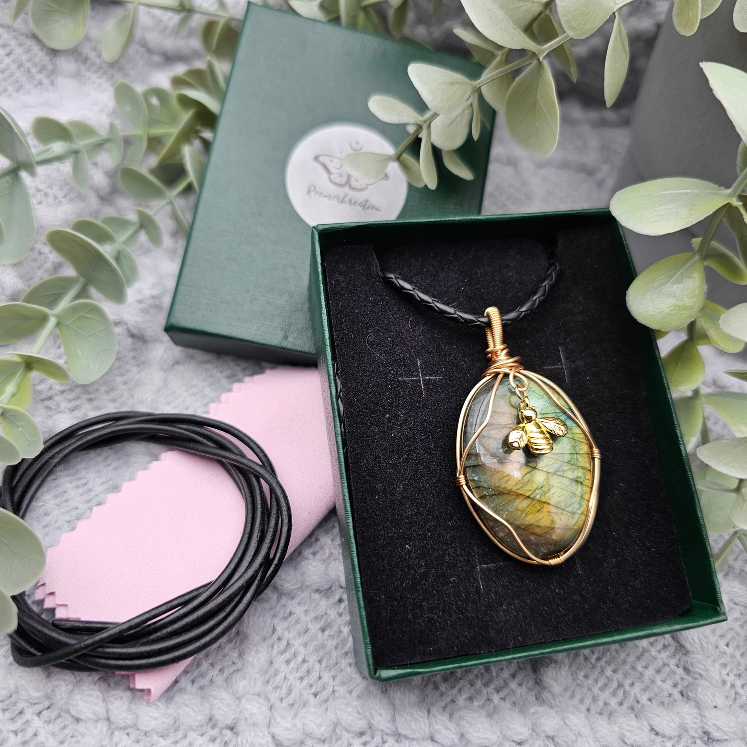 Labradorit & Biene Anhänger | Schmuckdraht | Edelstein Halskette