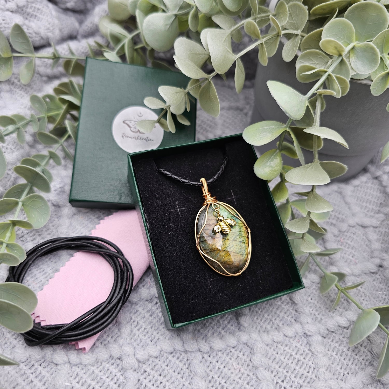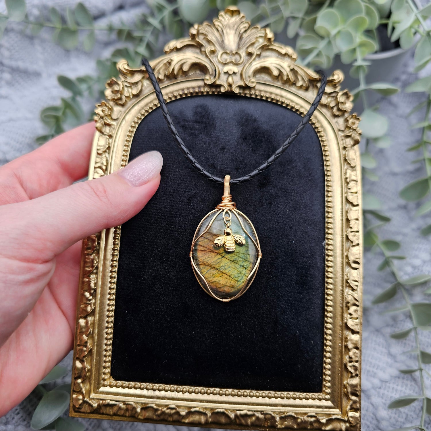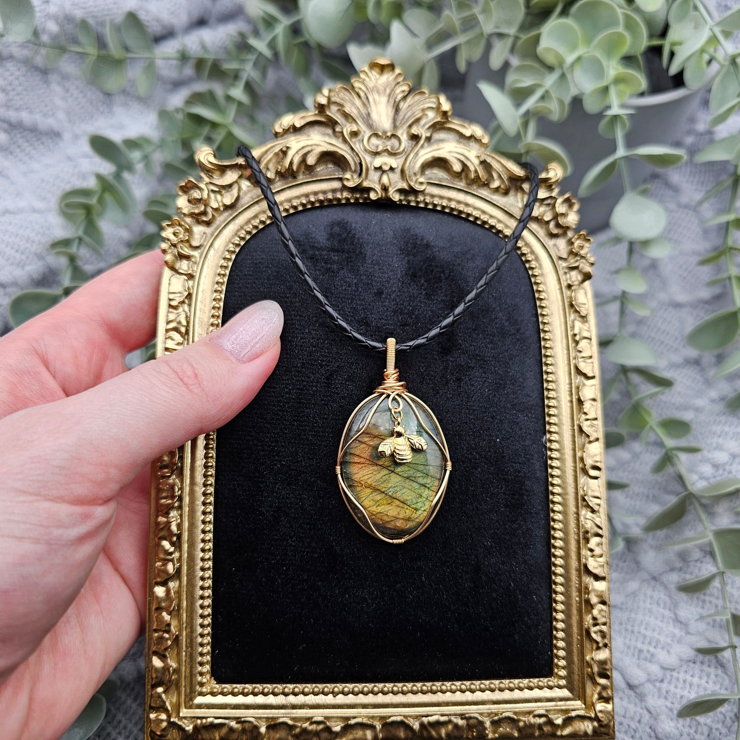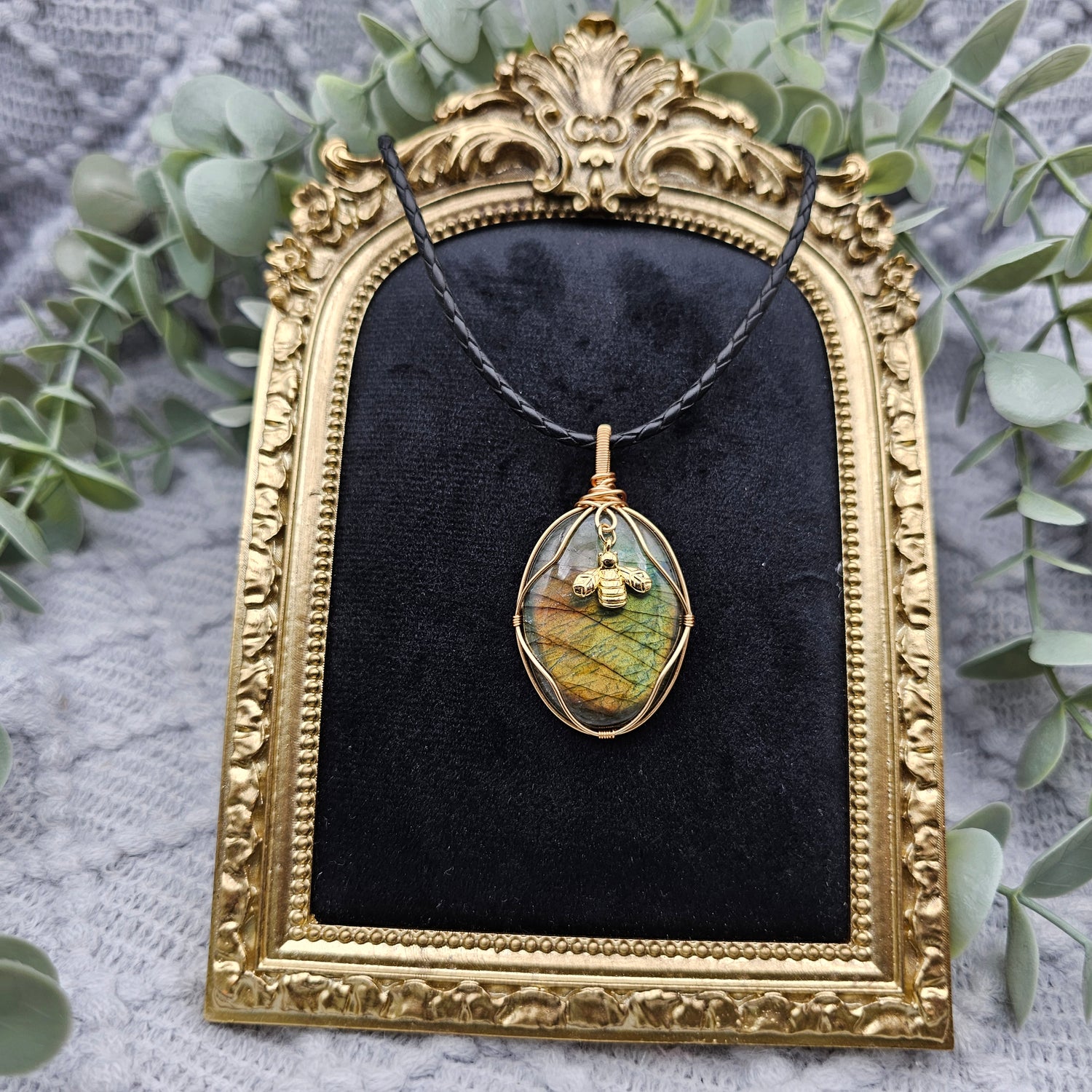 Labradorit & Biene Anhänger | Schmuckdraht | Edelstein Halskette
