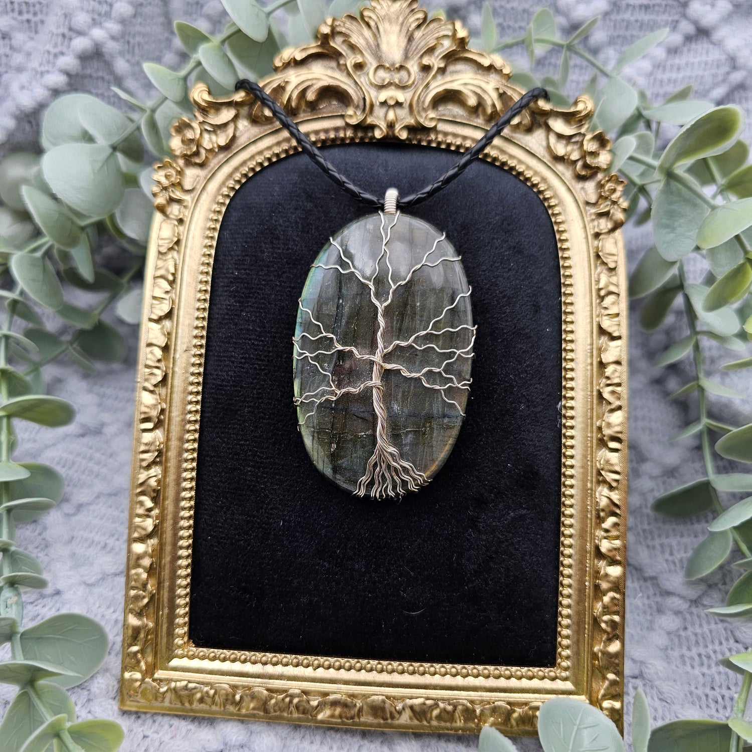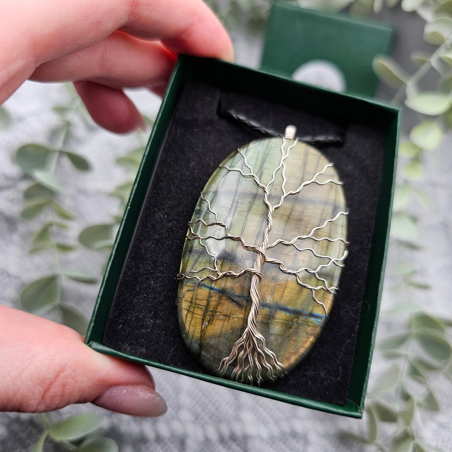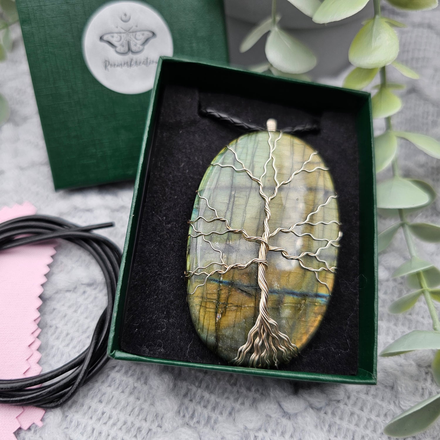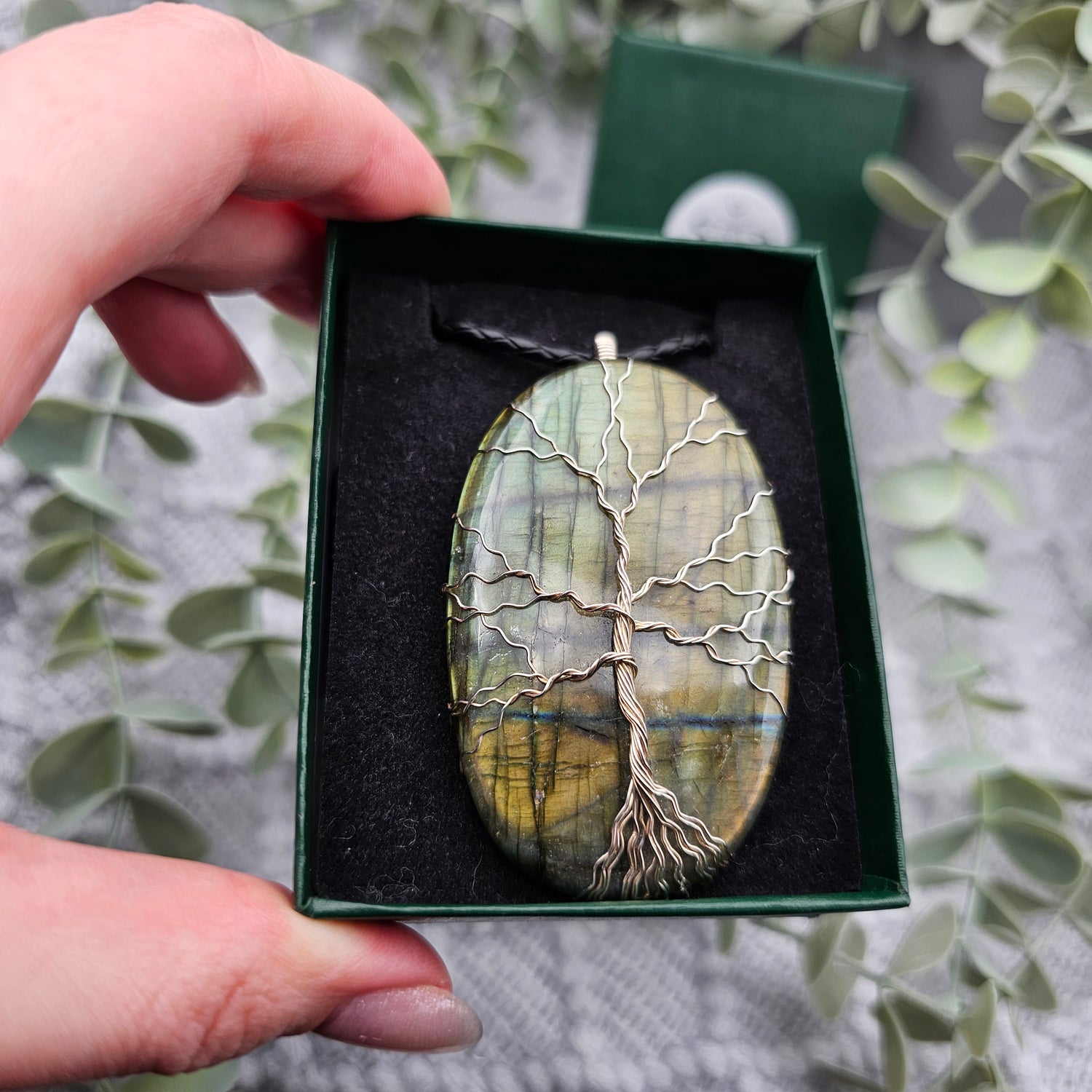 Labradorit Lebensbaum Anhänger | 925er Silber | Edelstein Halskette