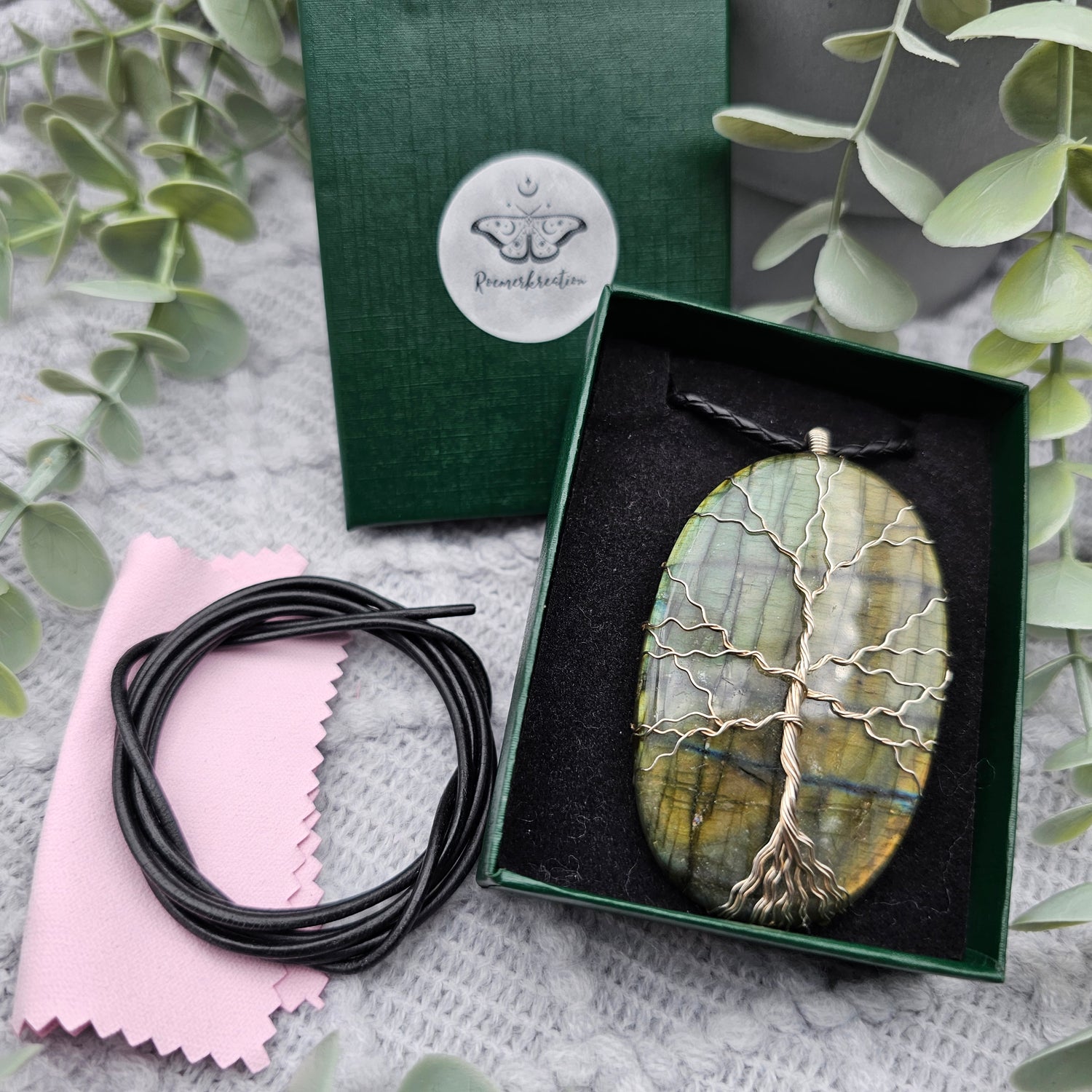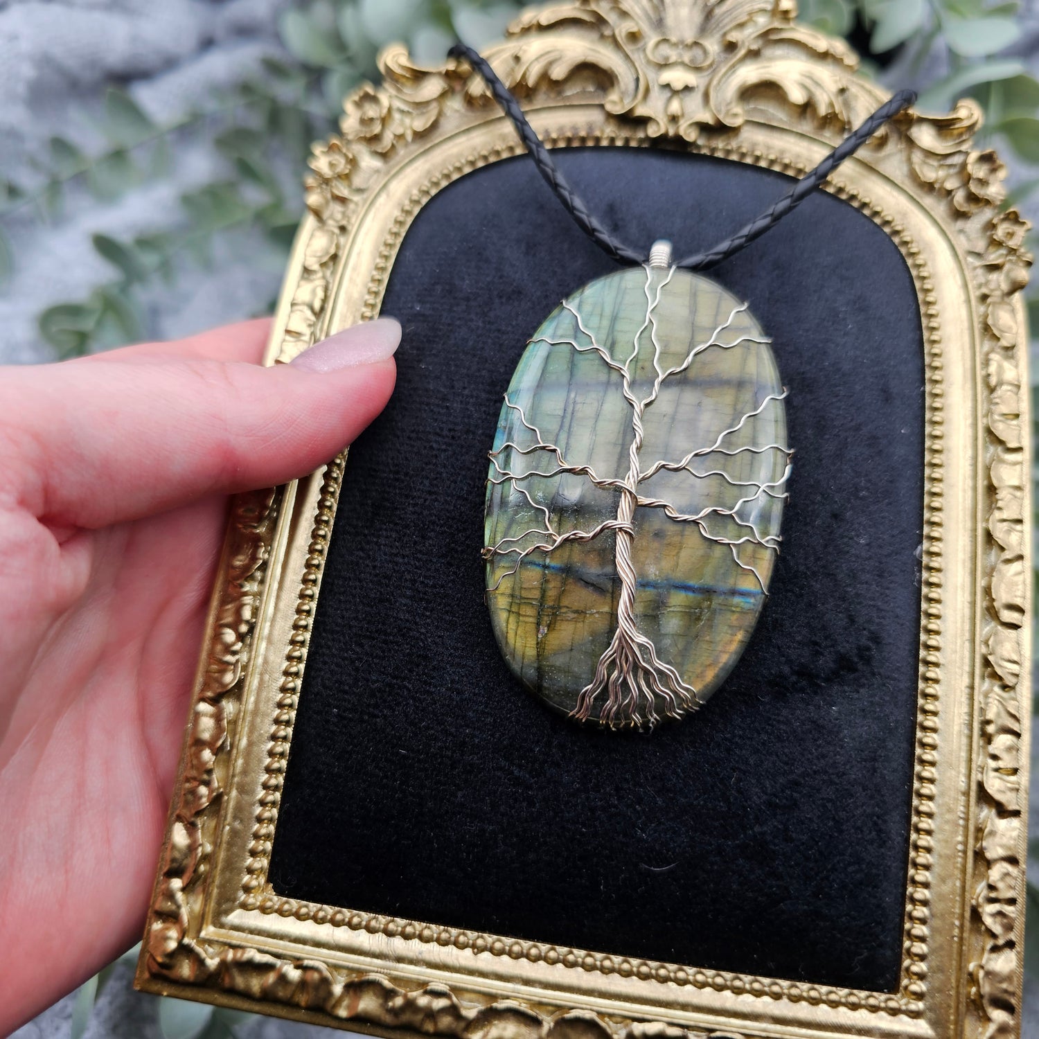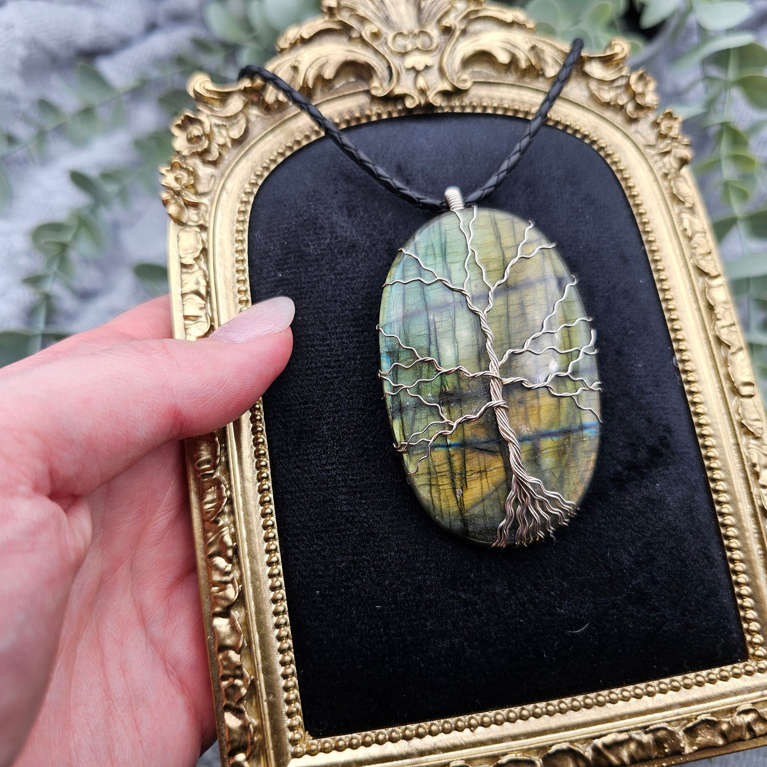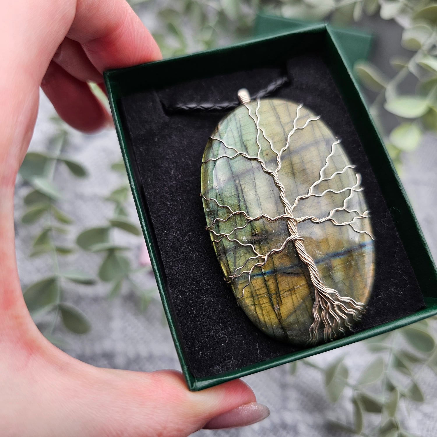 Labradorit Lebensbaum Anhänger | 925er Silber | Edelstein Halskette
