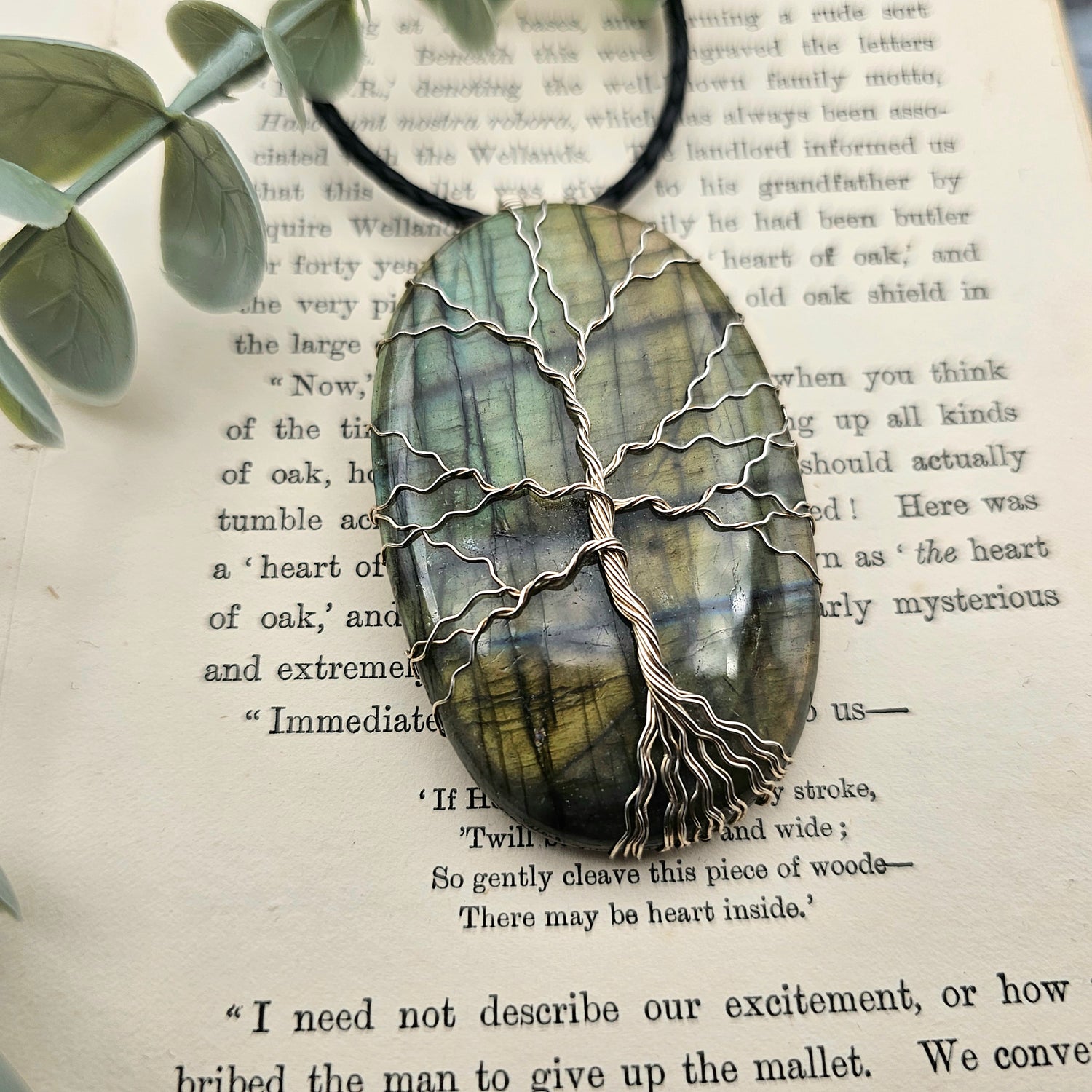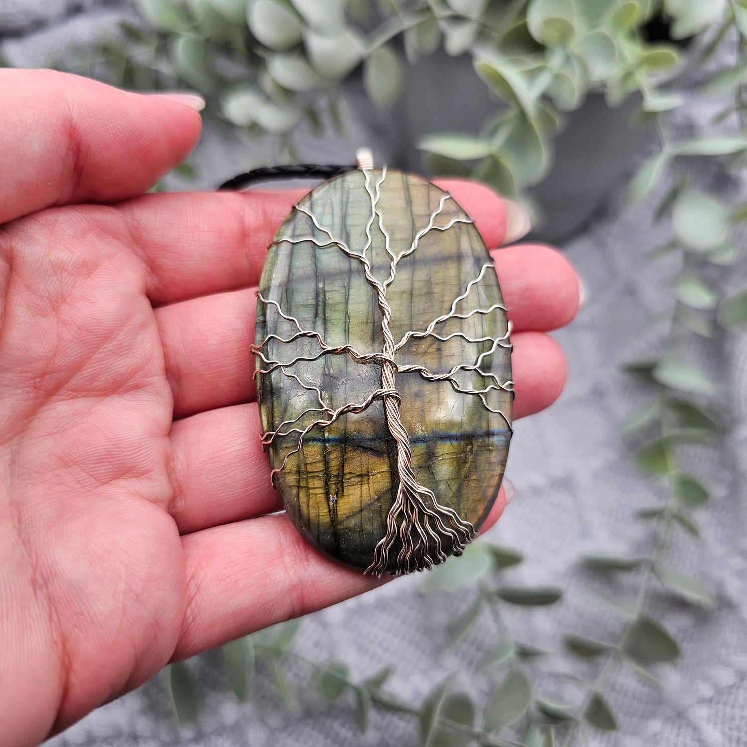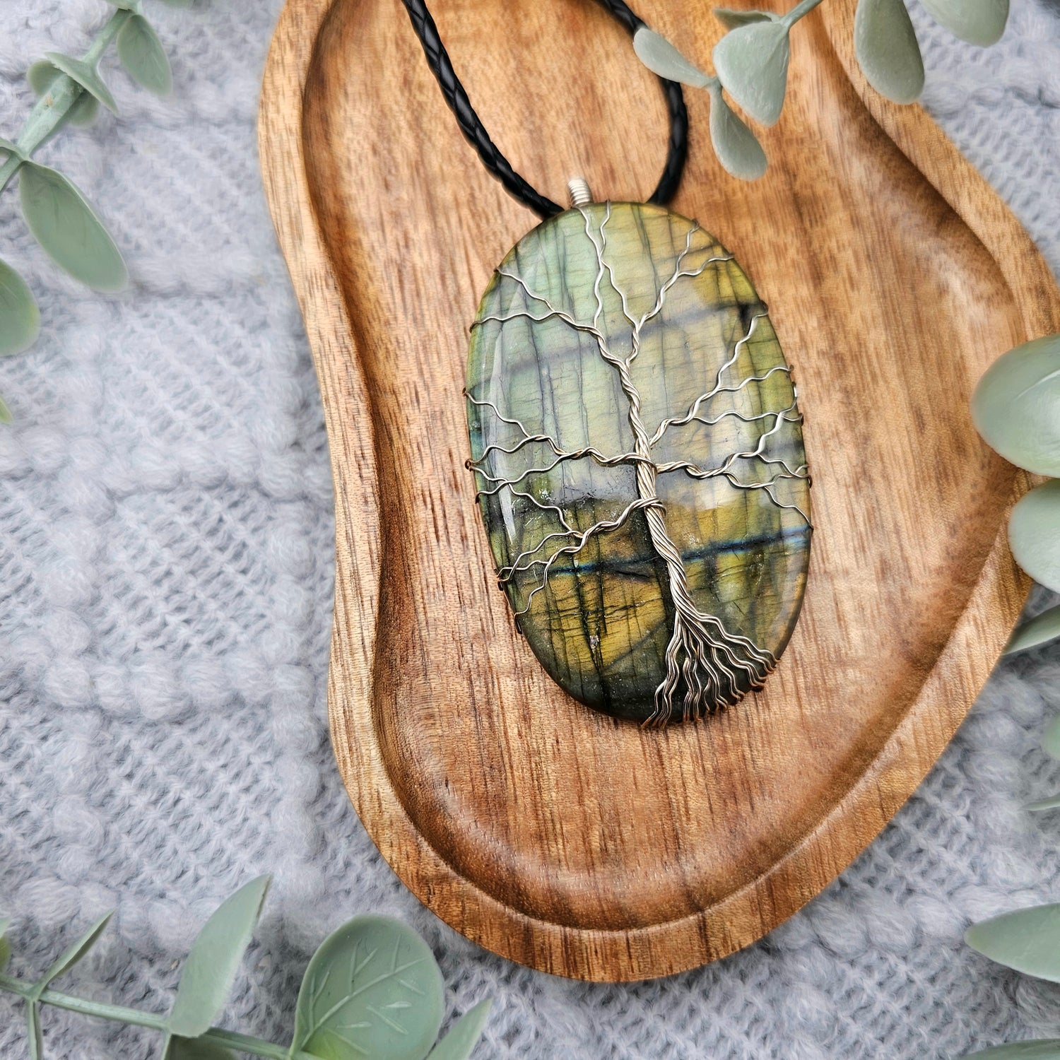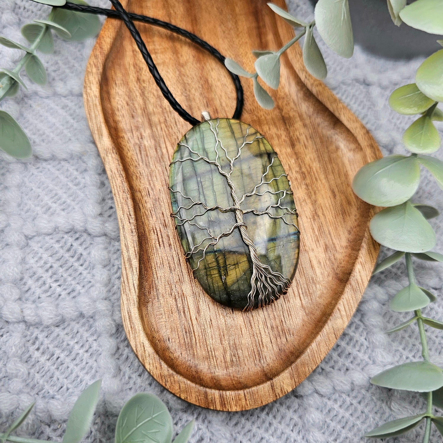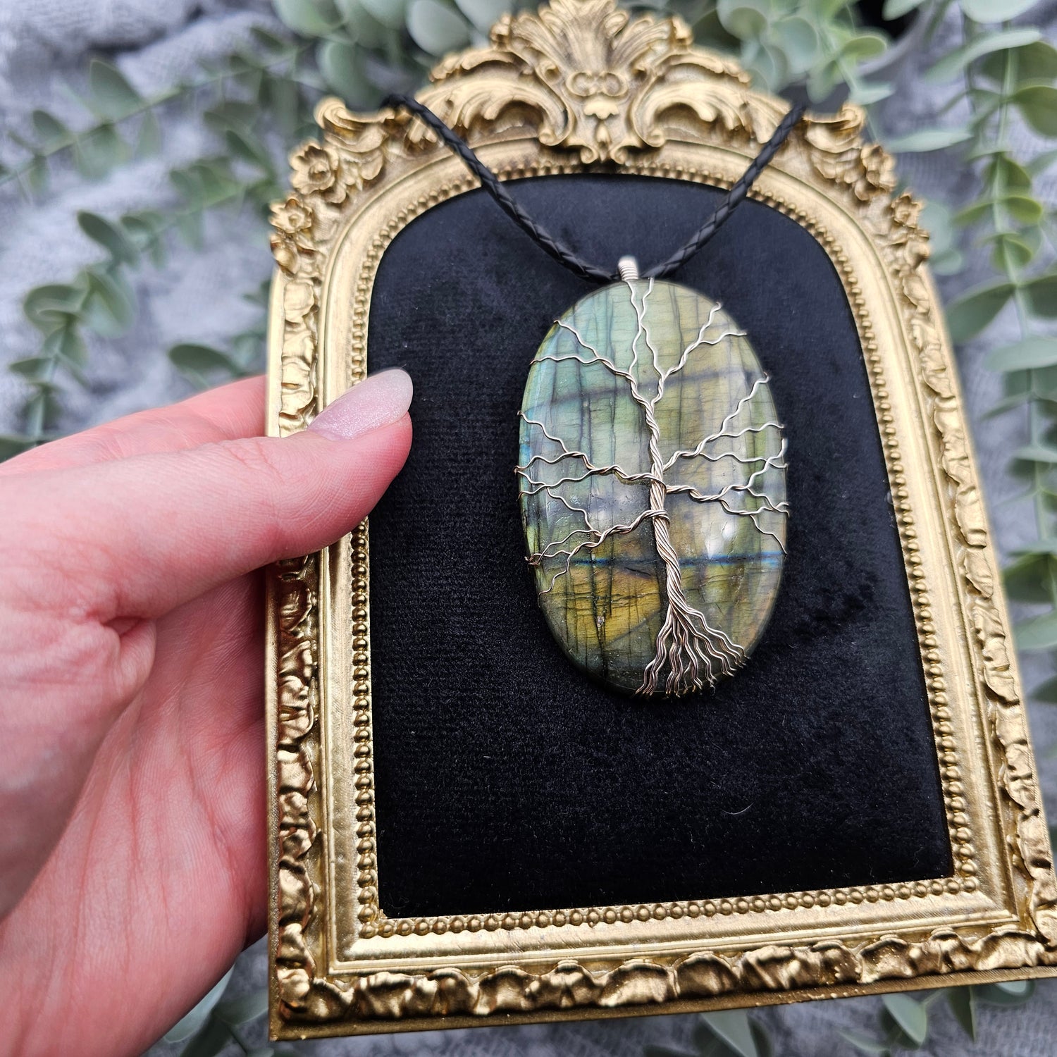 Labradorit Lebensbaum Anhänger | 925er Silber | Edelstein Halskette