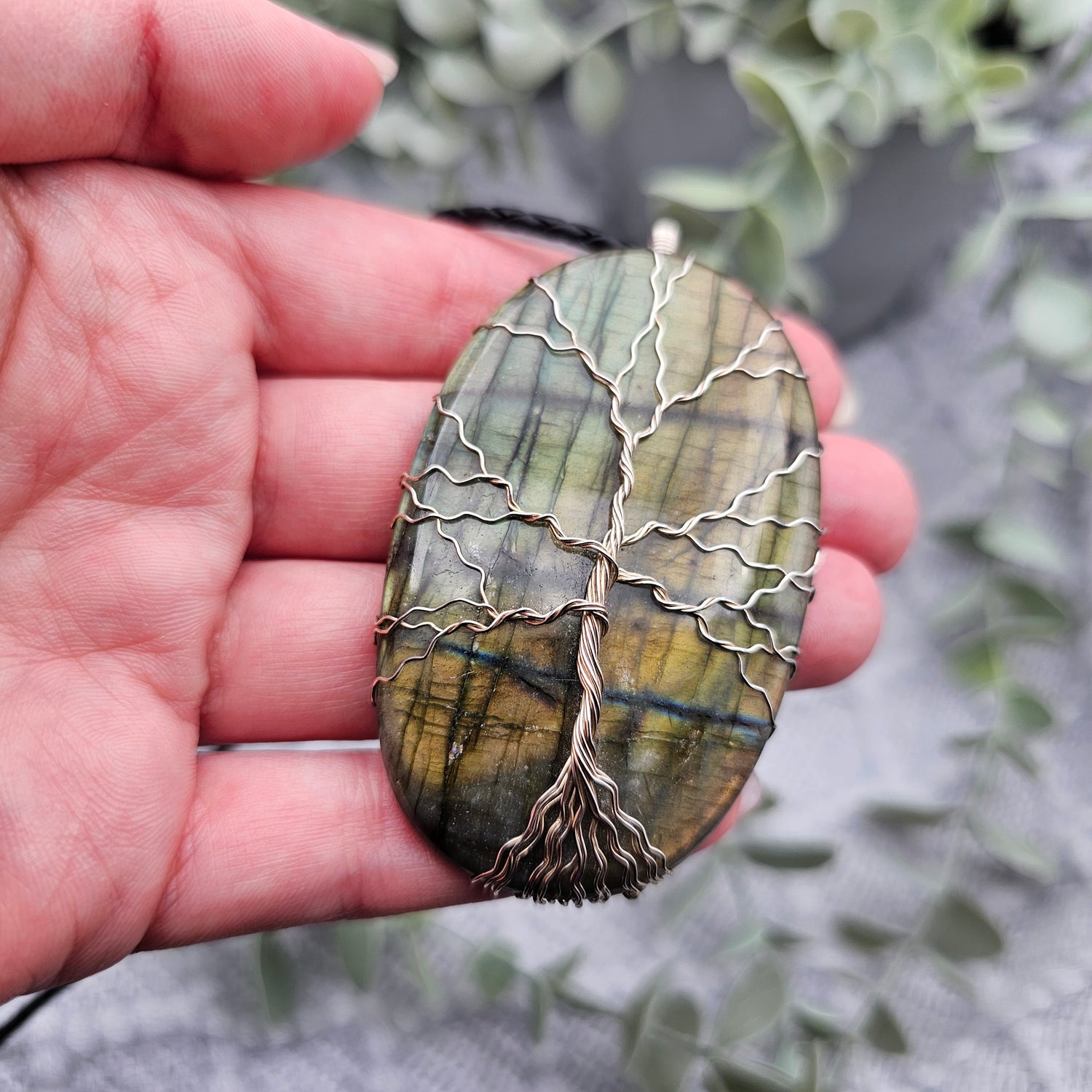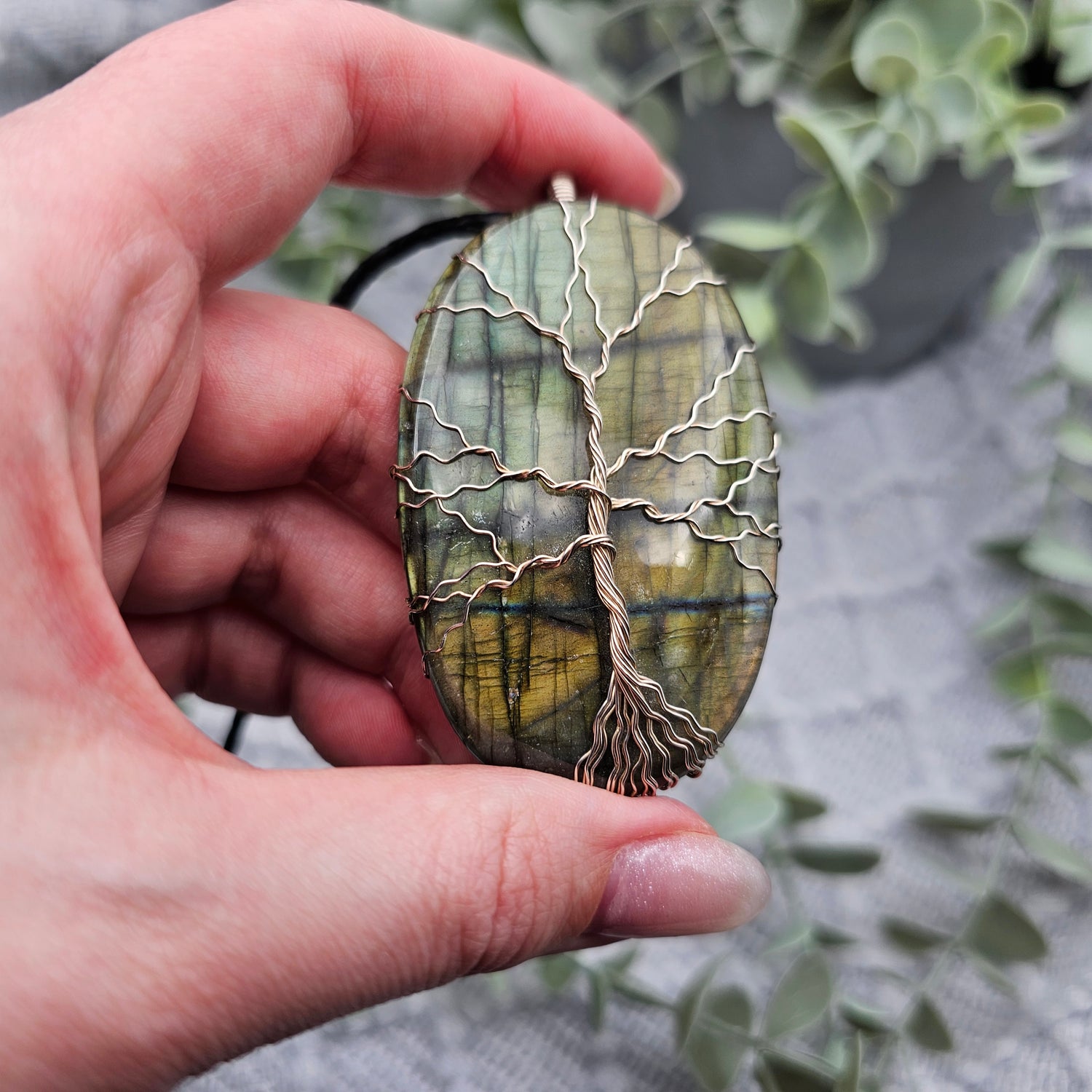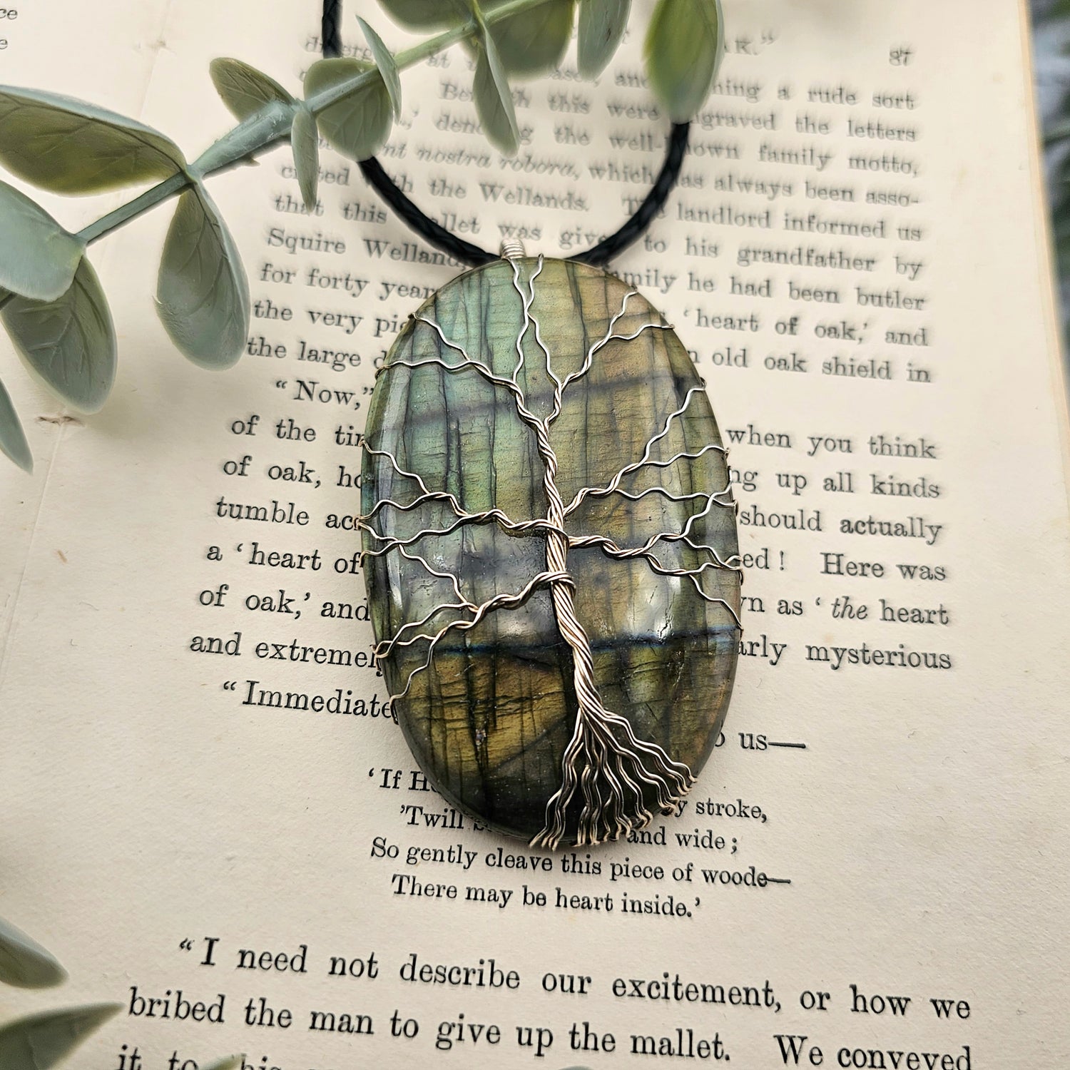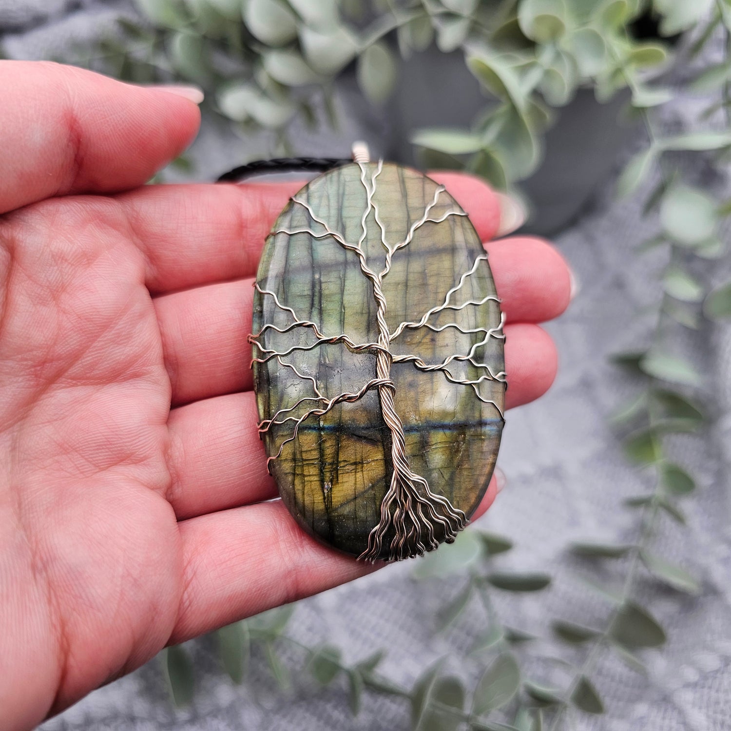 Labradorit Lebensbaum Anhänger | 925er Silber | Edelstein Halskette
