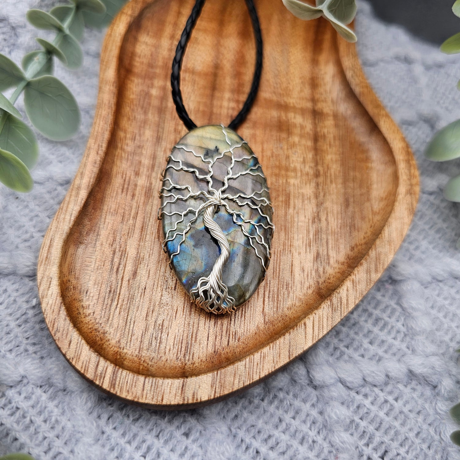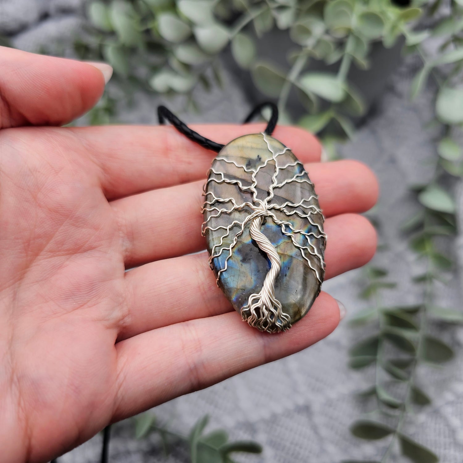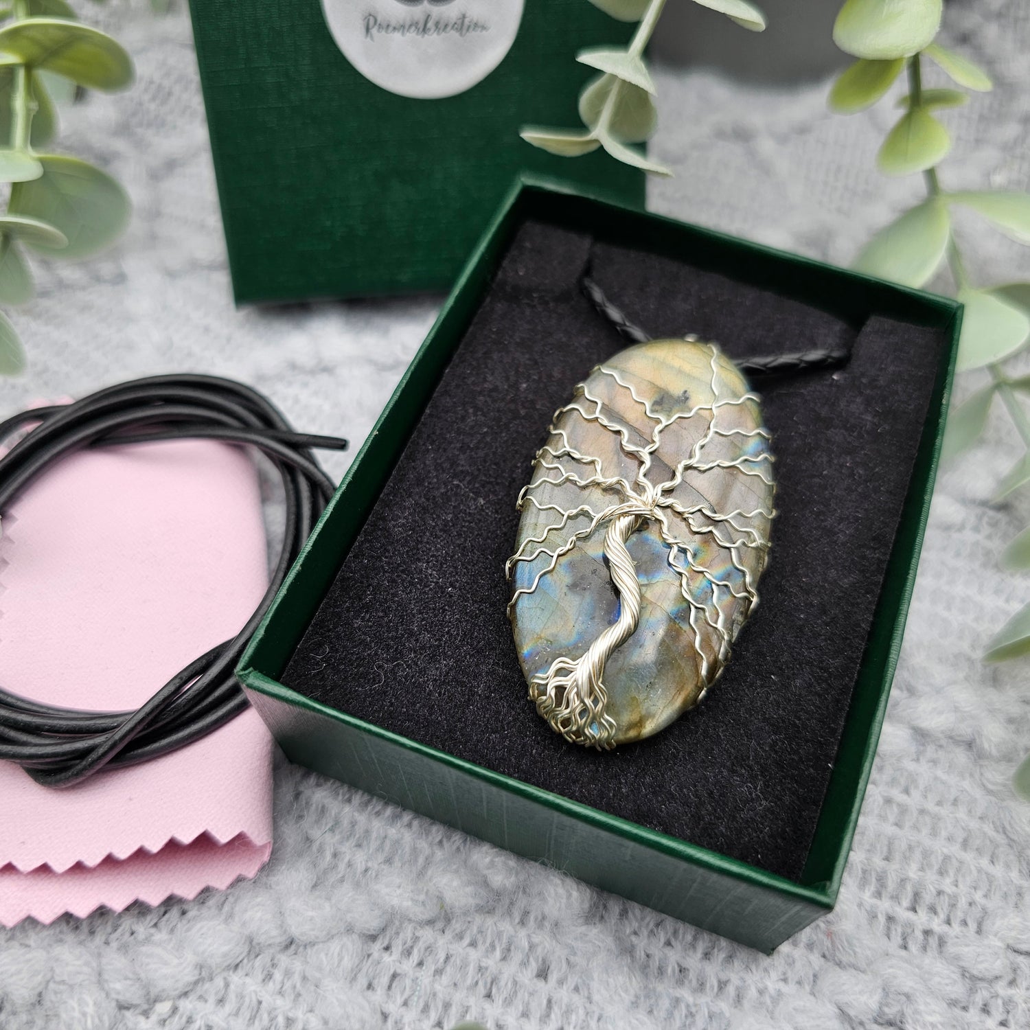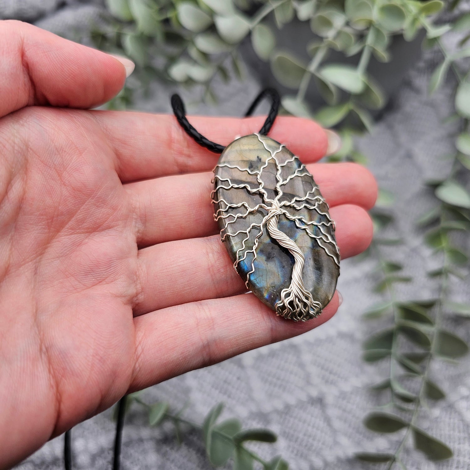 Labradorit Lebensbaum Anhänger | Schmuckdraht | Edelstein Halskette