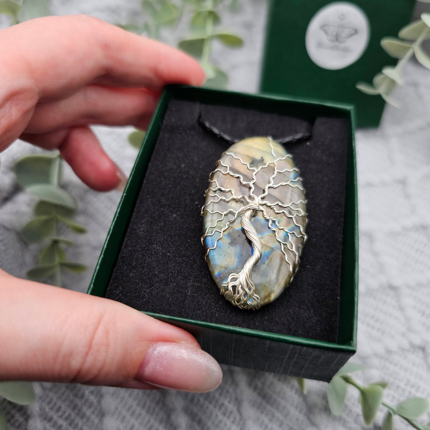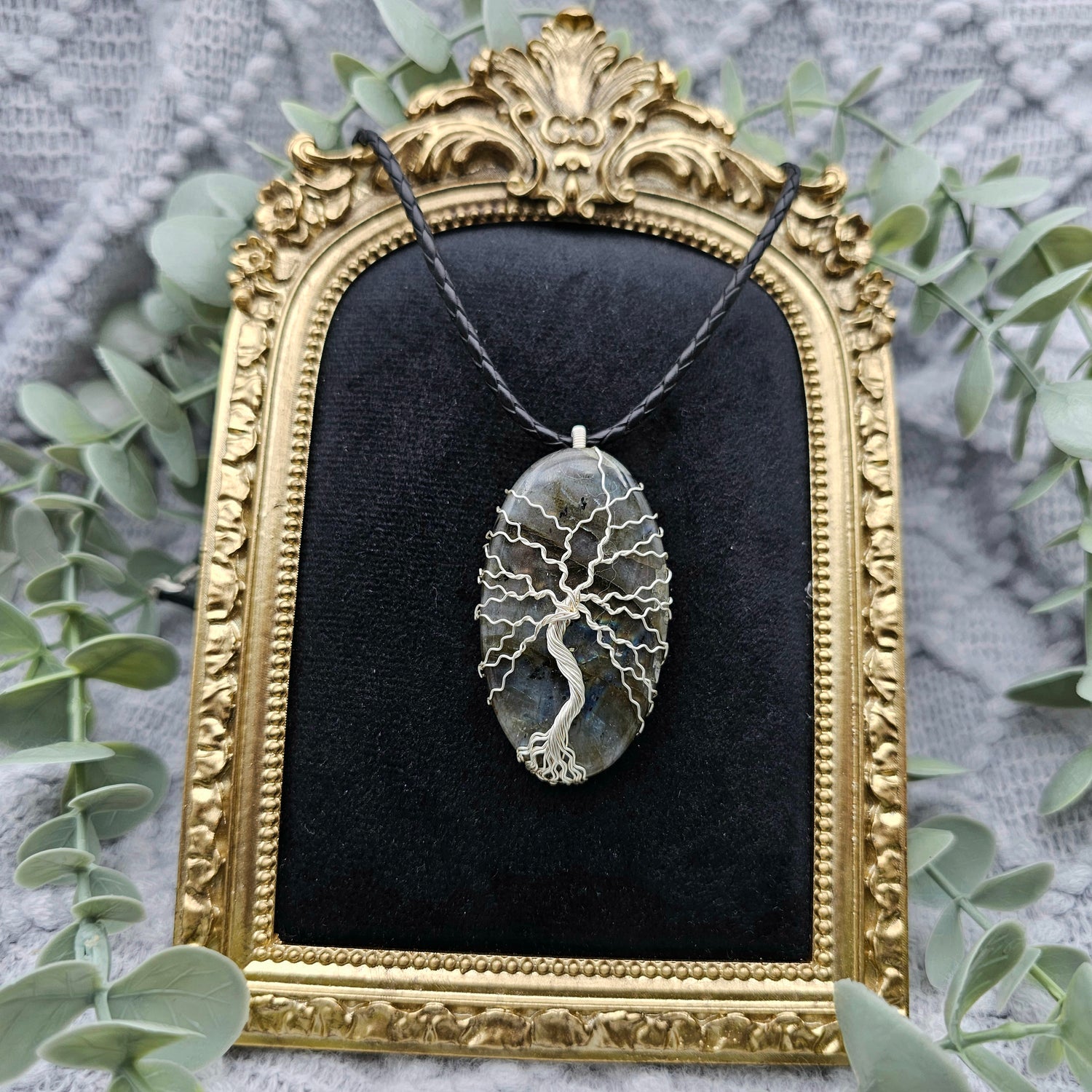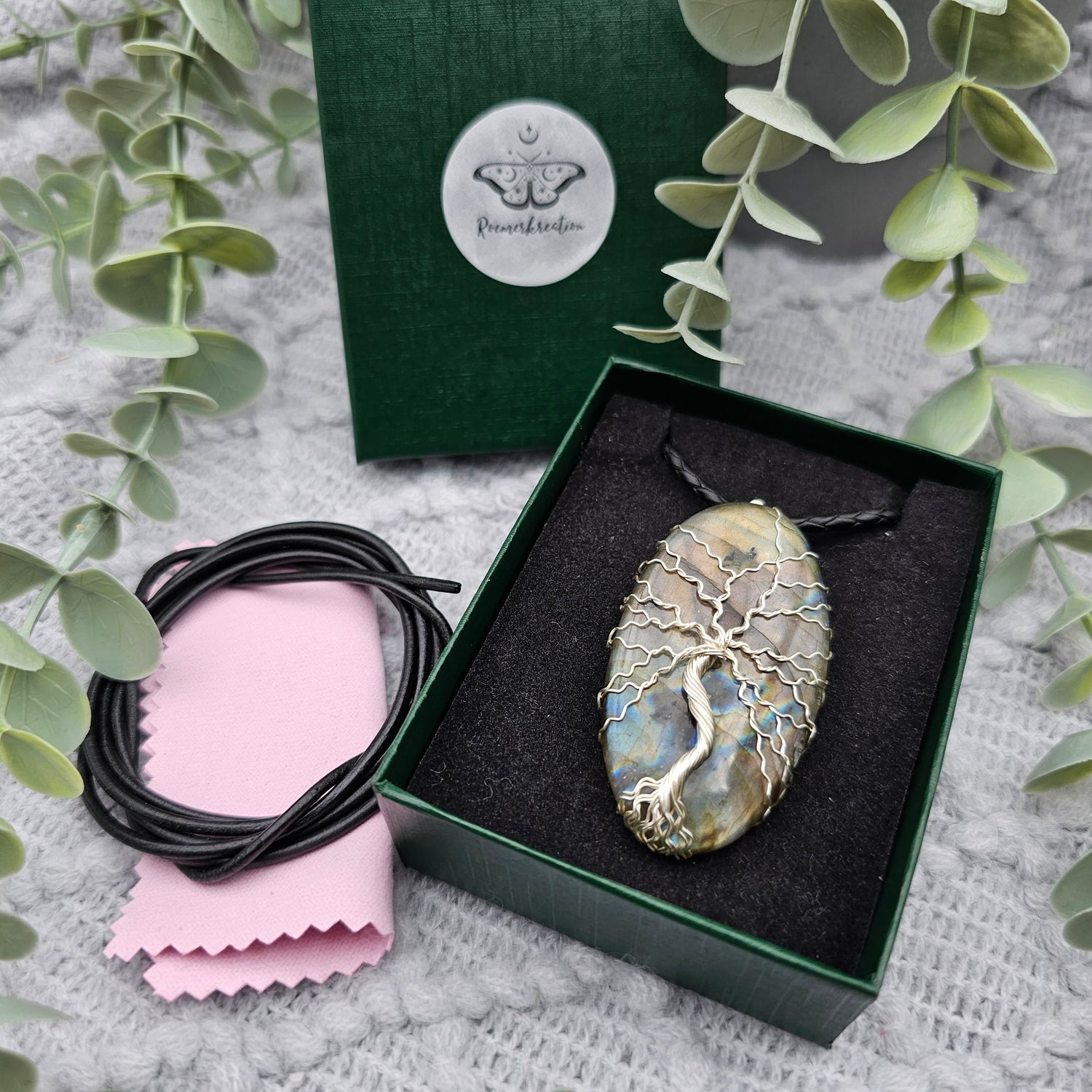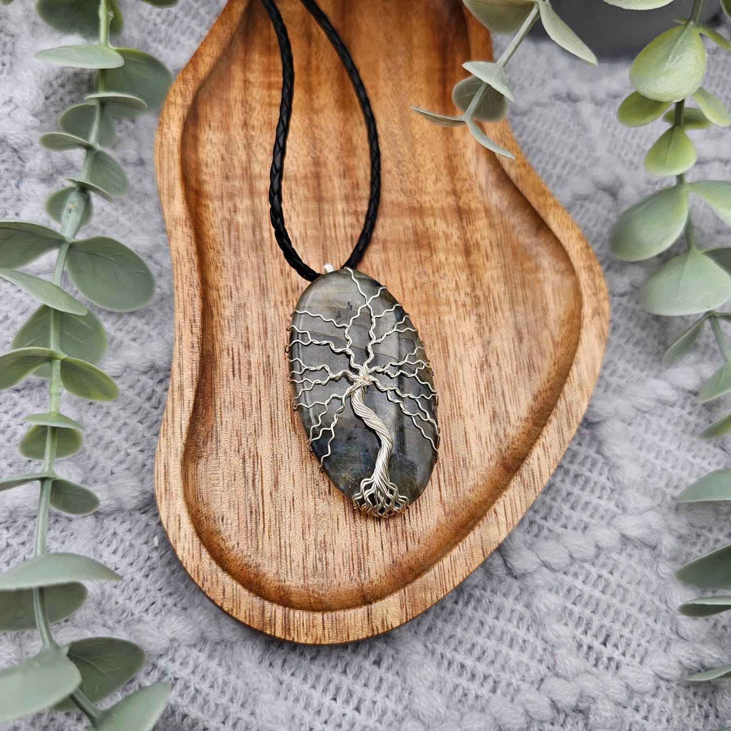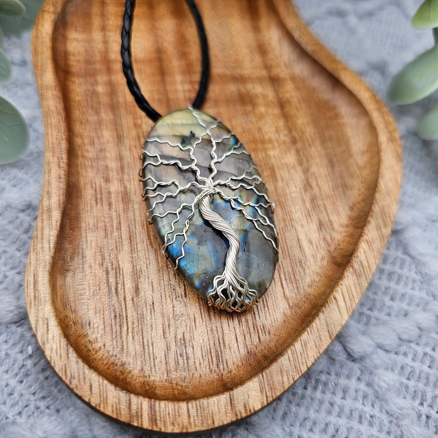 Labradorit Lebensbaum Anhänger | Schmuckdraht | Edelstein Halskette
