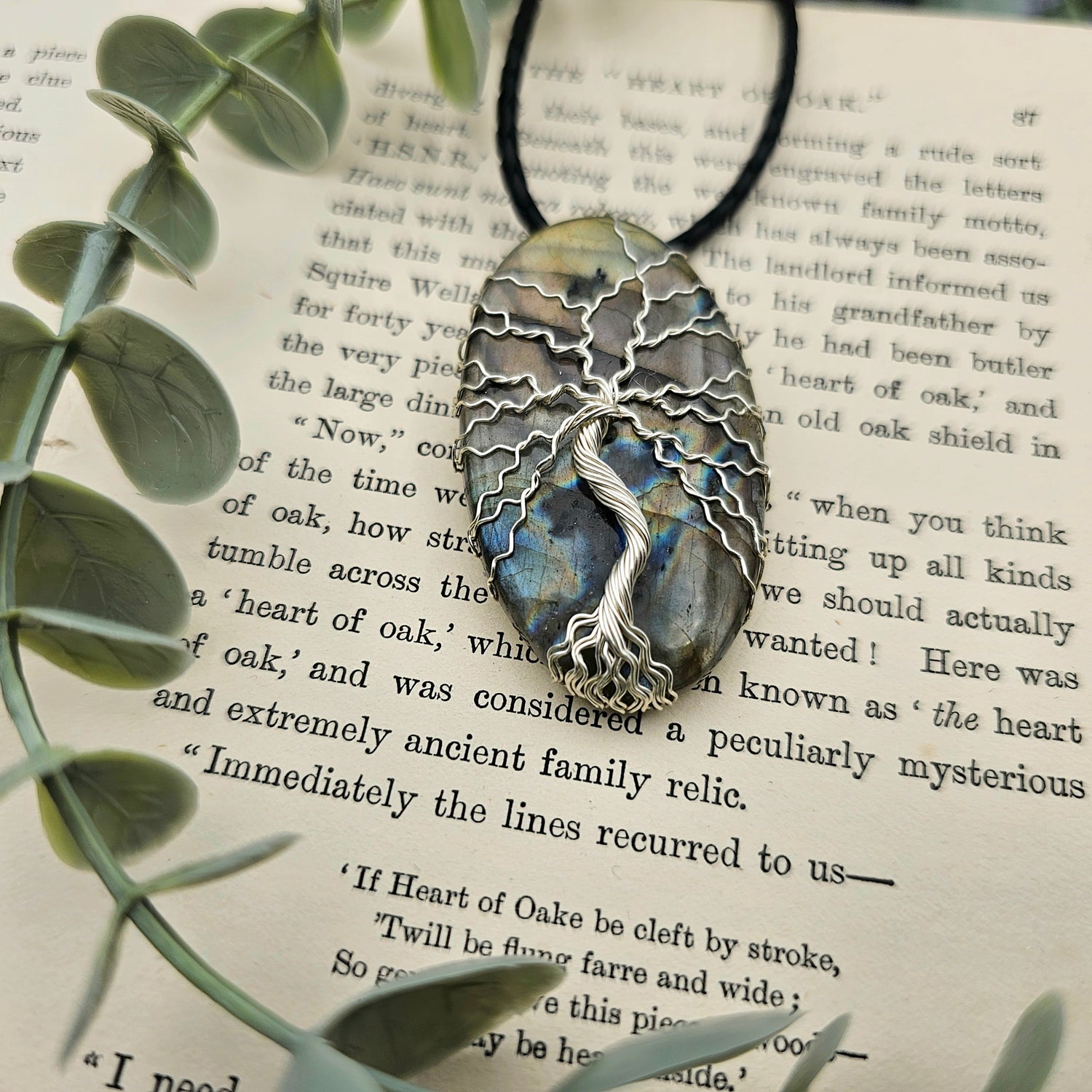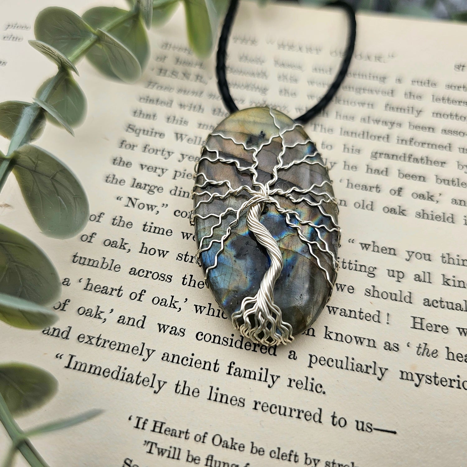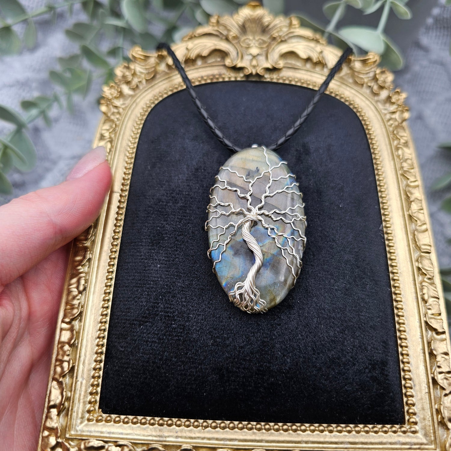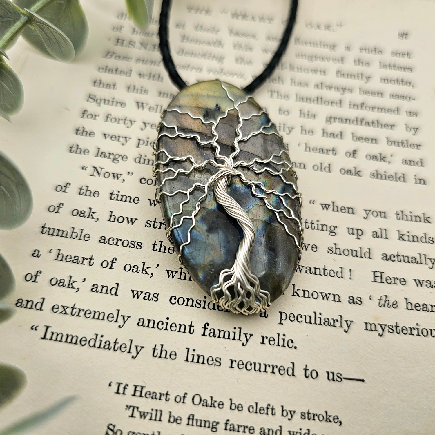 Labradorit Lebensbaum Anhänger | Schmuckdraht | Edelstein Halskette