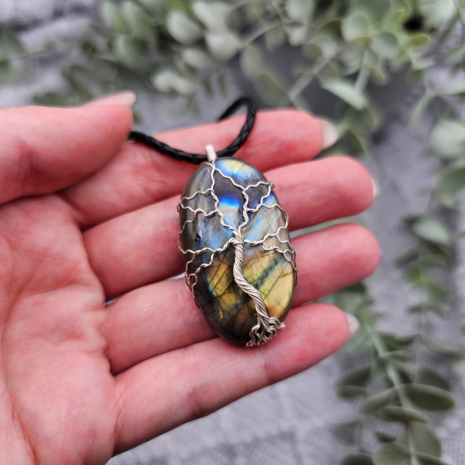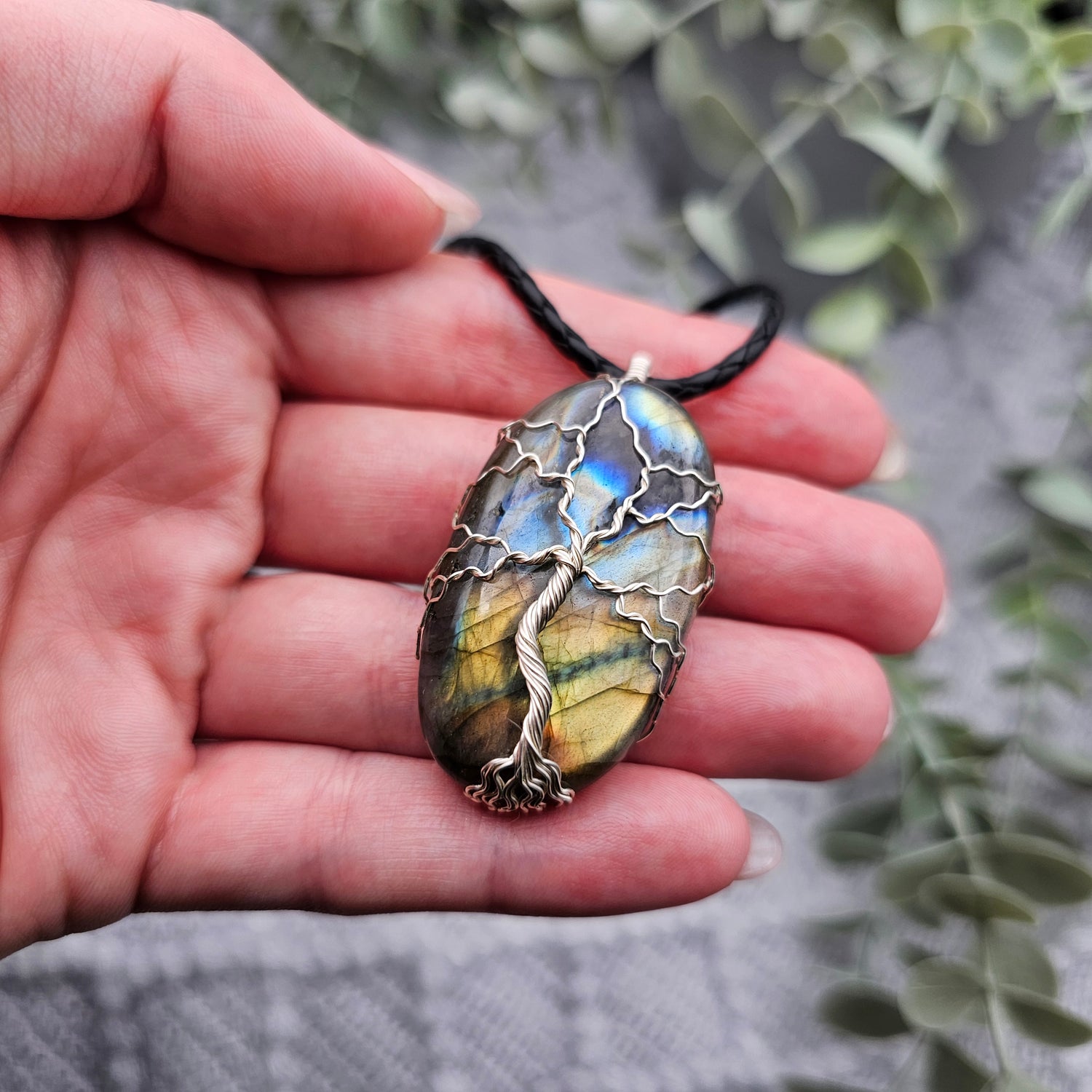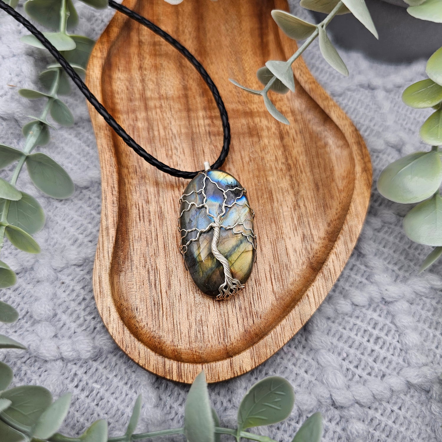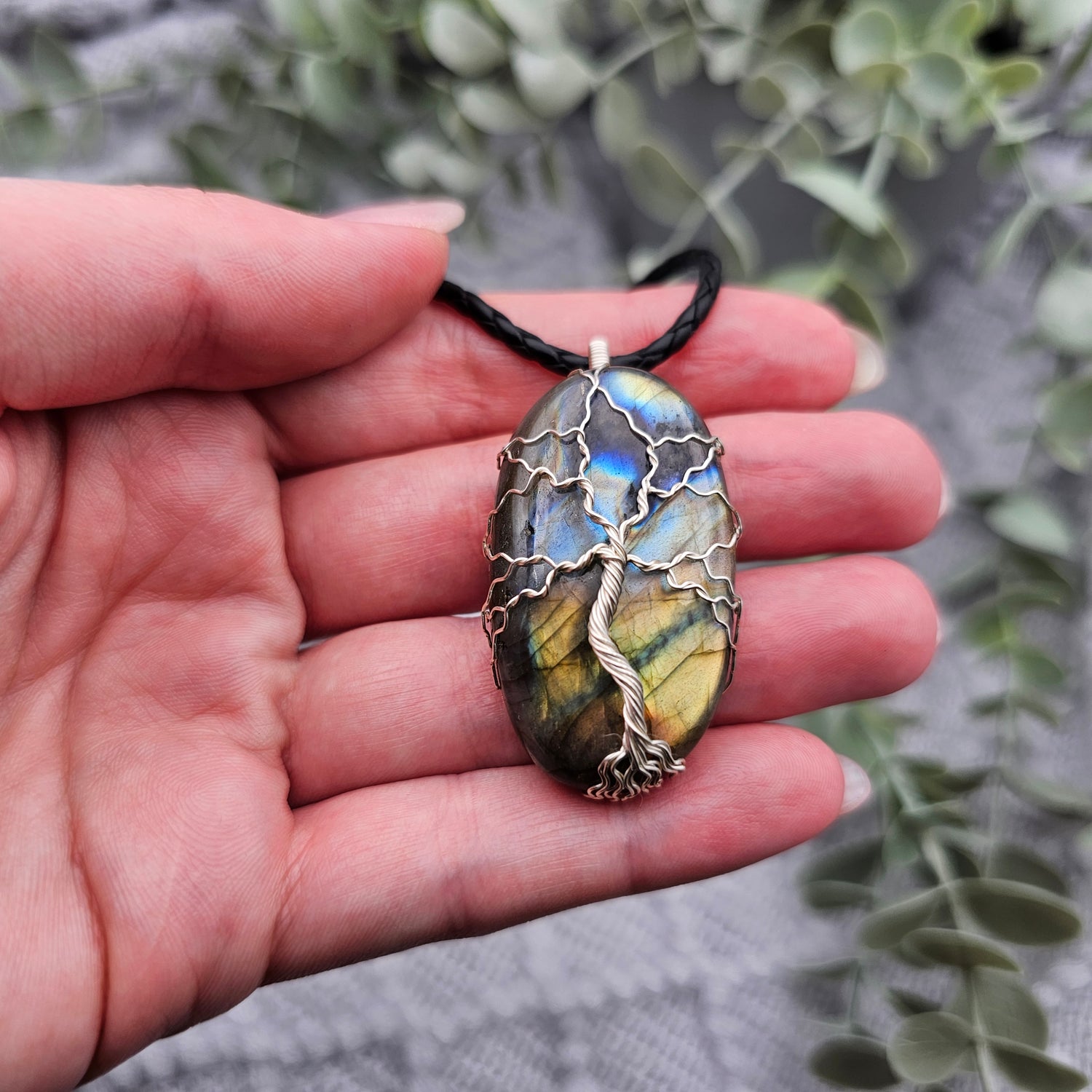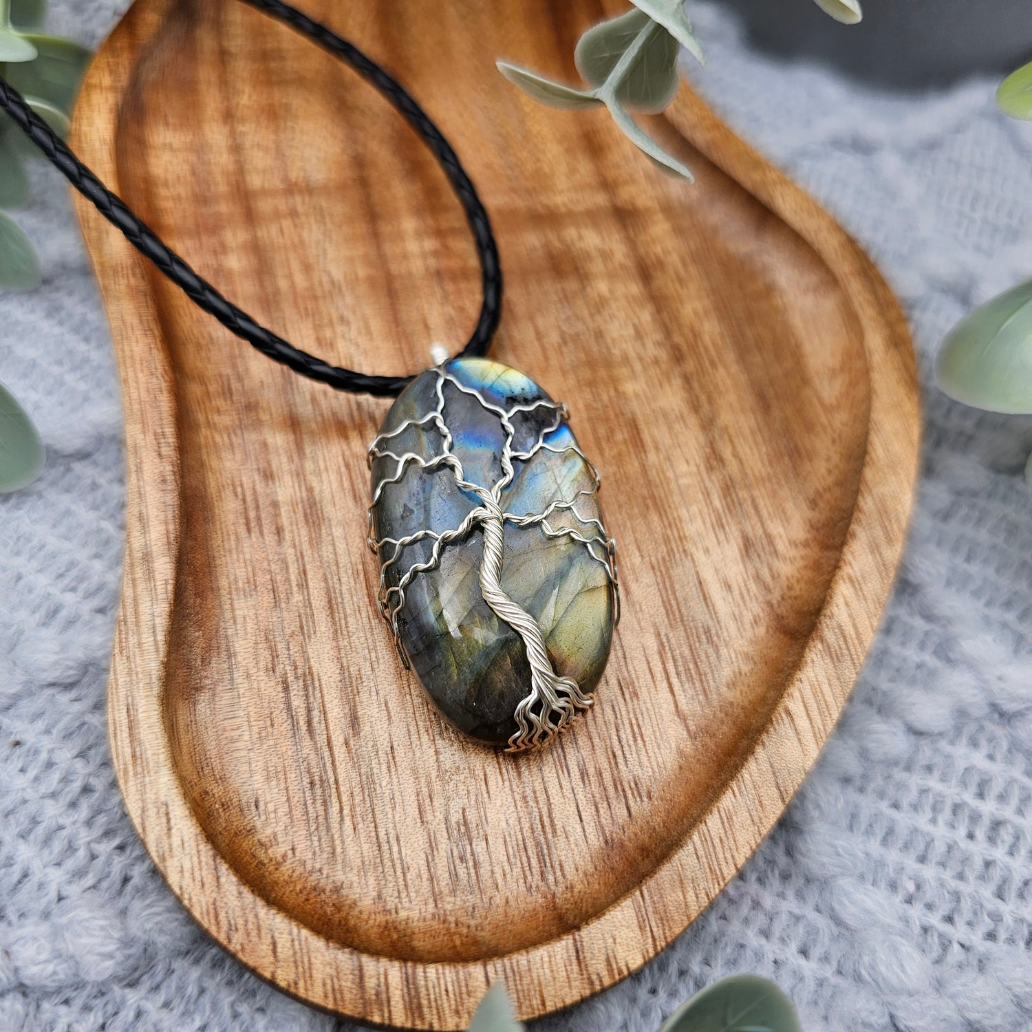 Labradorit Lebensbaum Anhänger | Schmuckdraht | Edelstein Halskette