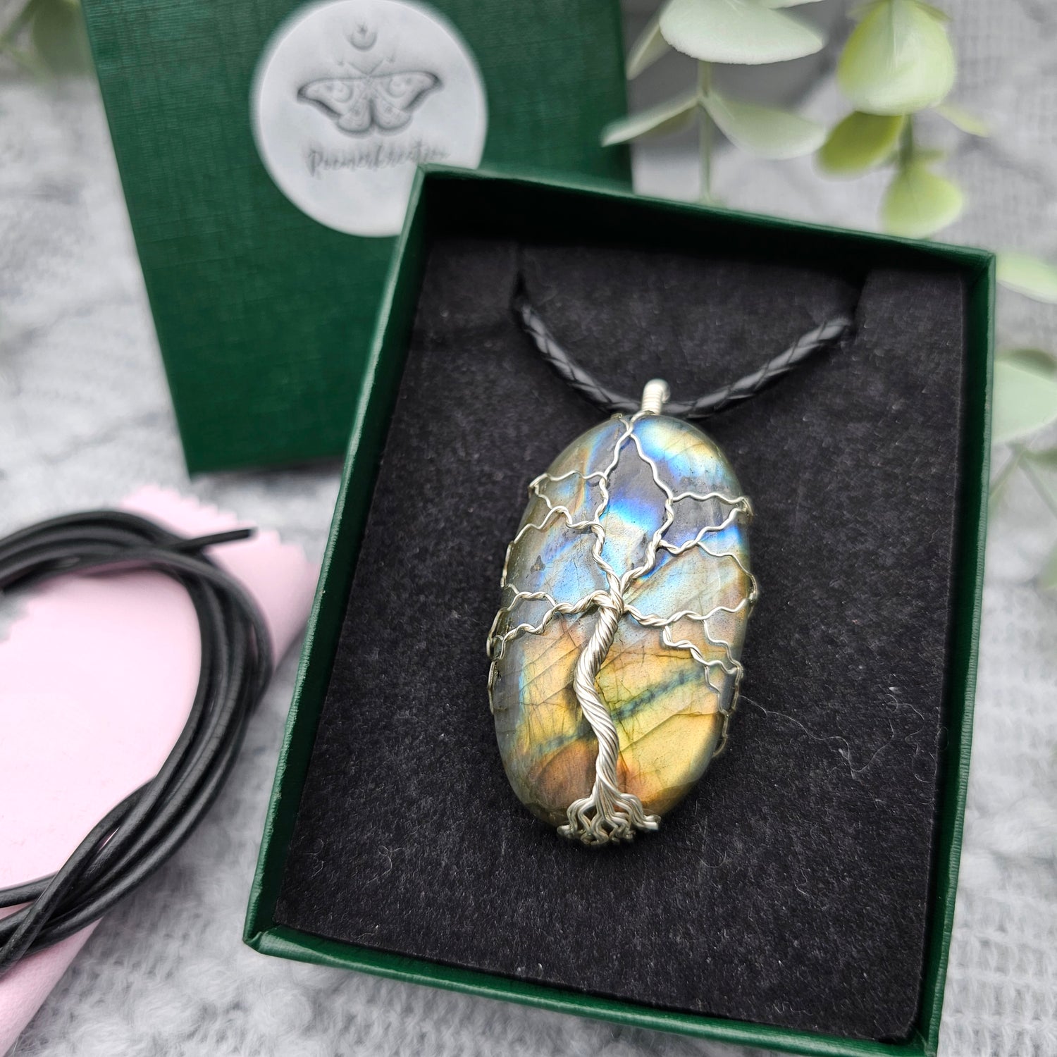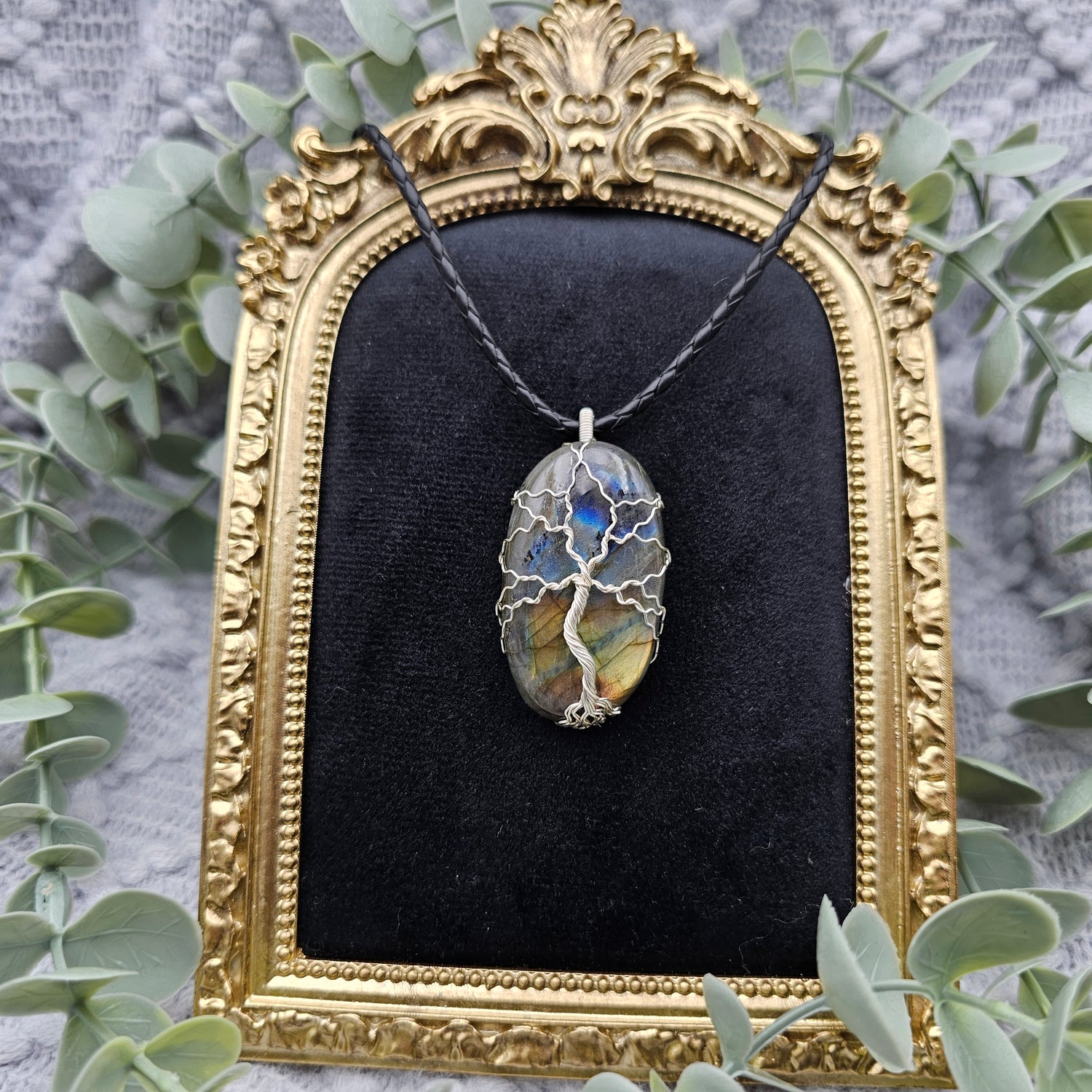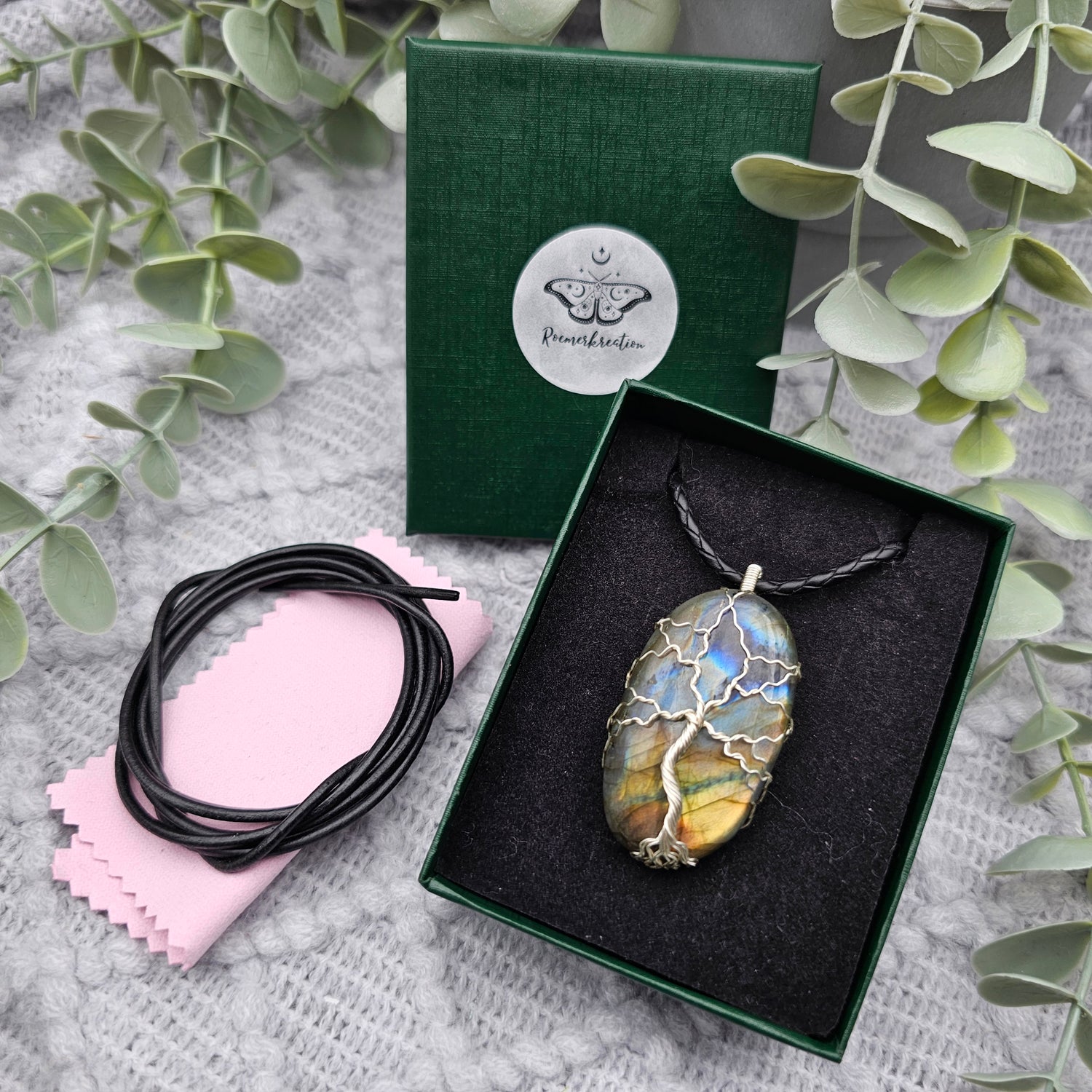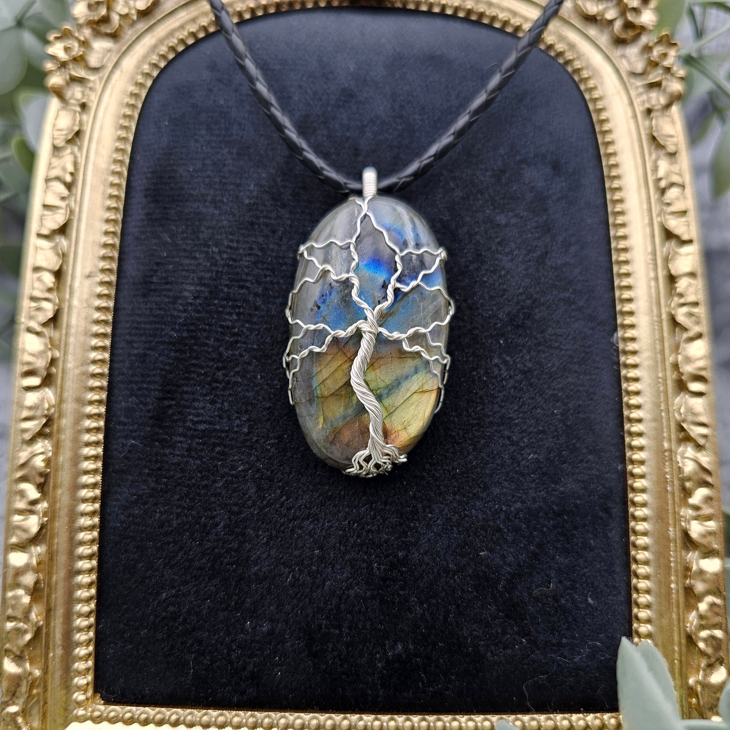 Labradorit Lebensbaum Anhänger | Schmuckdraht | Edelstein Halskette