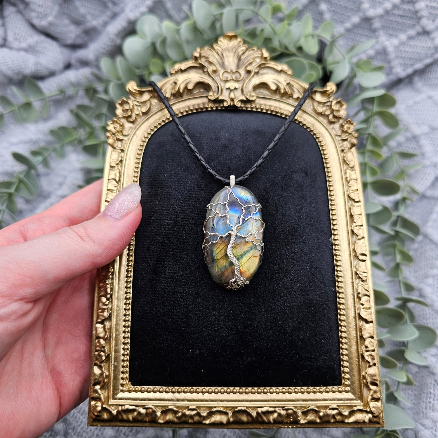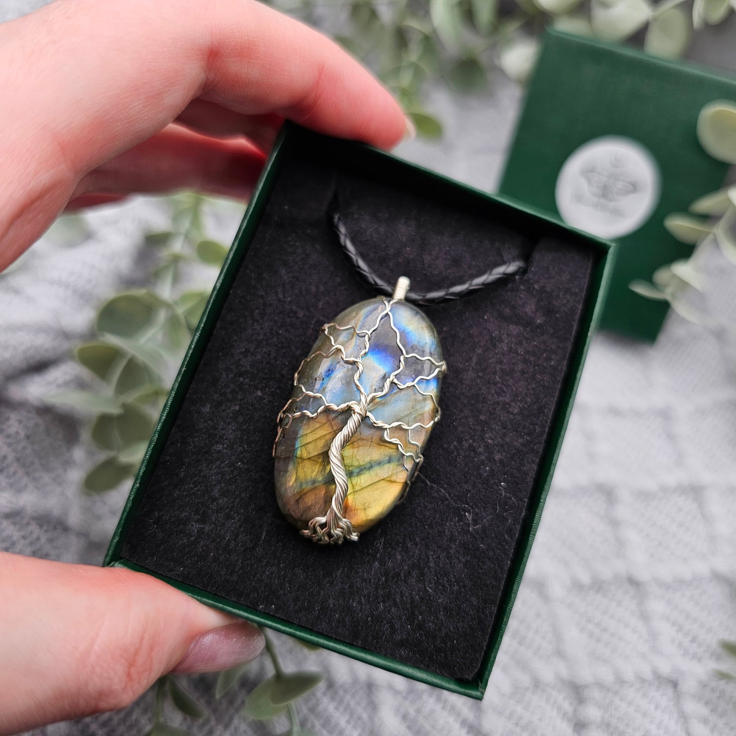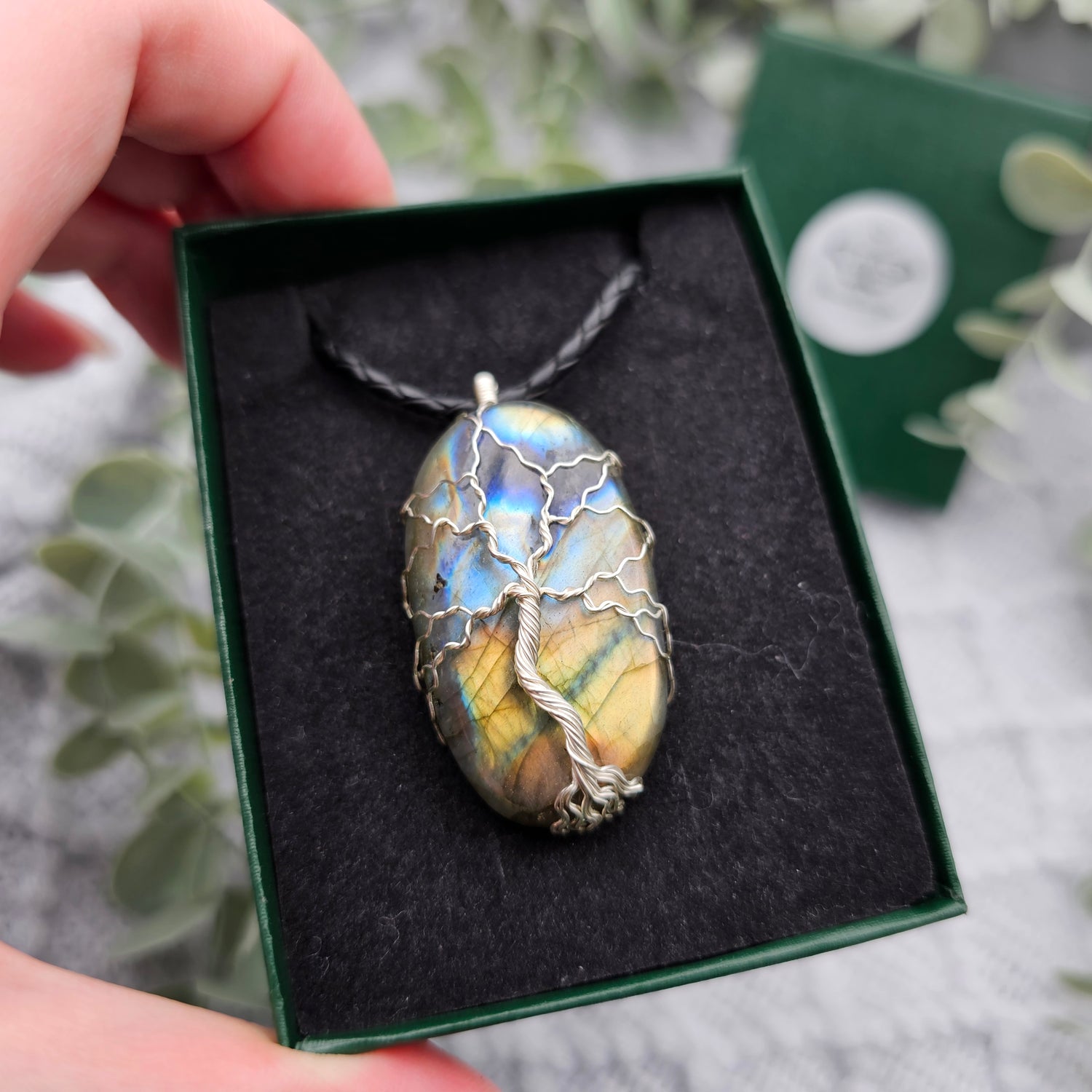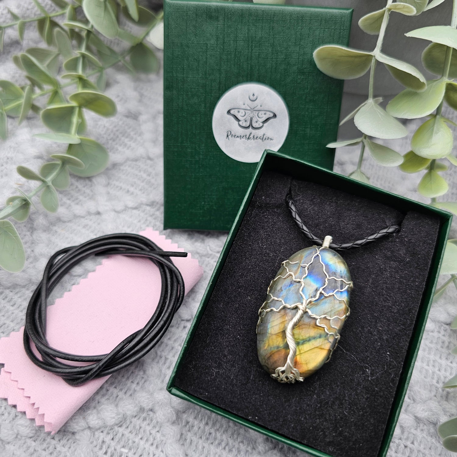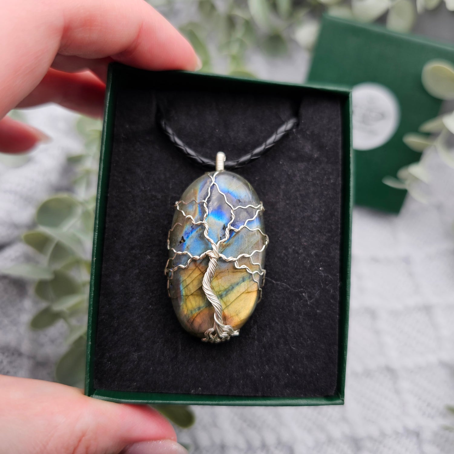 Labradorit Lebensbaum Anhänger | Schmuckdraht | Edelstein Halskette