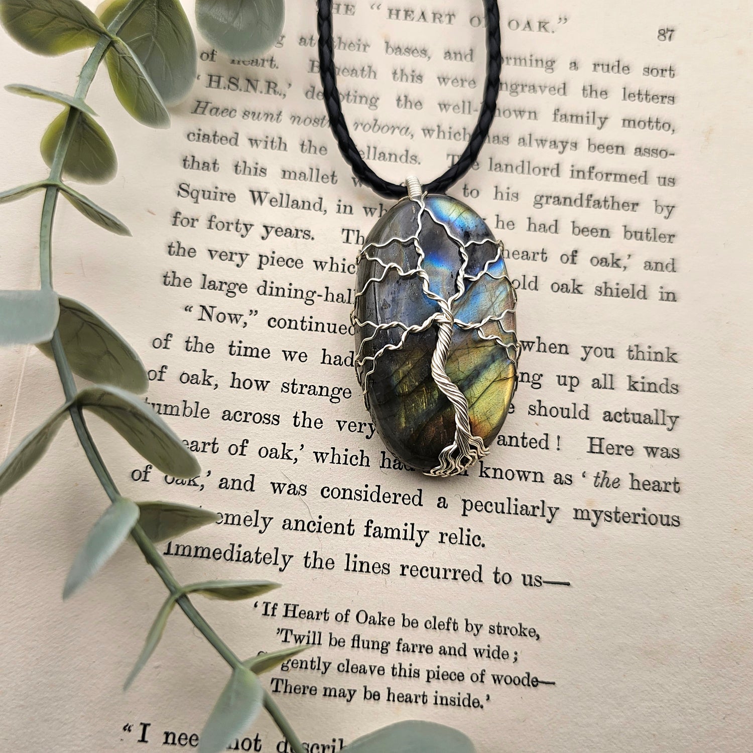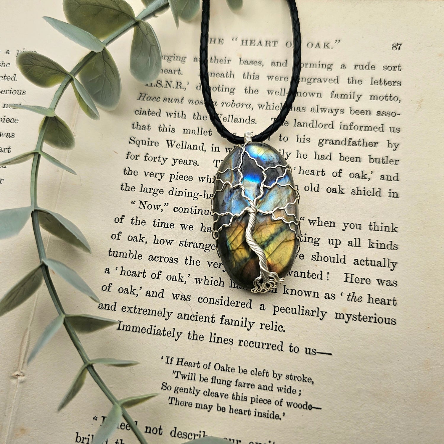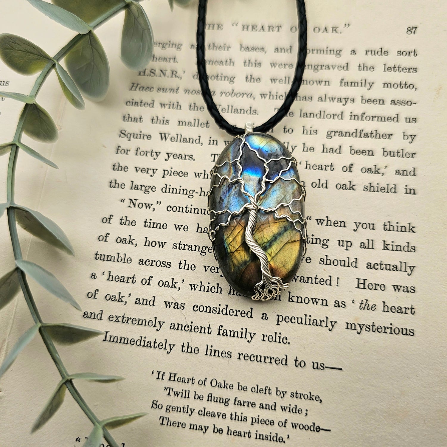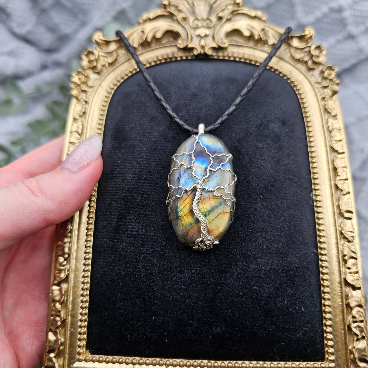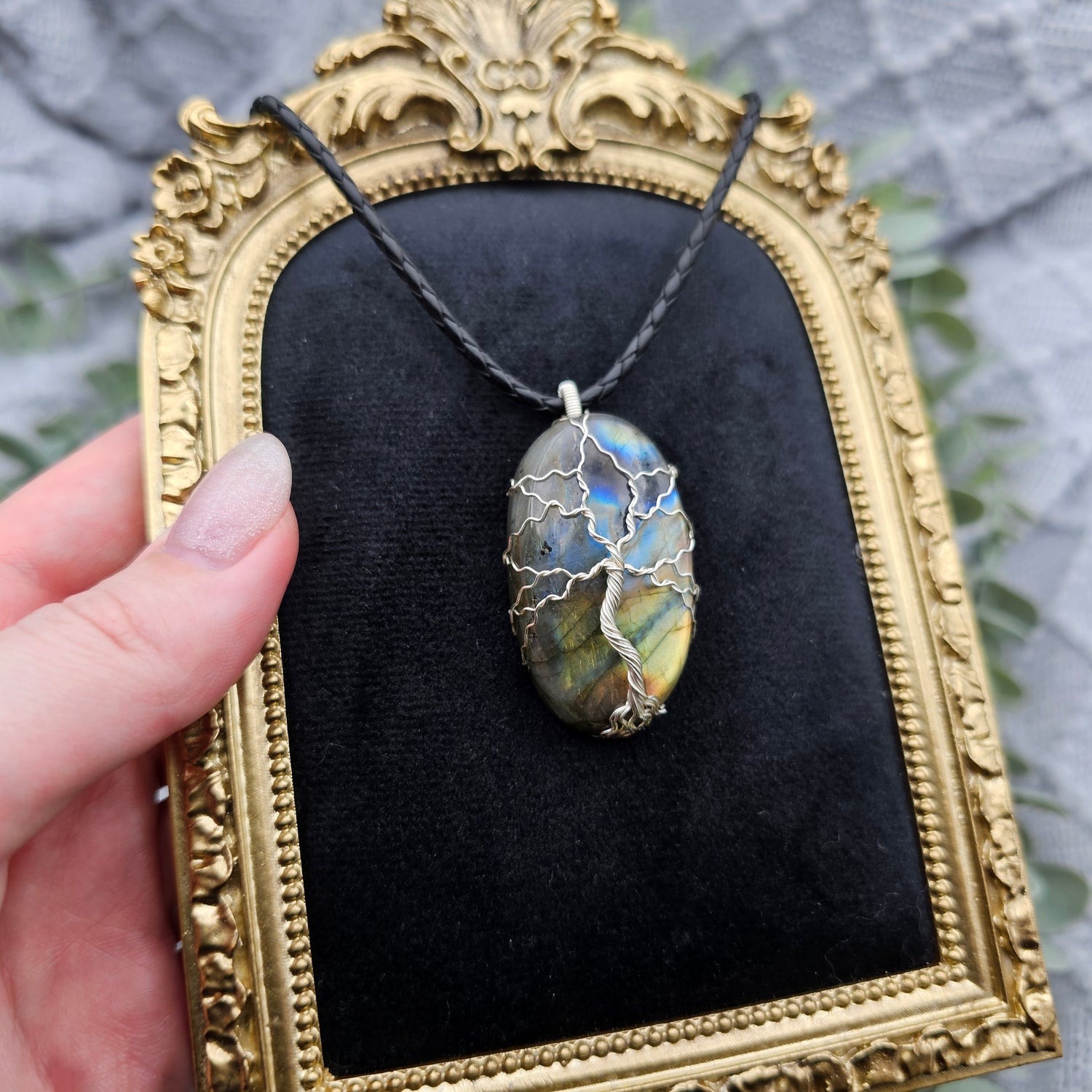 Labradorit Lebensbaum Anhänger | Schmuckdraht | Edelstein Halskette