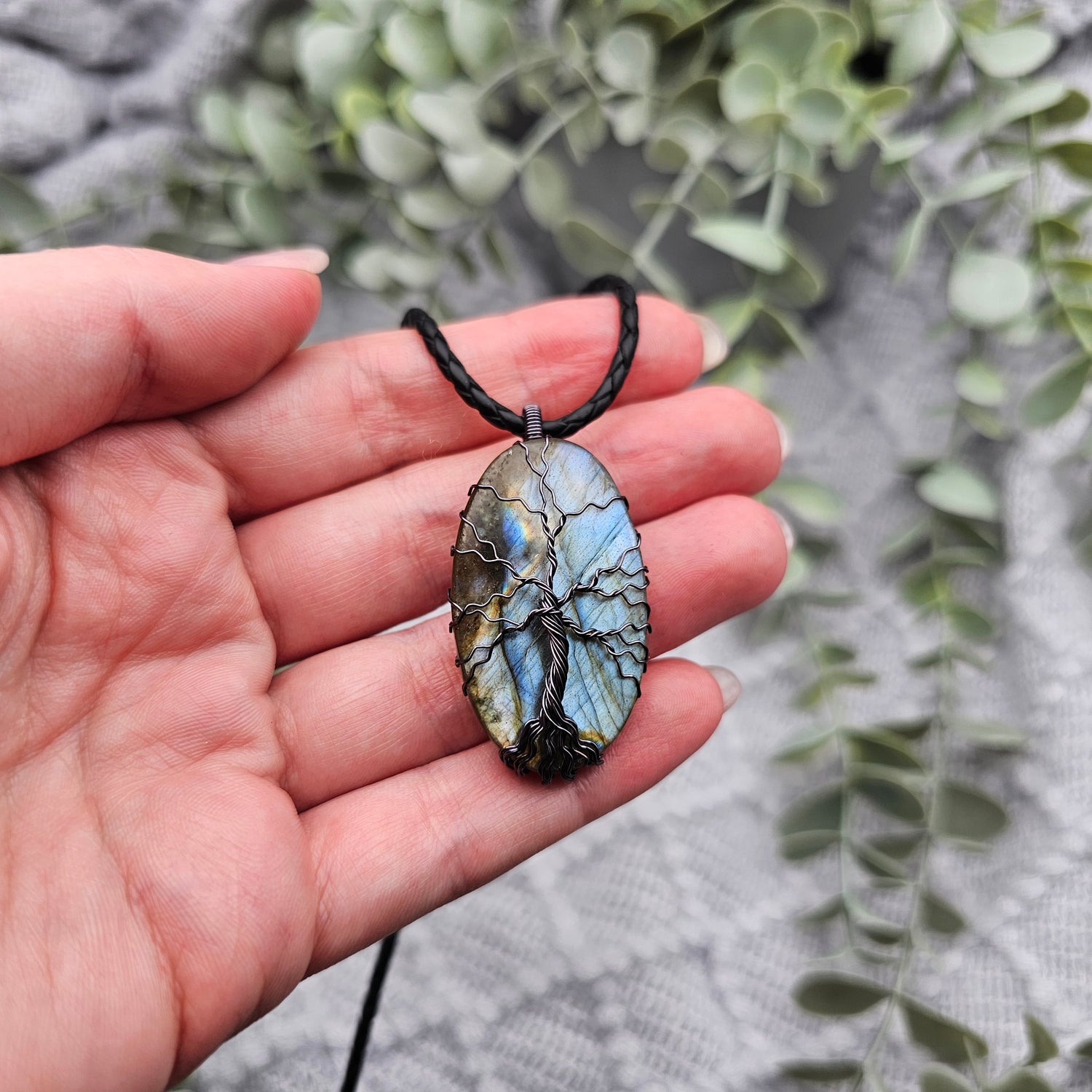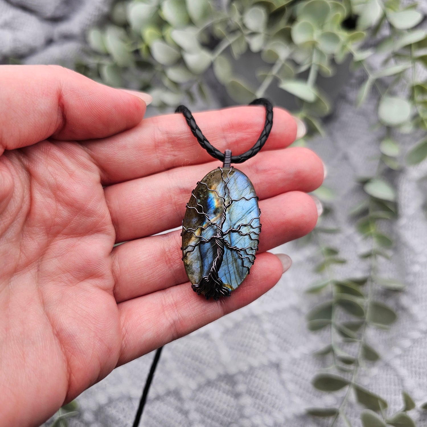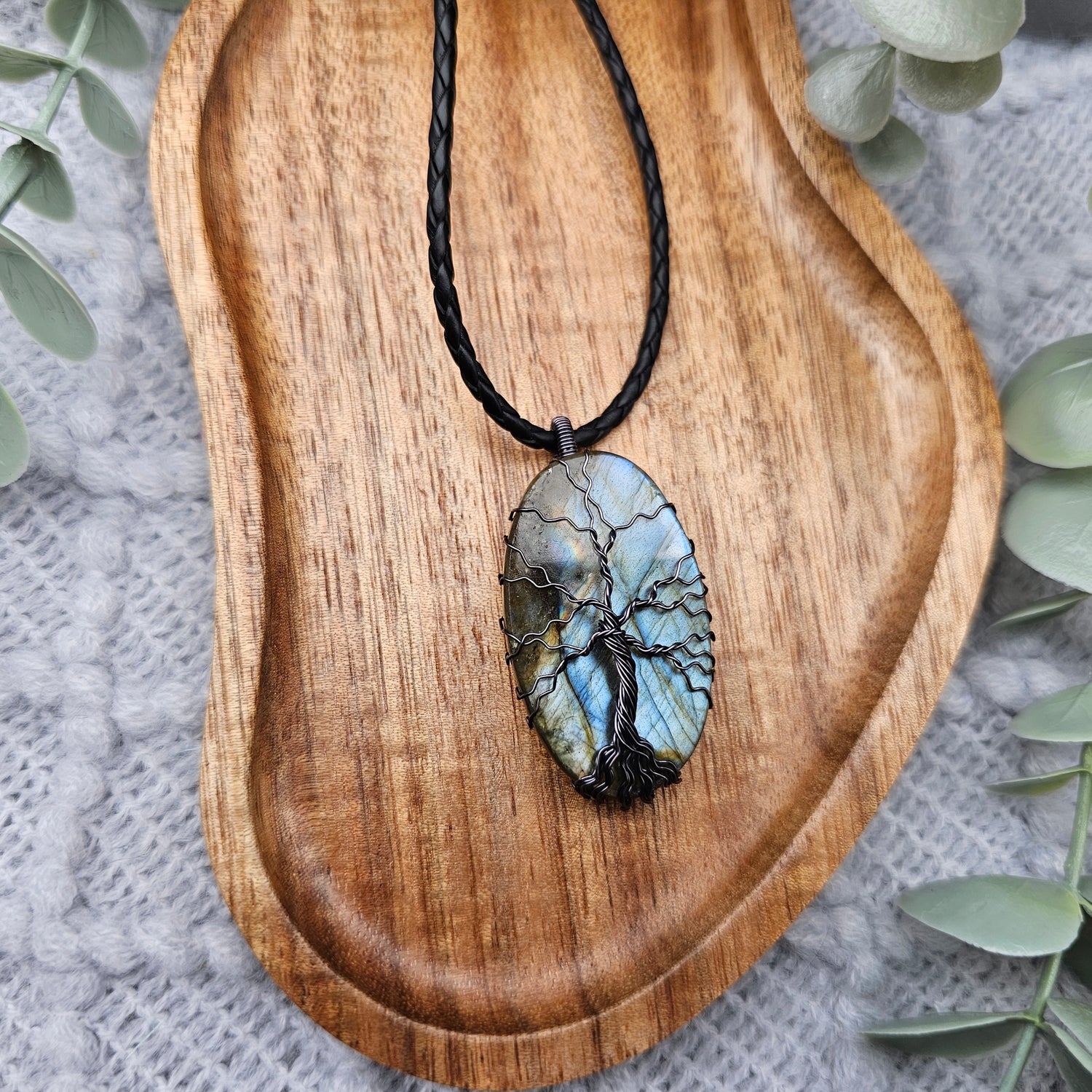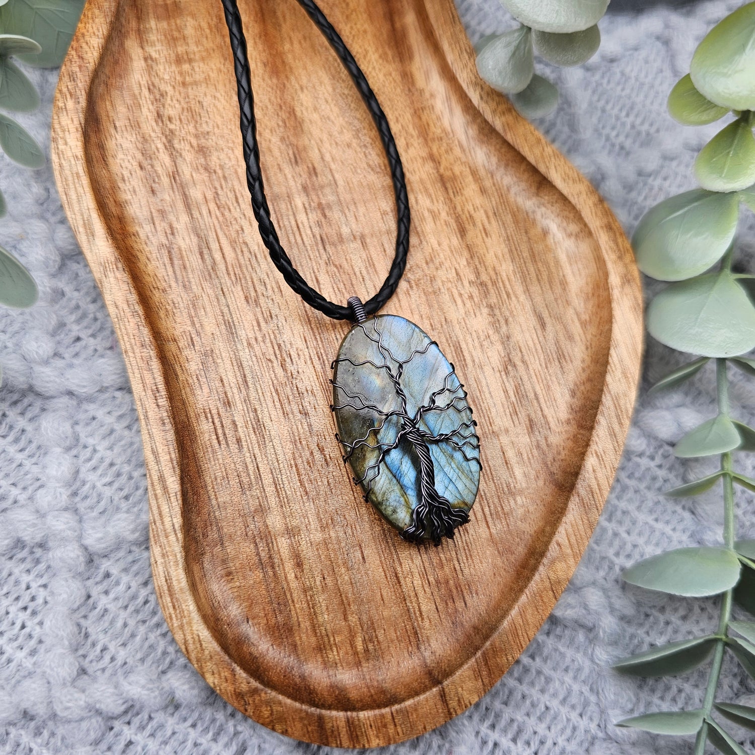 Labradorit Lebensbaum Anhänger | Schmuckdraht | Edelstein Halskette