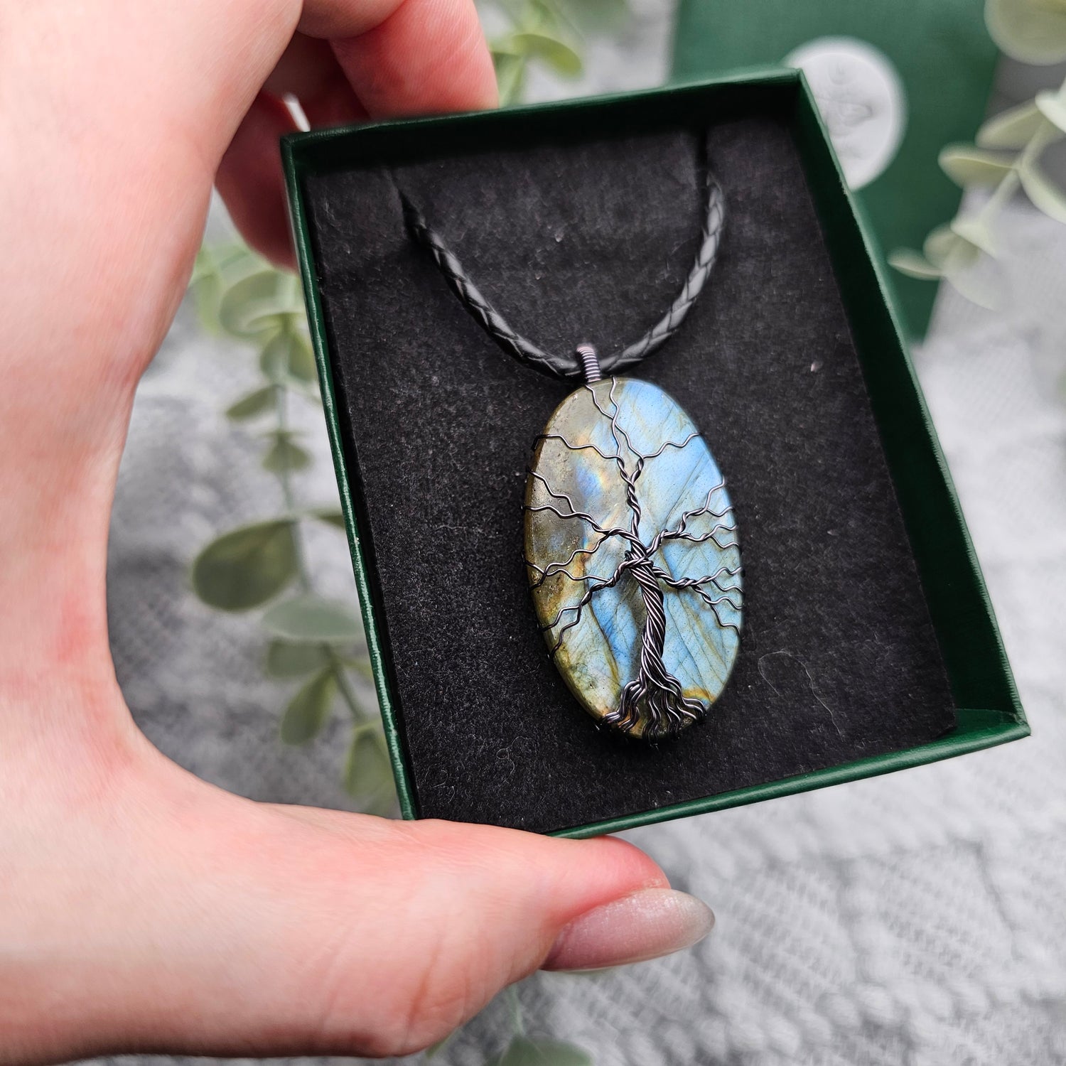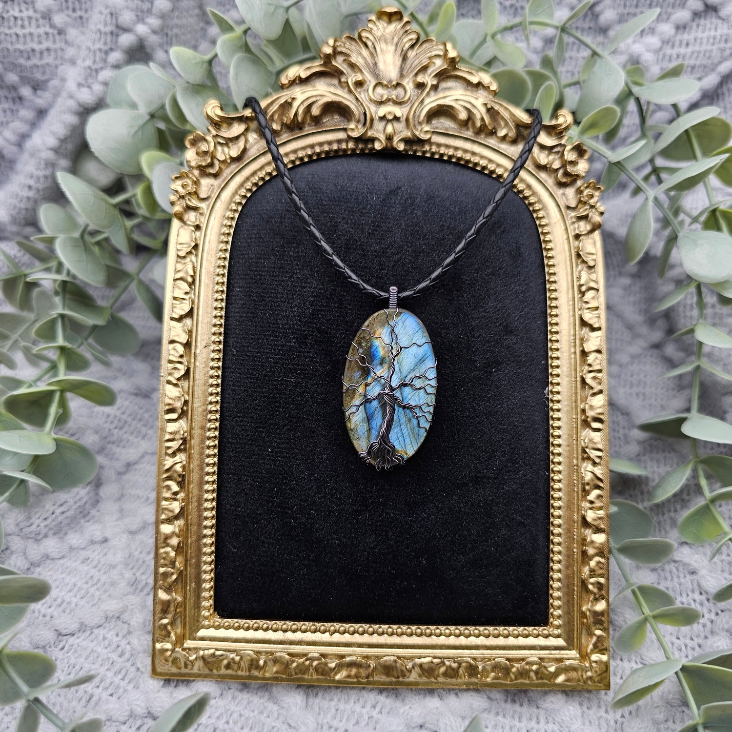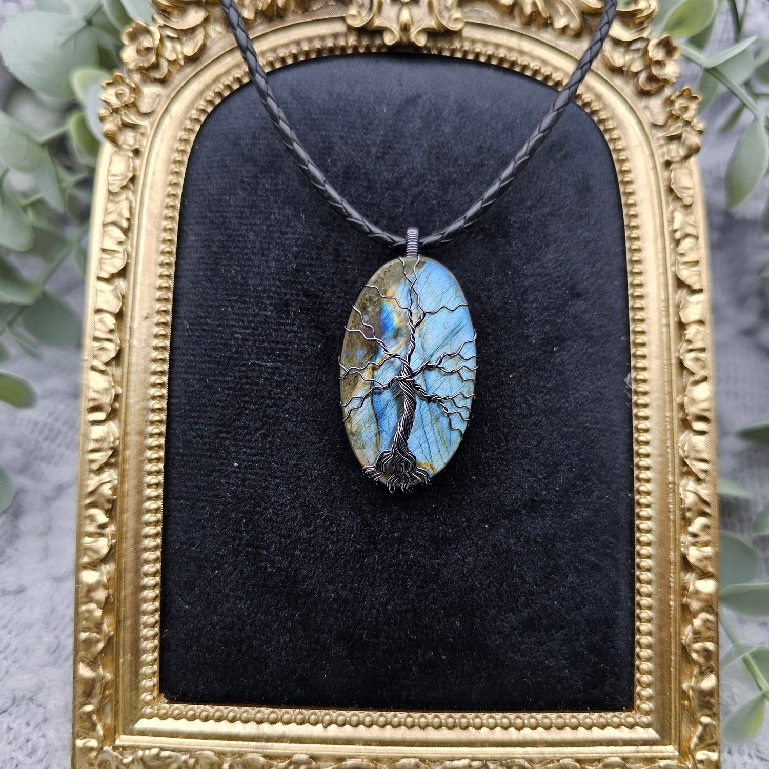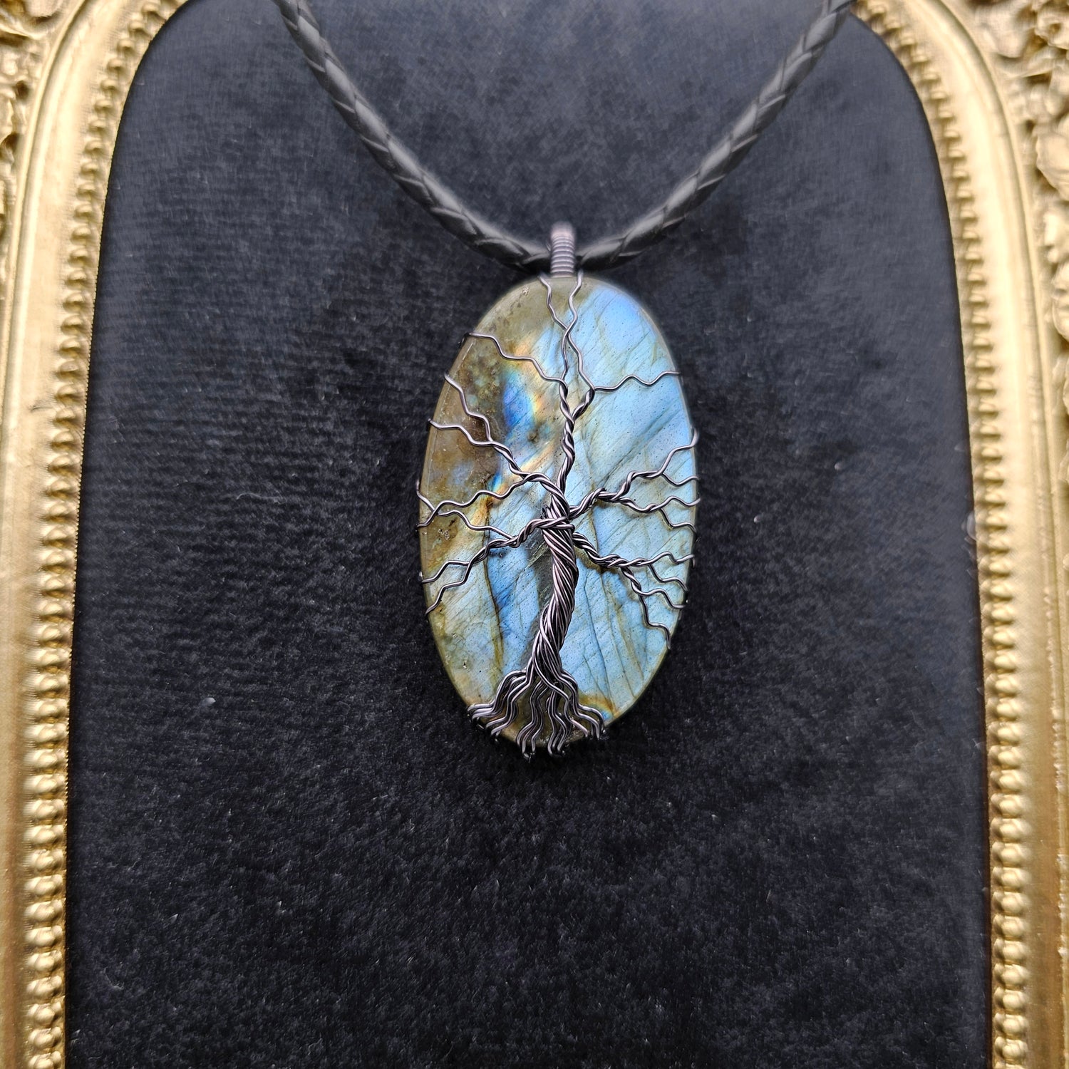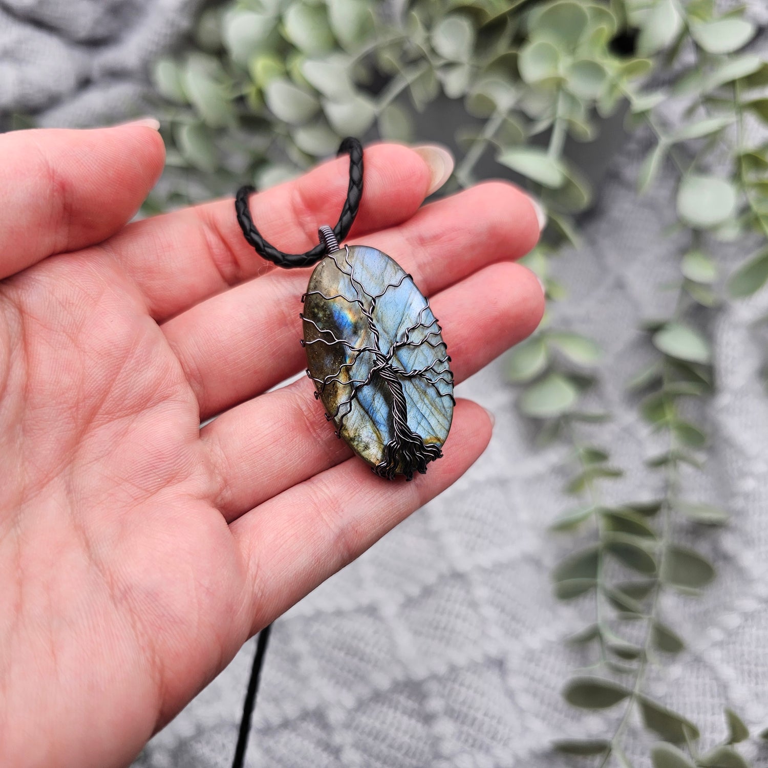 Labradorit Lebensbaum Anhänger | Schmuckdraht | Edelstein Halskette
