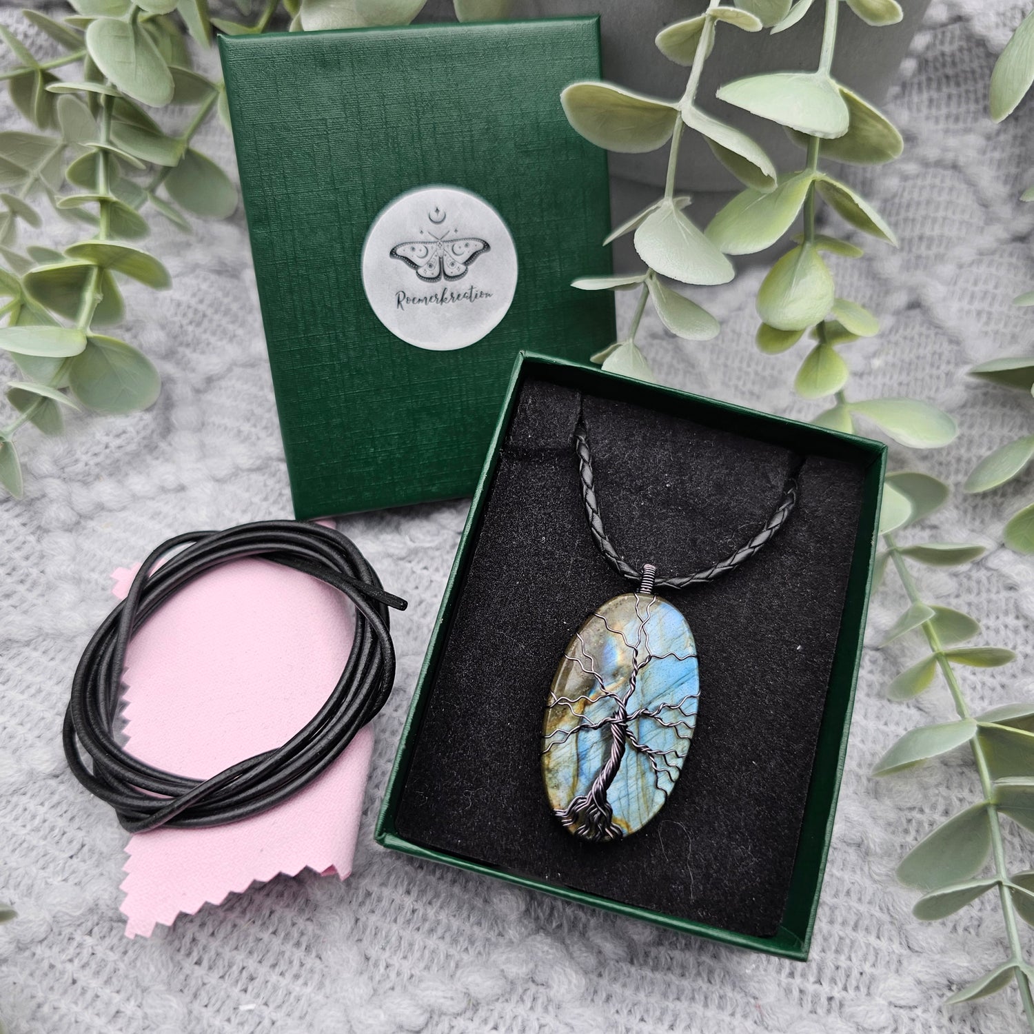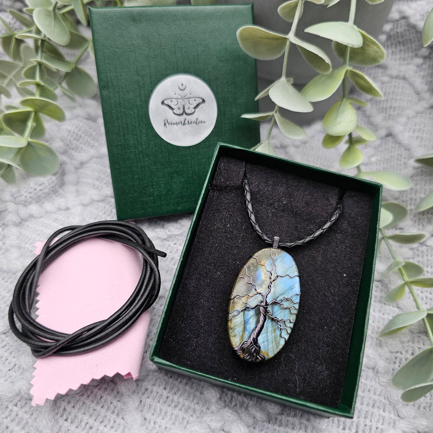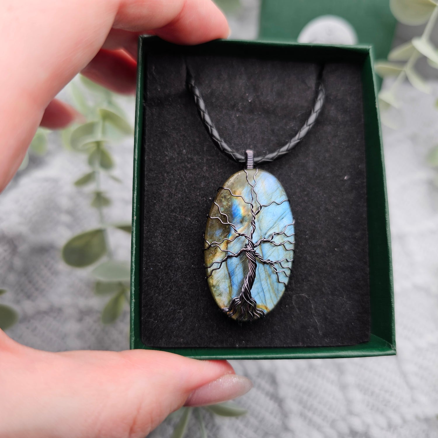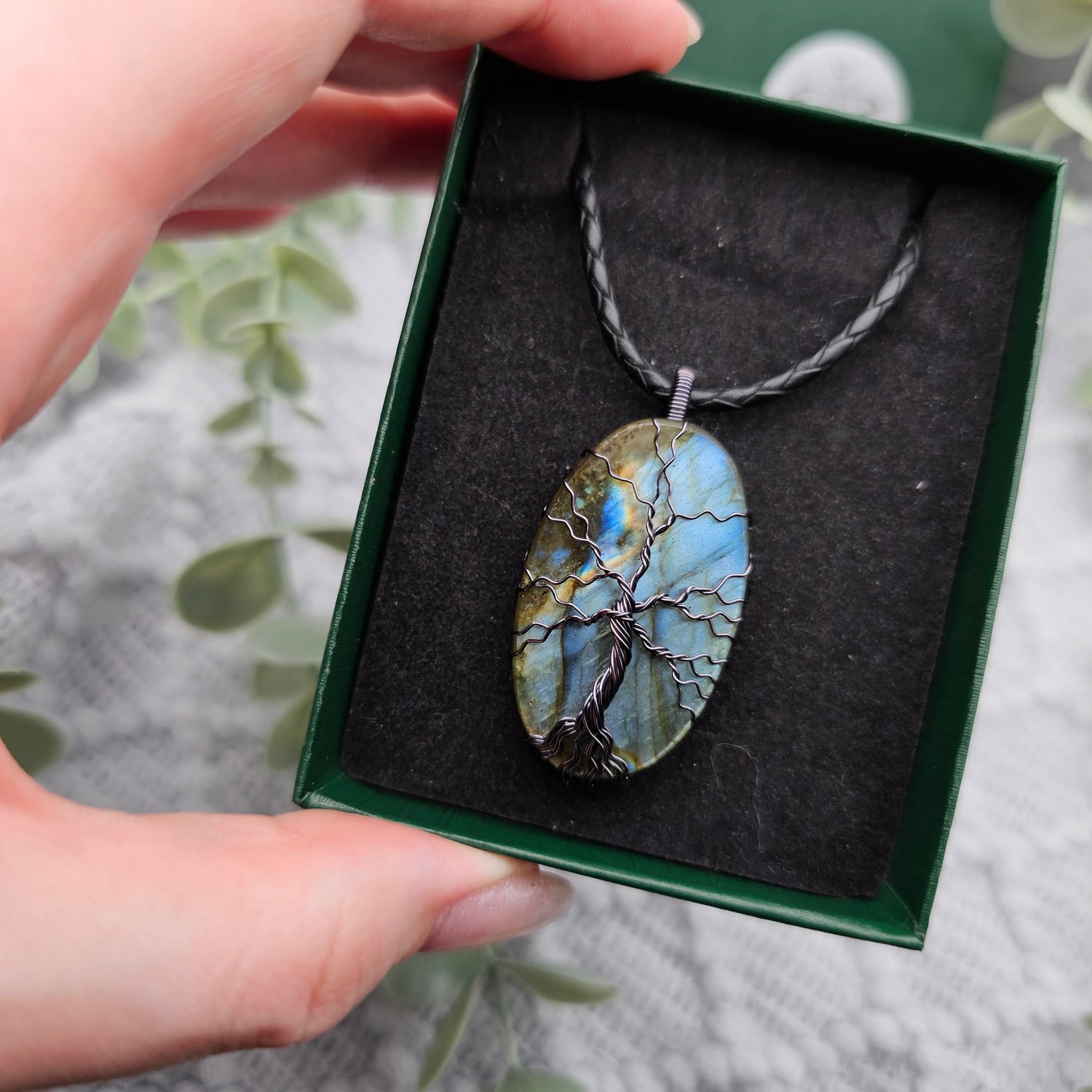 Labradorit Lebensbaum Anhänger | Schmuckdraht | Edelstein Halskette