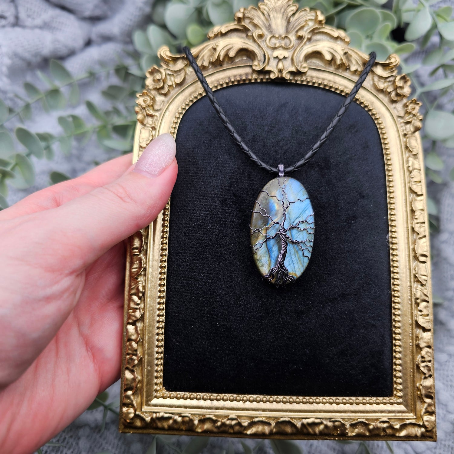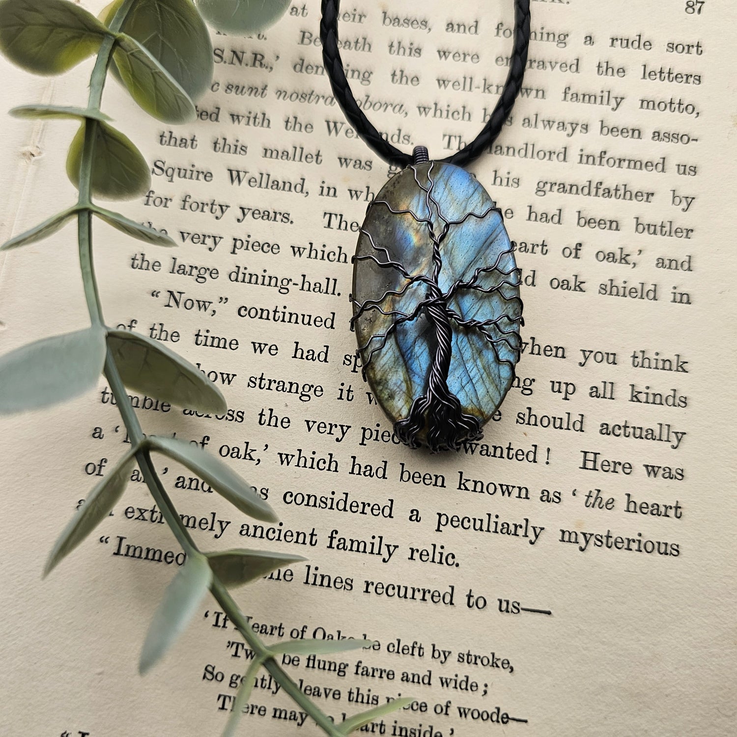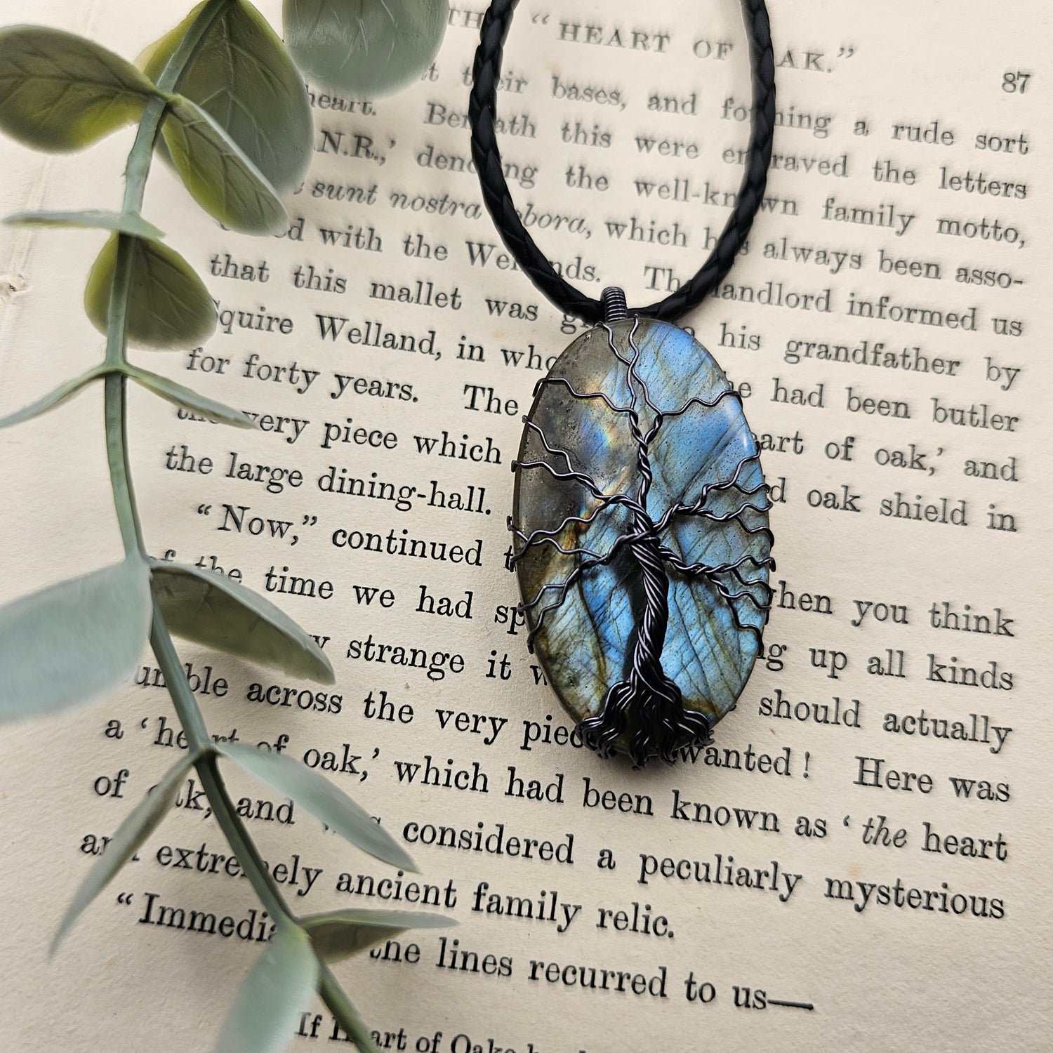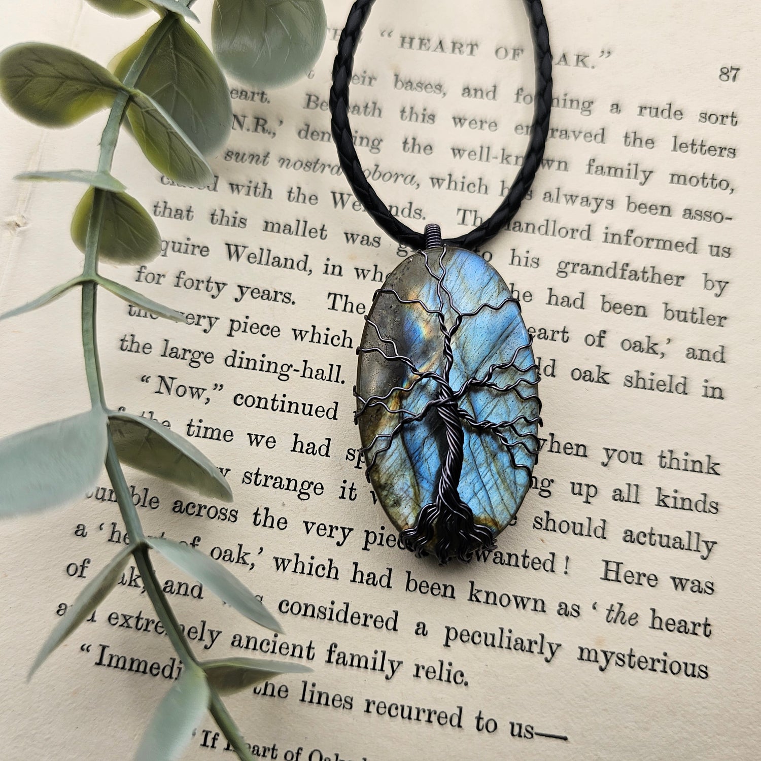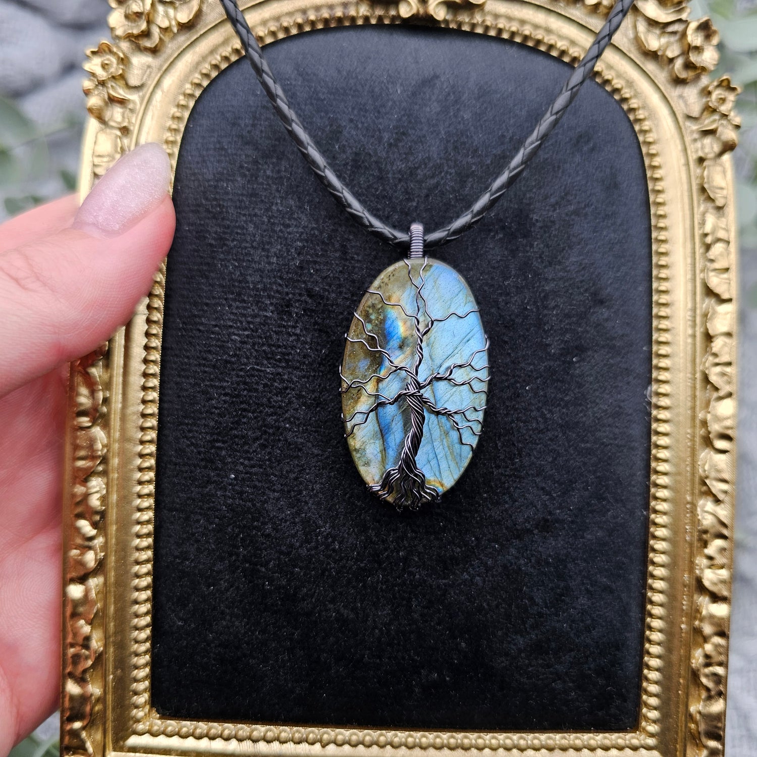 Labradorit Lebensbaum Anhänger | Schmuckdraht | Edelstein Halskette