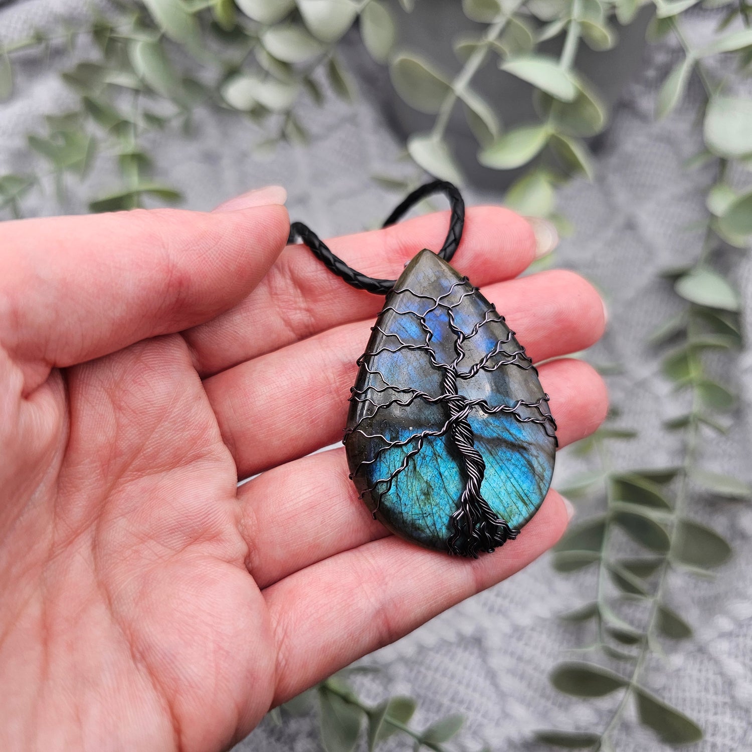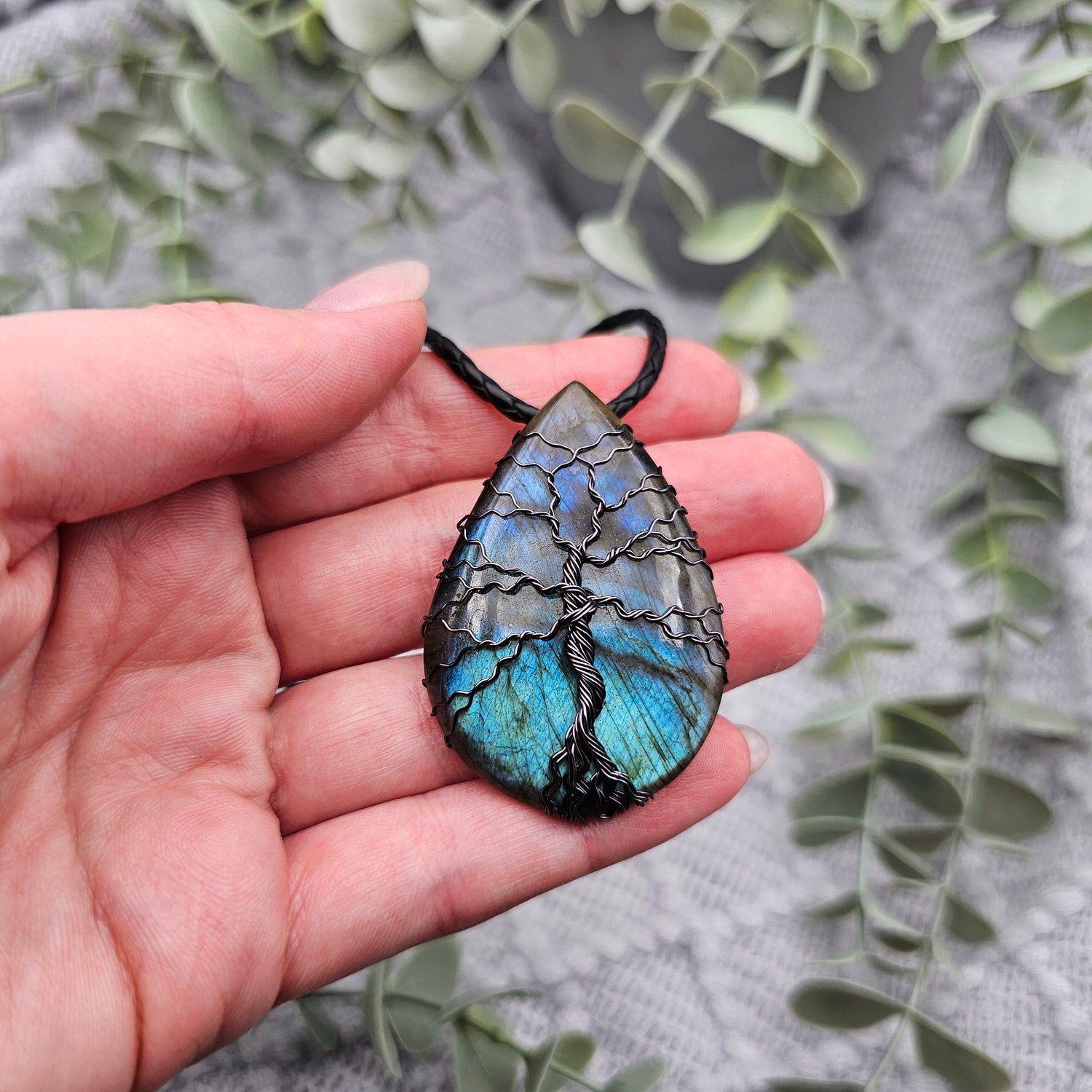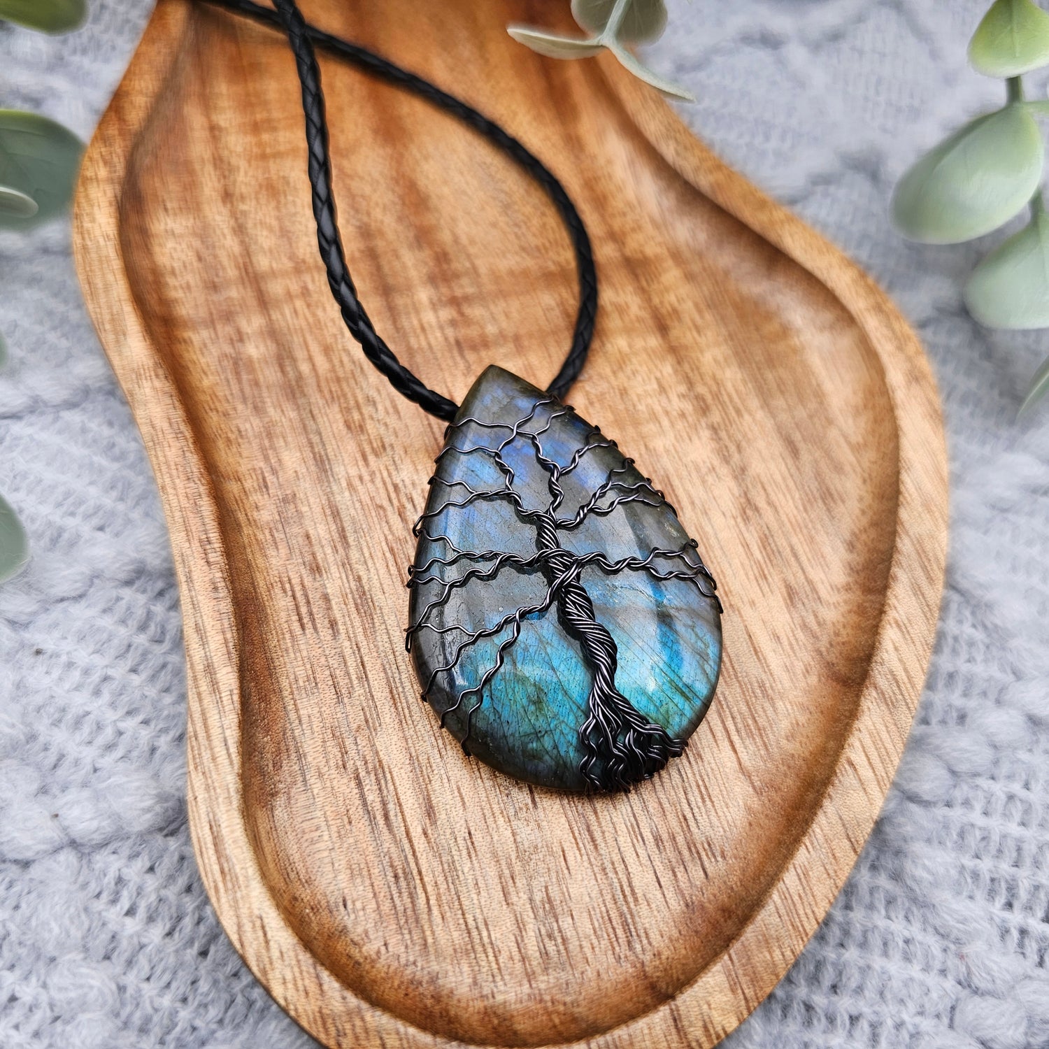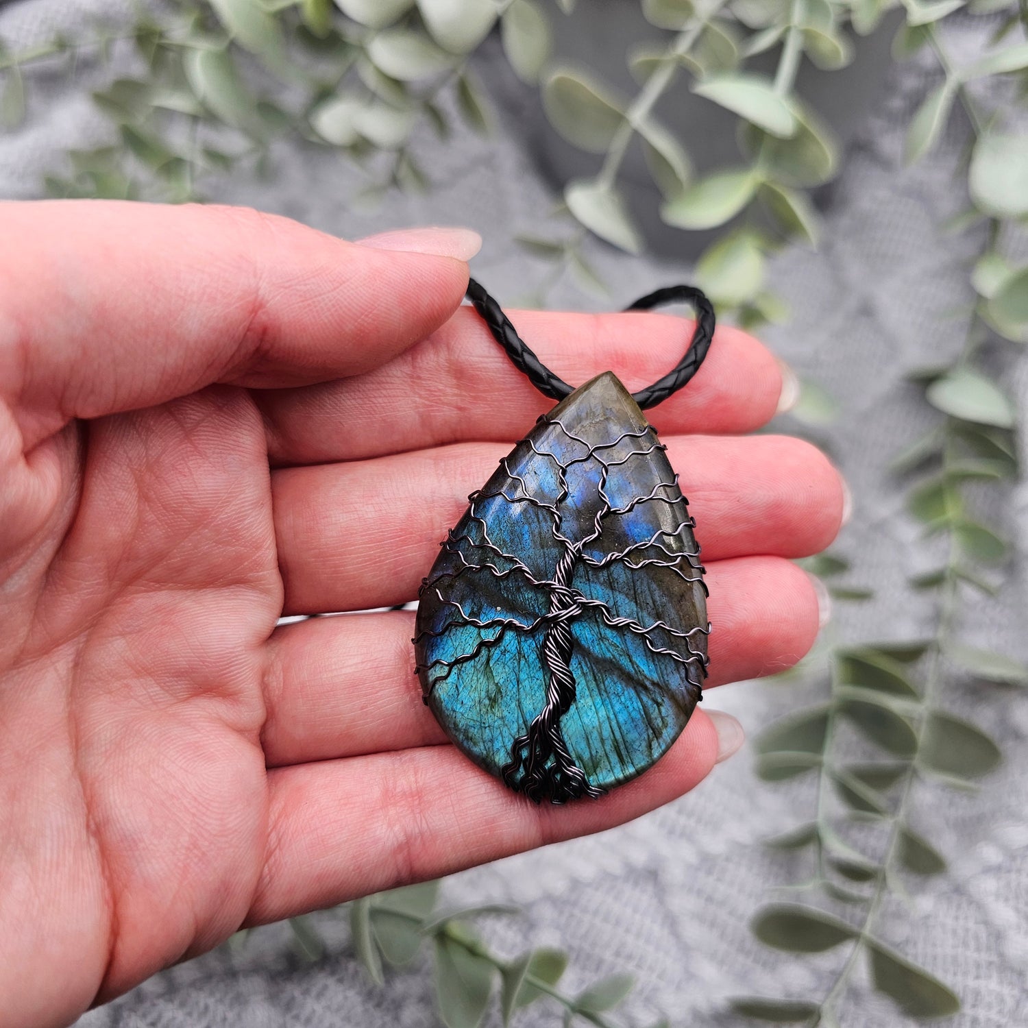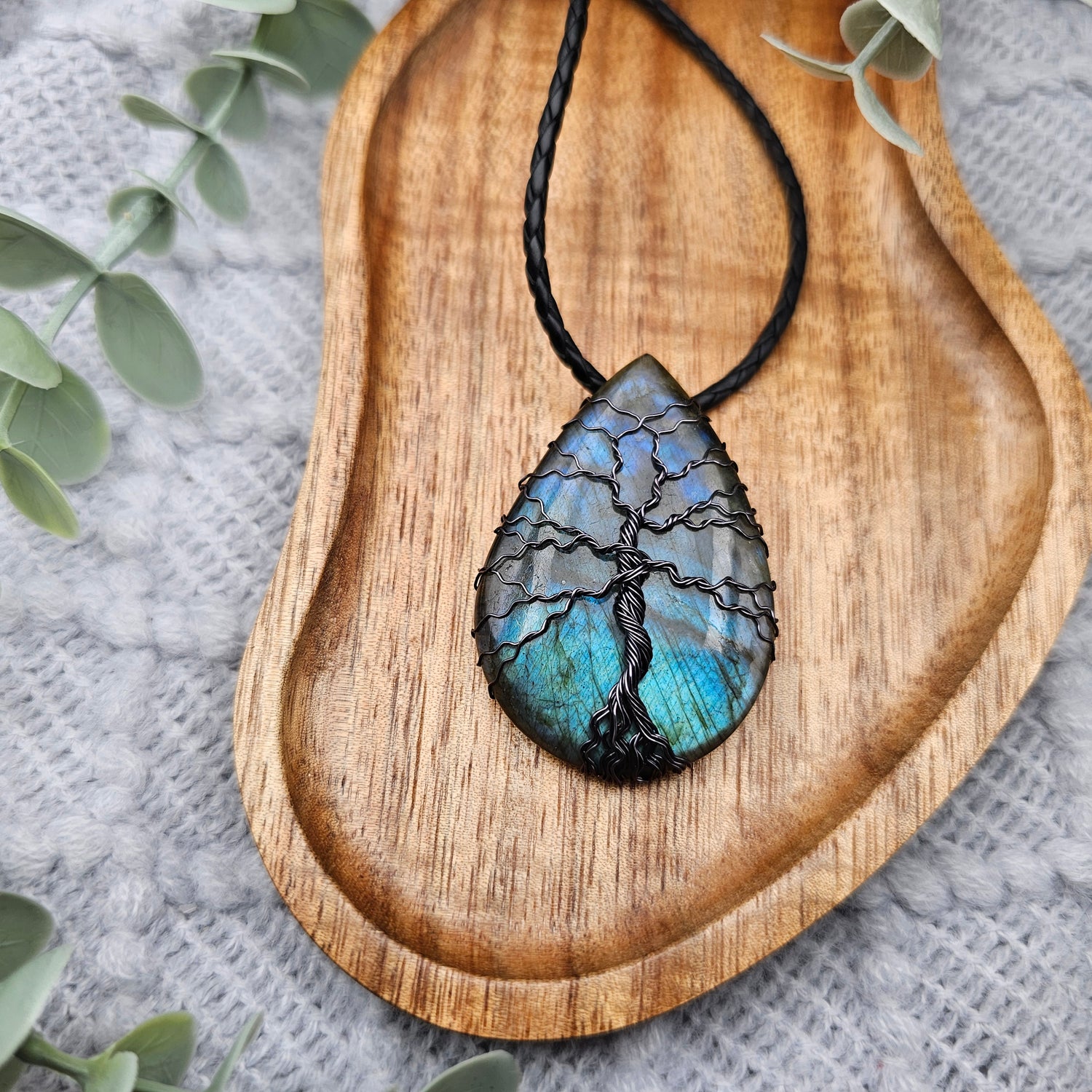 Labradorit Lebensbaum Anhänger | Schmuckdraht | Edelstein Halskette
