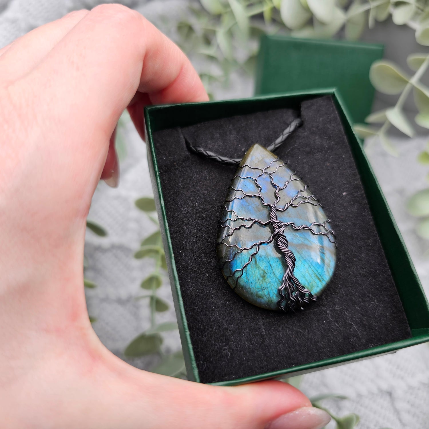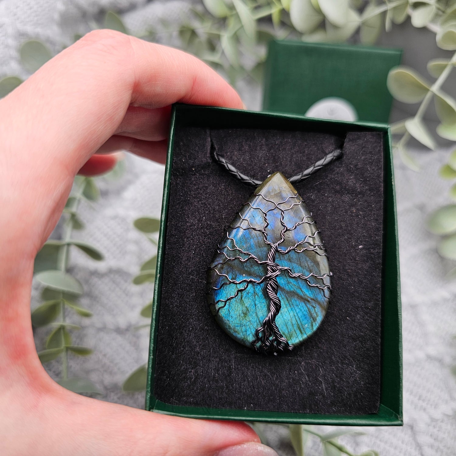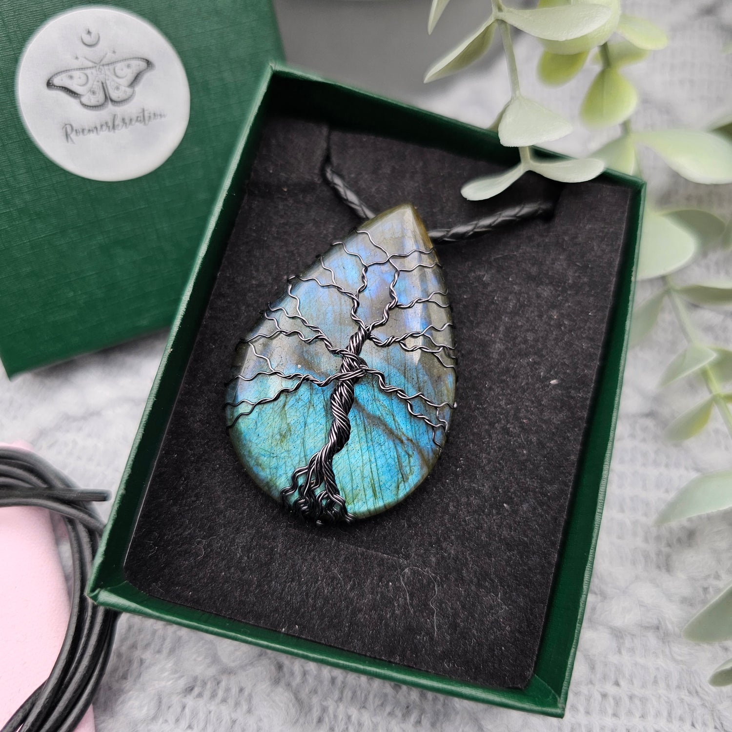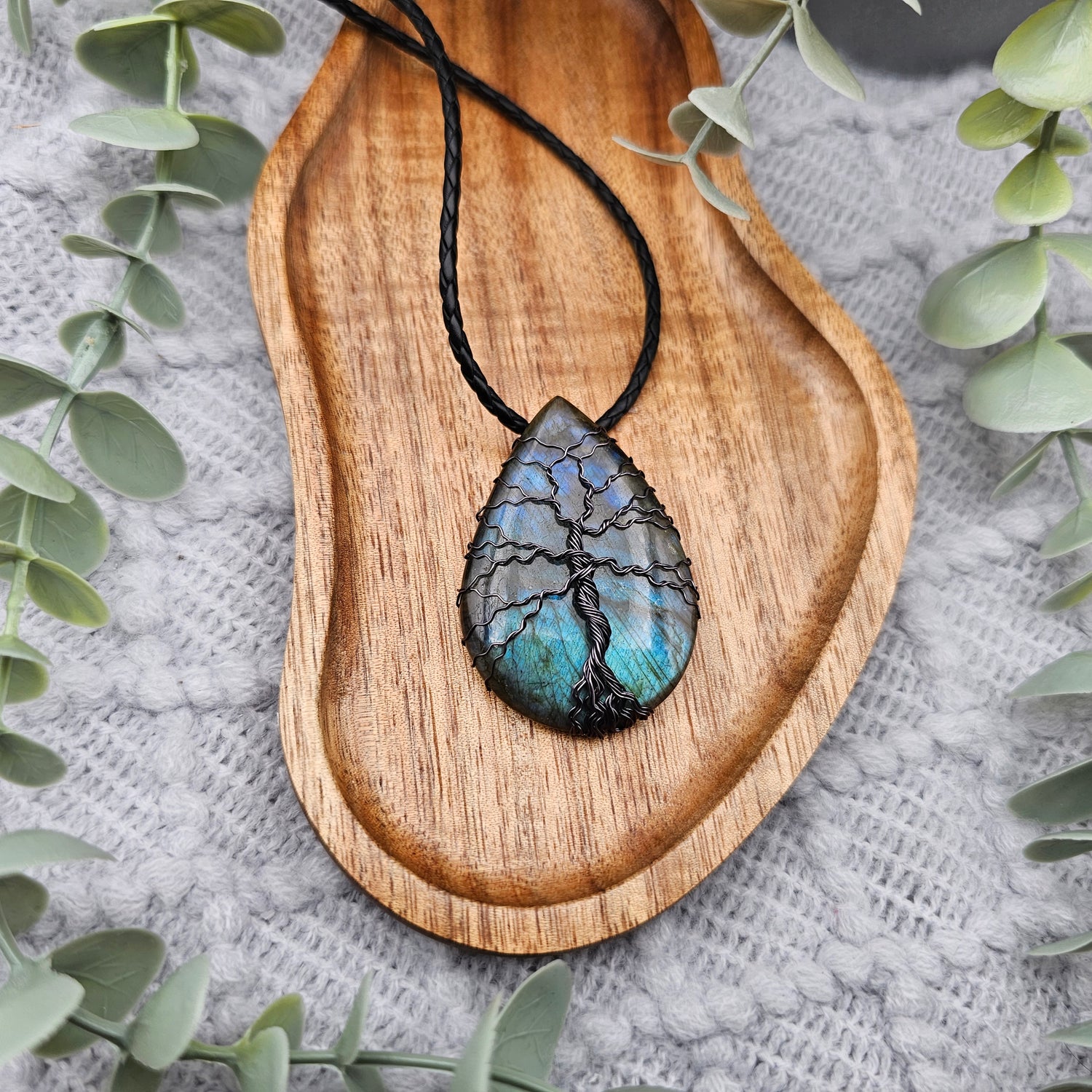 Labradorit Lebensbaum Anhänger | Schmuckdraht | Edelstein Halskette